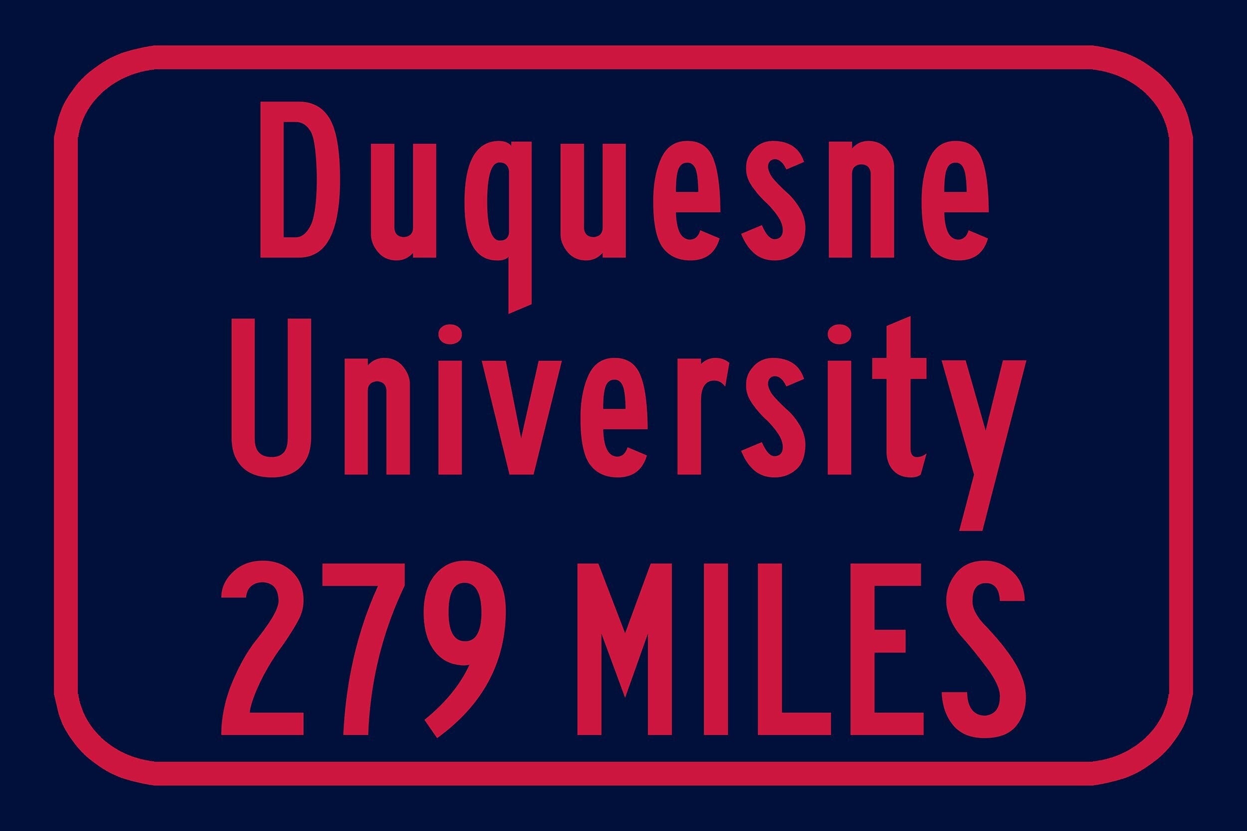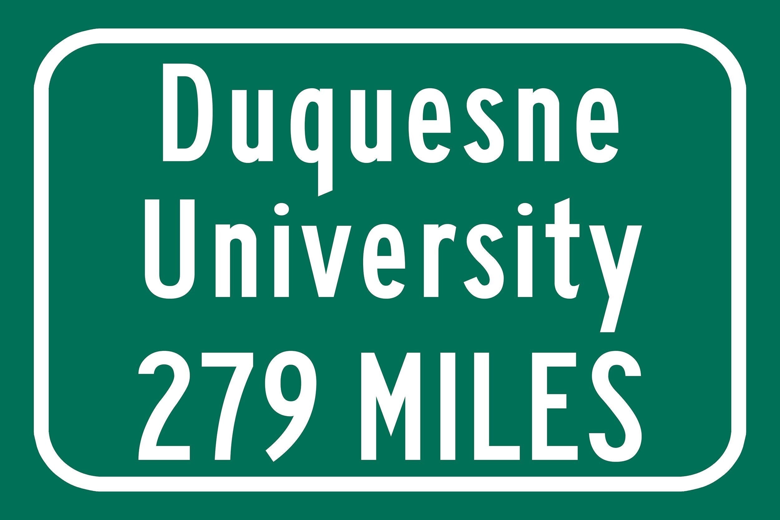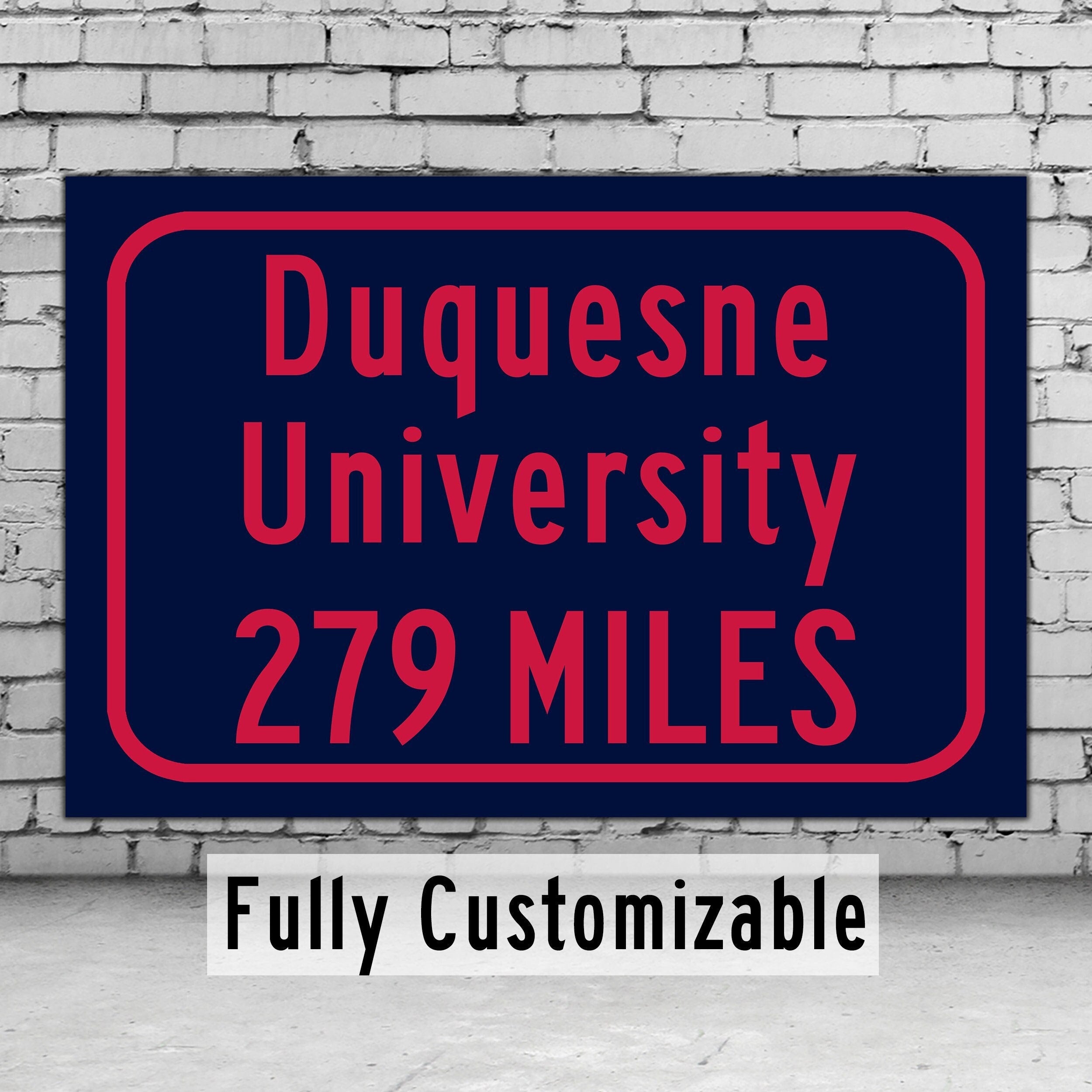 Personalized Highway Distance sign to Duquesne University/ Duquesne University sign. Duquesne Dukes sign.