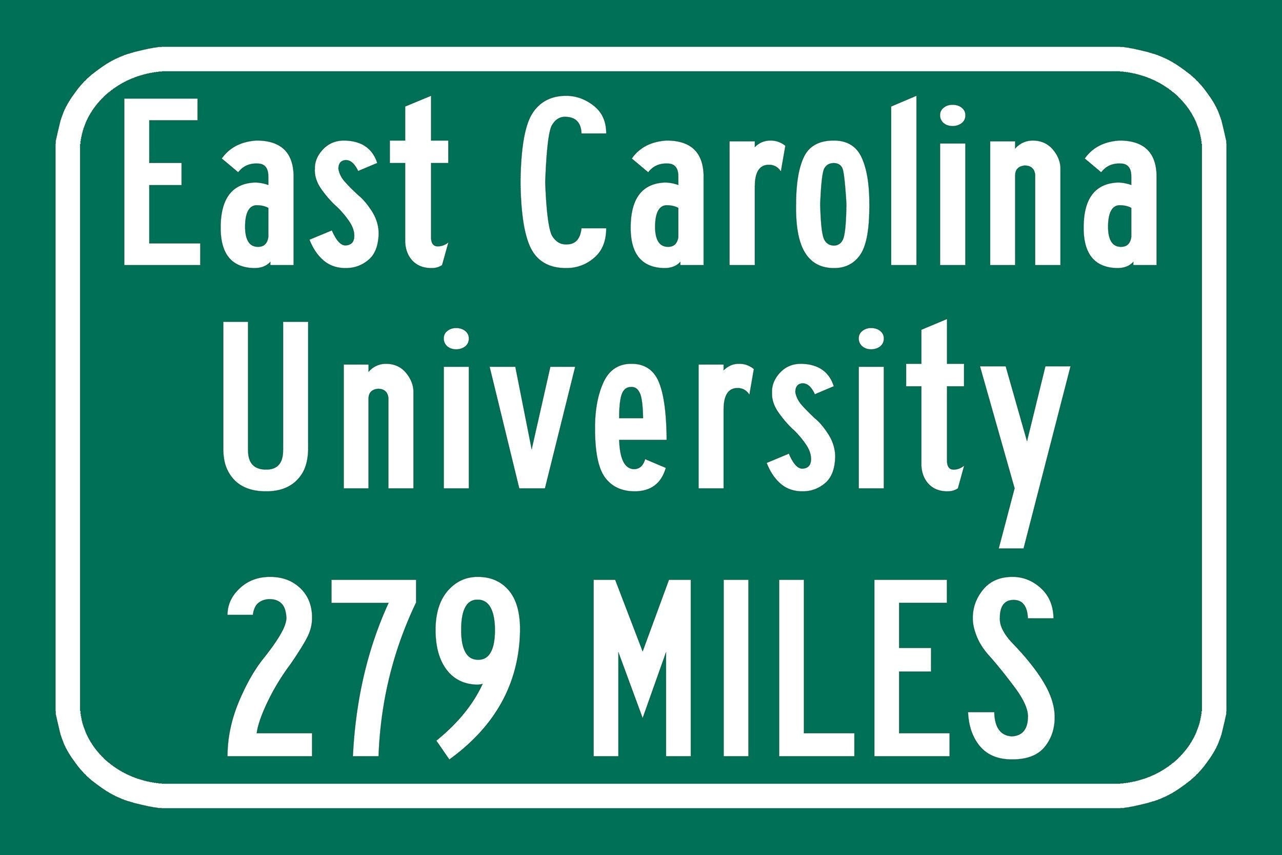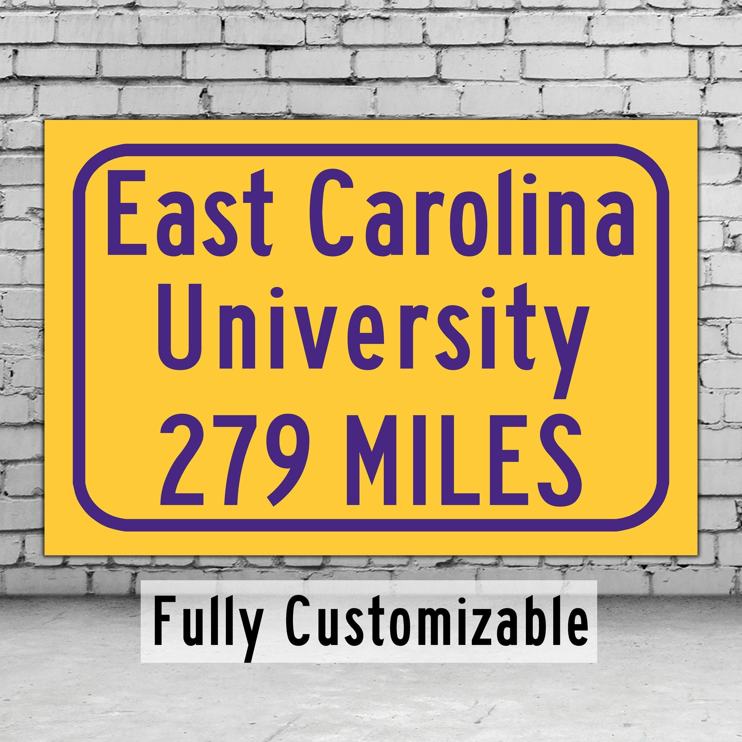 Personalized Highway Distance sign to East Carolina University. East Carolina University. East Carolina Pirates sign.