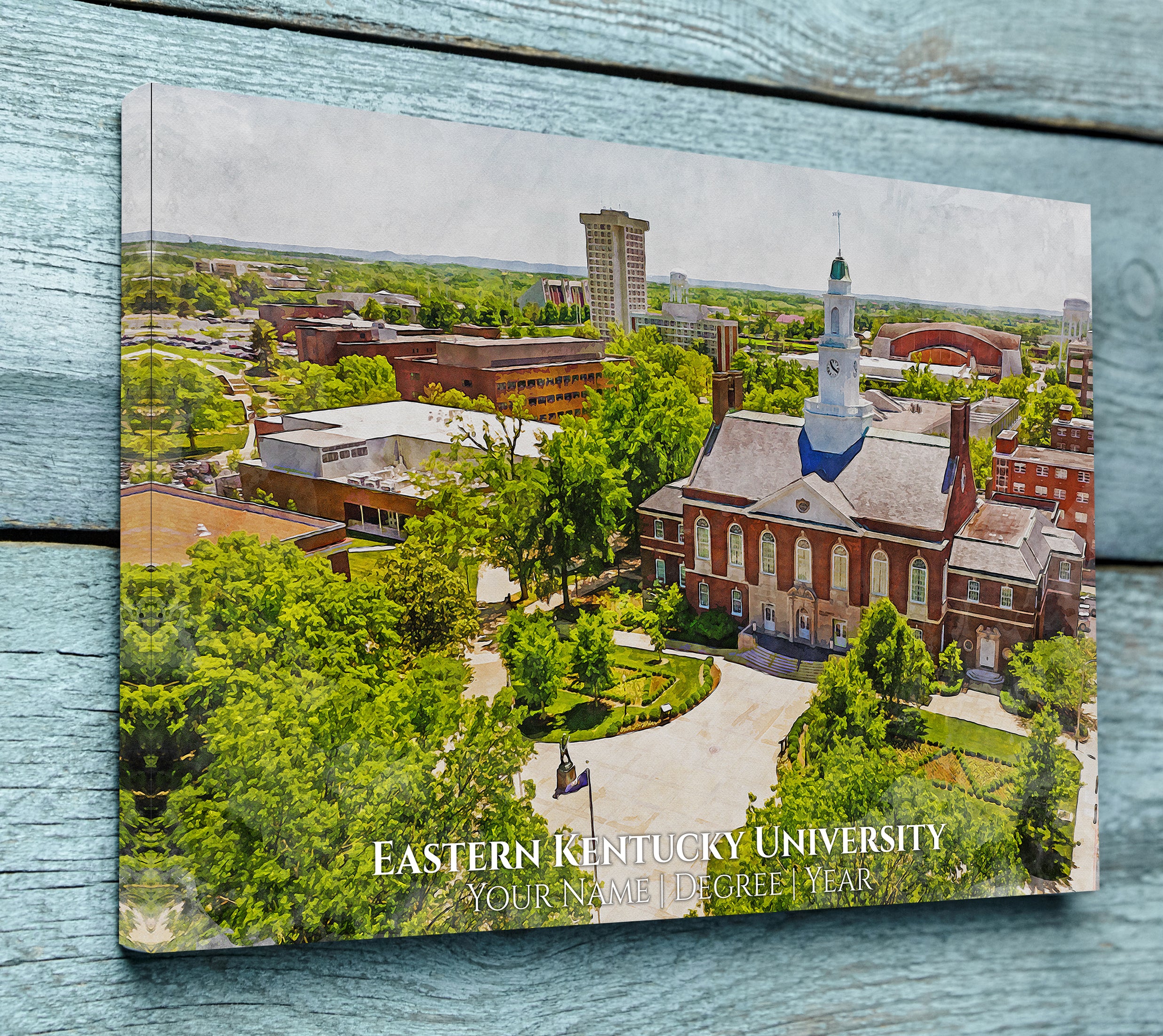 You will love these watercolor digital prints of Eastern Kentucky University. Perfect for a graduation gift. These make wonderful gift for Eastern Kentucky University Alumni and fans. Feel free to customize it as well when you check out. We will send a proof for you to approve before we print so please check your email about 24hrs after you order