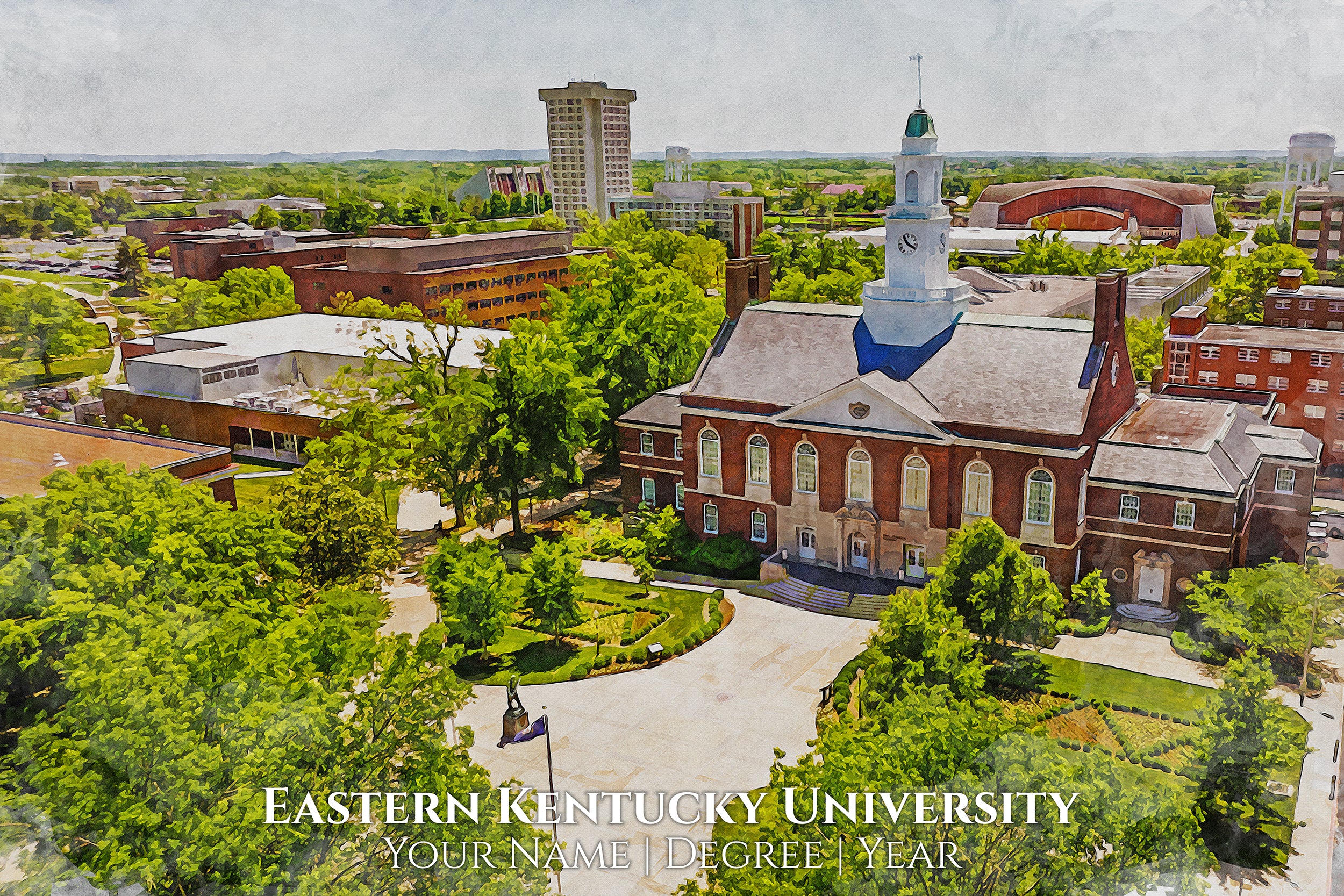 Eastern Kentucky University watercolor. Graduation gift, Eastern Kentucky University , College wall art, College WC