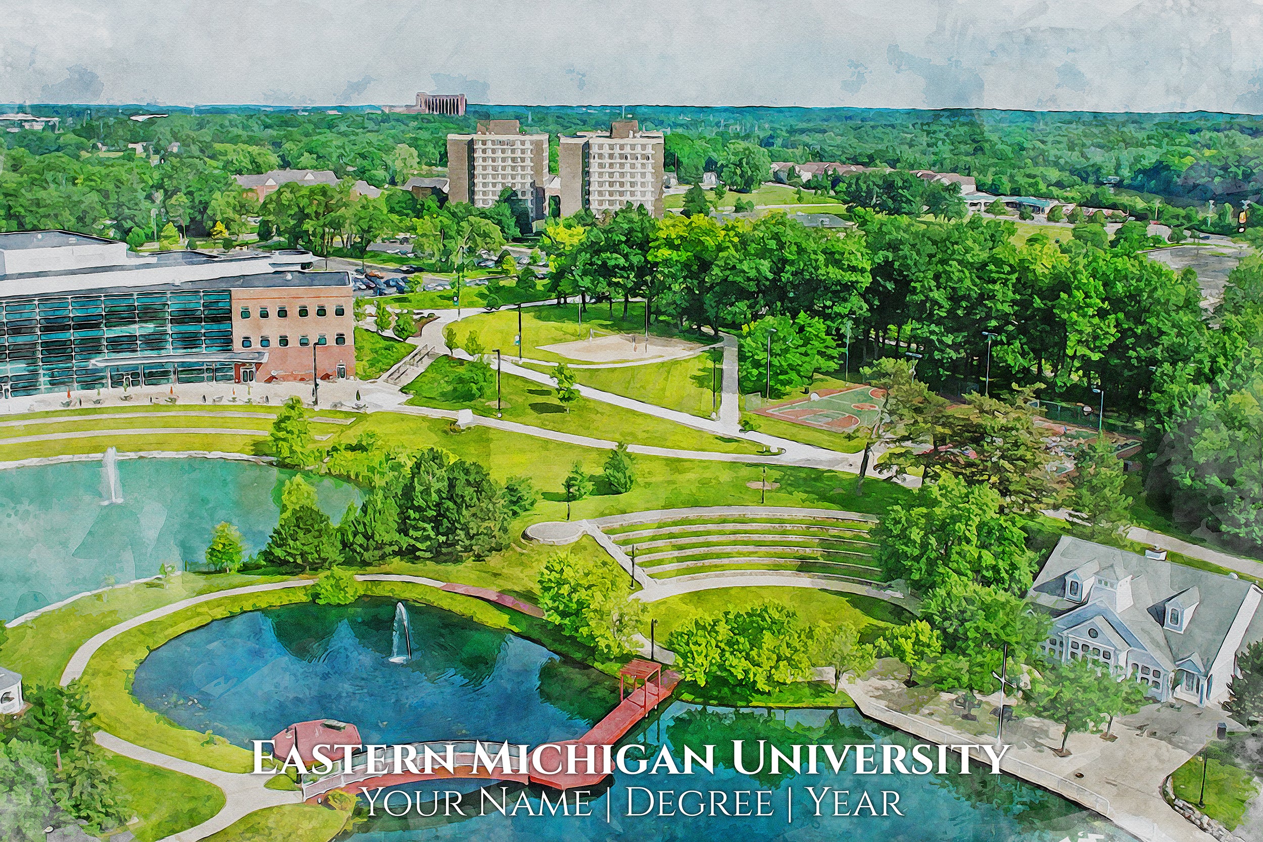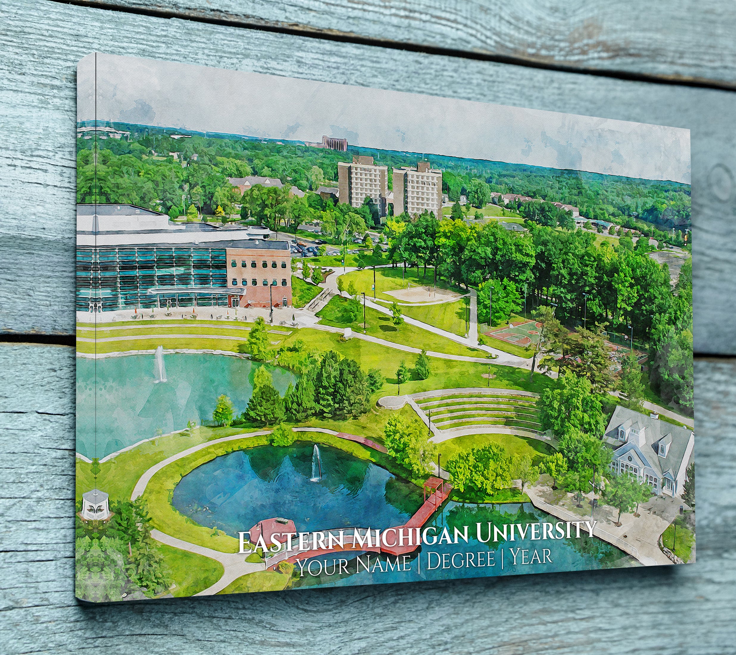 You will love these watercolor digital prints of Eastern Michigan University. Perfect for a graduation gift. These make wonderful gift for Eastern Michigan University Alumni and fans. Feel free to customize it as well when you check out. We will send a proof for you to approve before we print so please check your email about 24hrs after you order