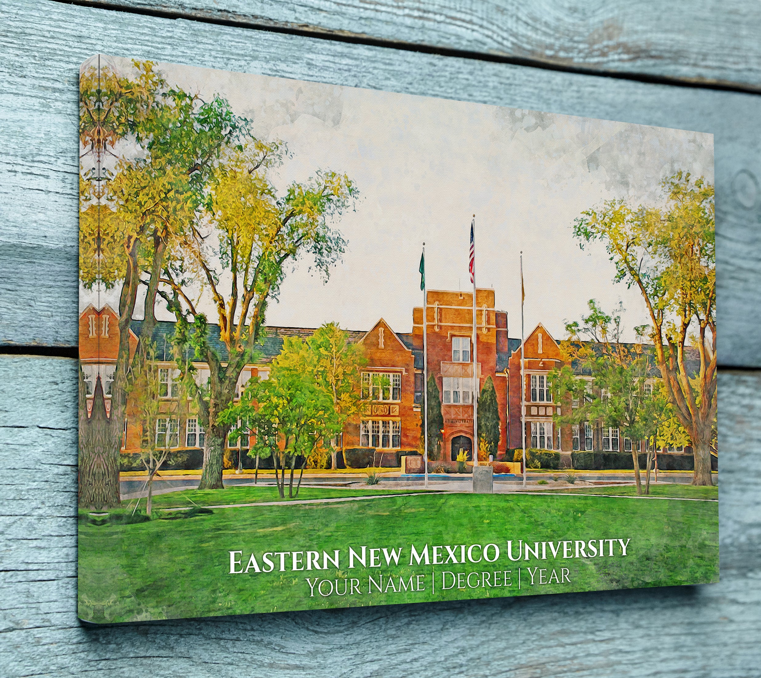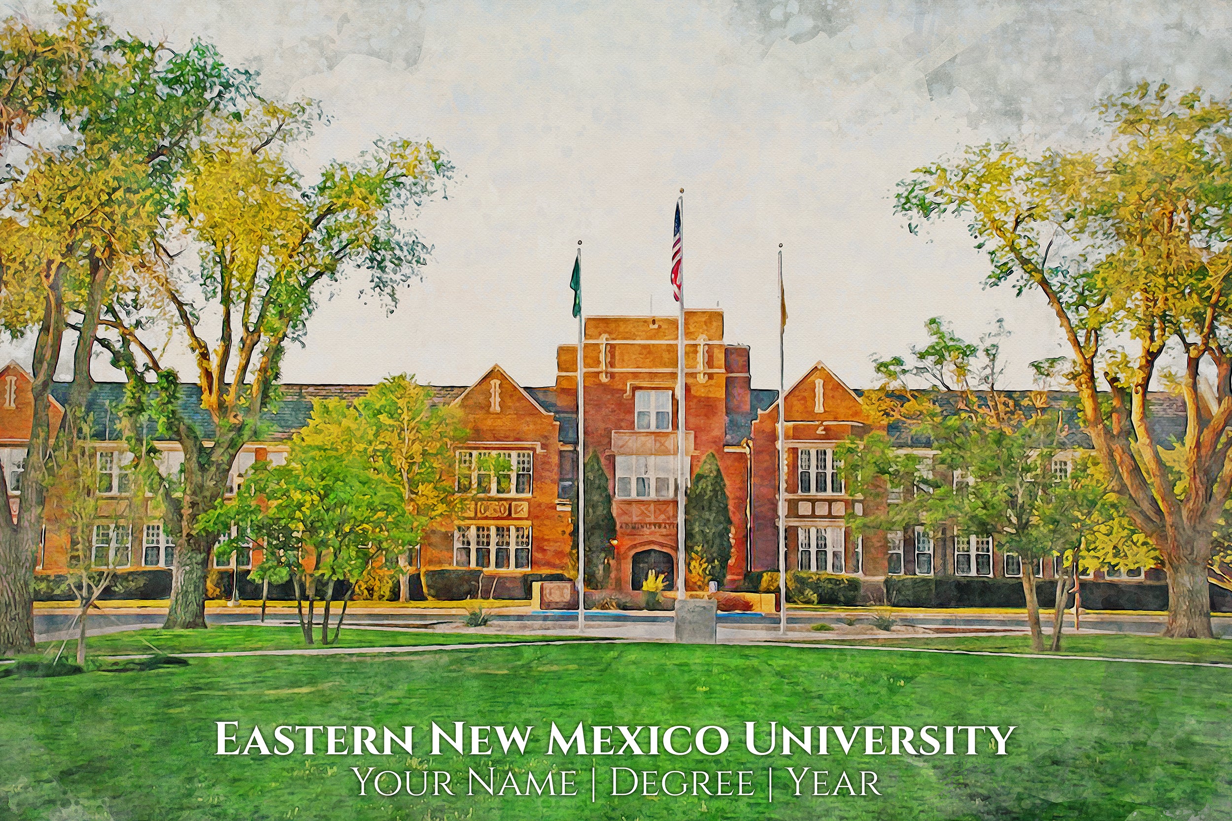 You will love these watercolor digital prints of Eastern New Mexico University. Perfect for a graduation gift. These make wonderful gift for Eastern New Mexico University Alumni and fans. Feel free to customize it as well when you check out. We will send a proof for you to approve before we print so please check your email about 24hrs after you order