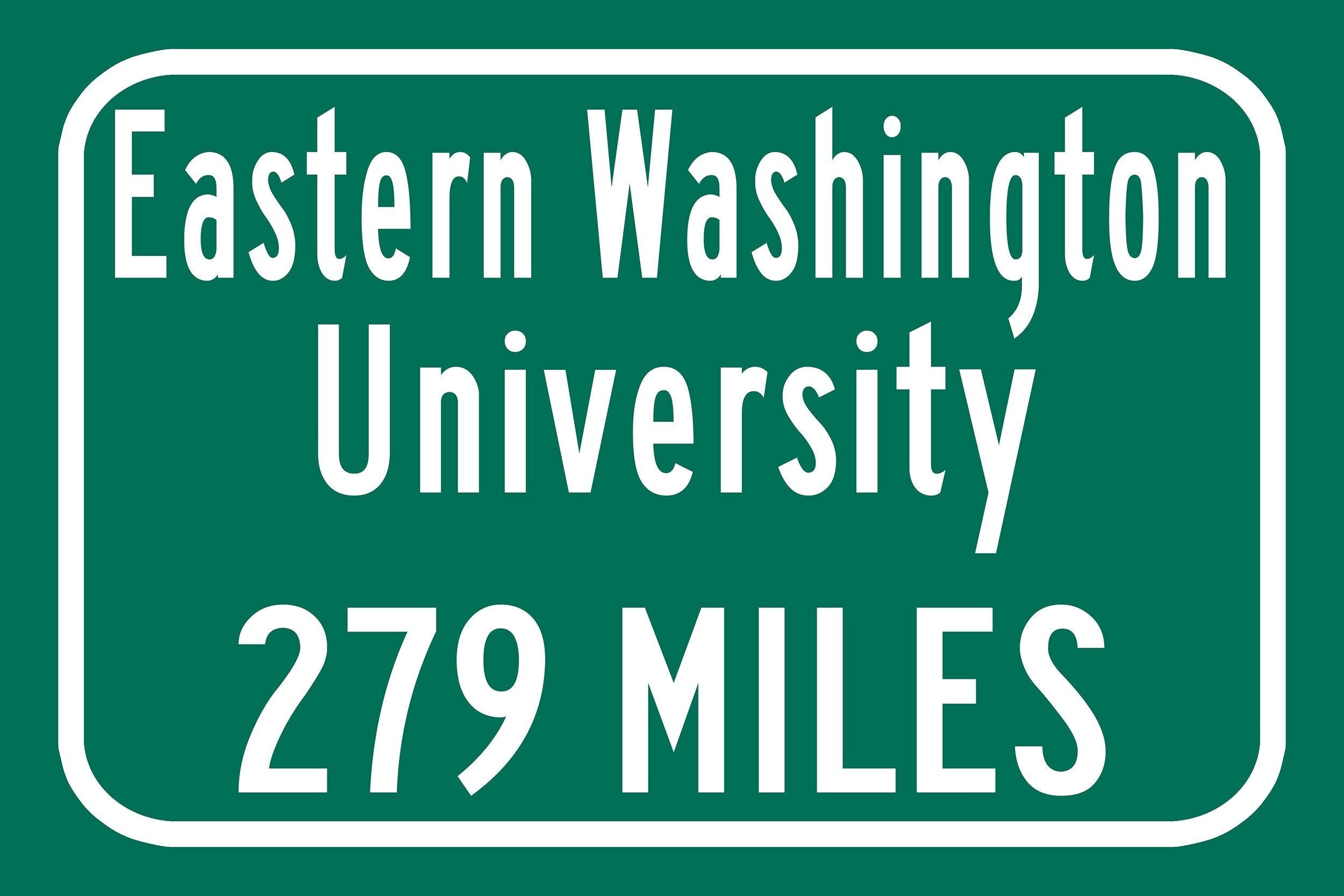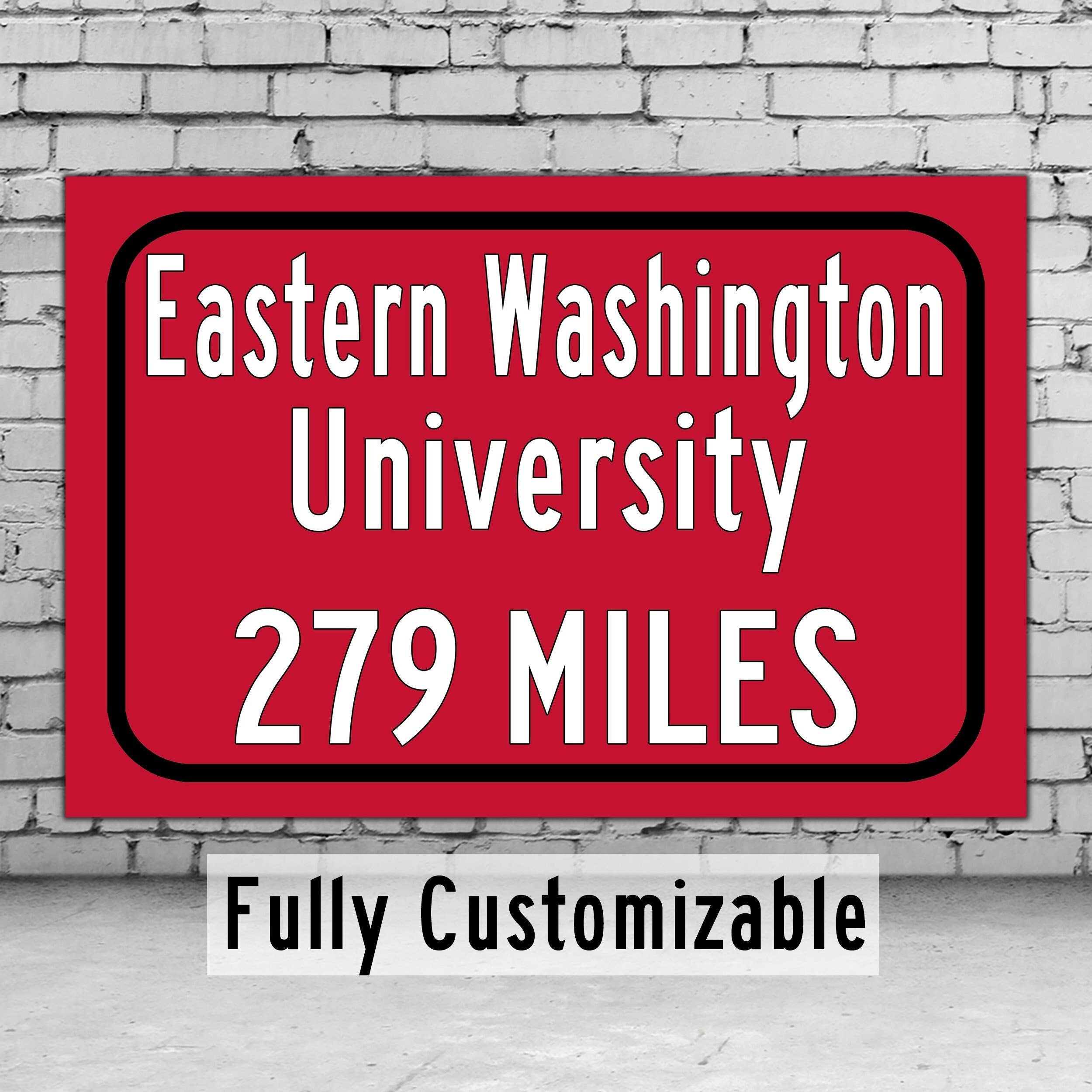 Personalized Highway Distance sign to Eastern Washington University / Eastern Washington University sign. Eastern Washington Eagles signs