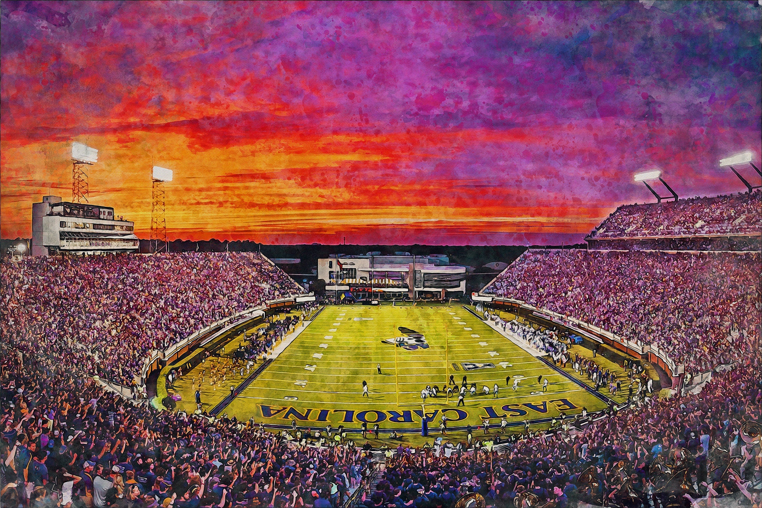 Beautiful Digital watercolor of Dowdy-Ficklen Stadium in Greenville North Carolina