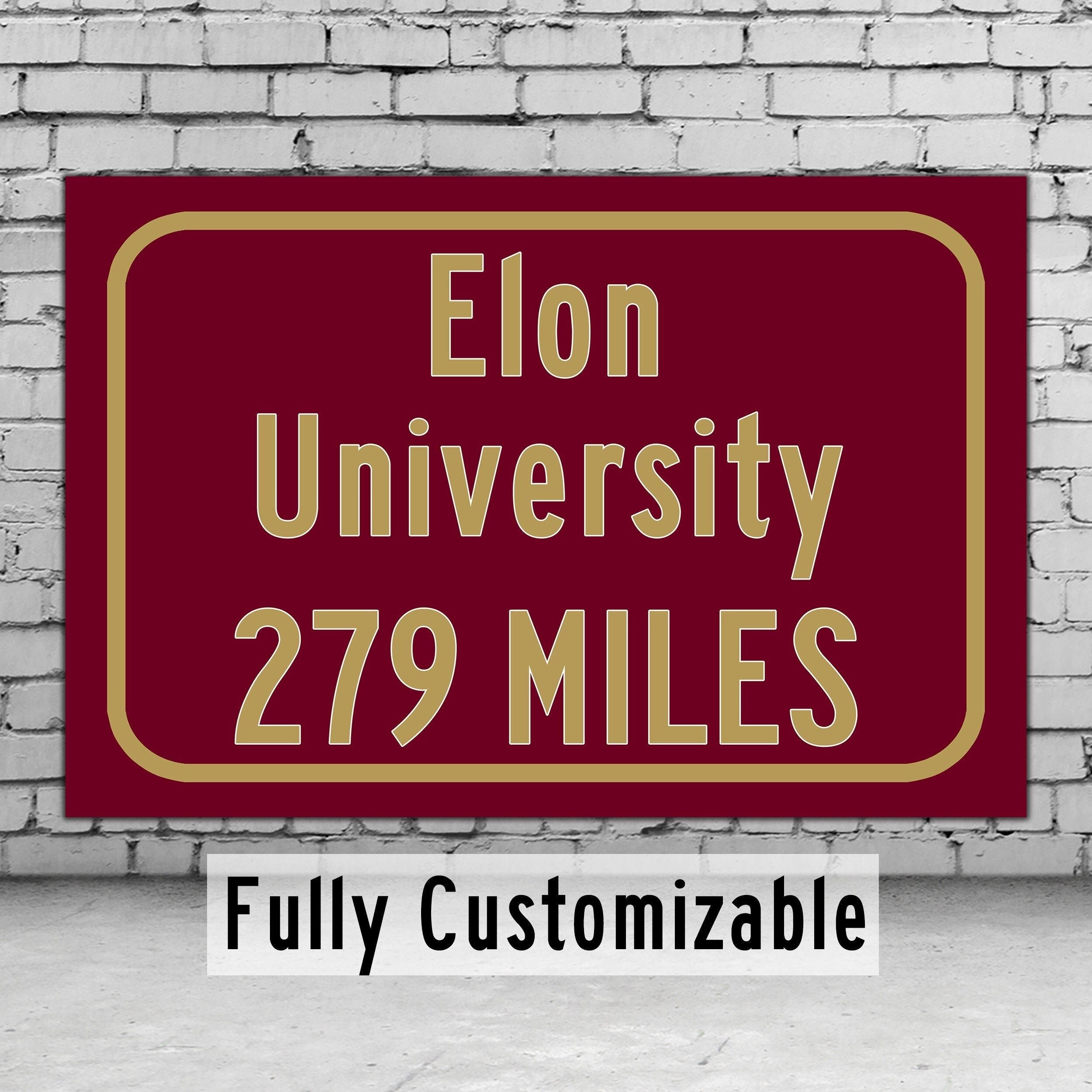 Personalized Highway Distance sign to Elon University / Elon North Carolina / Elon phoenix