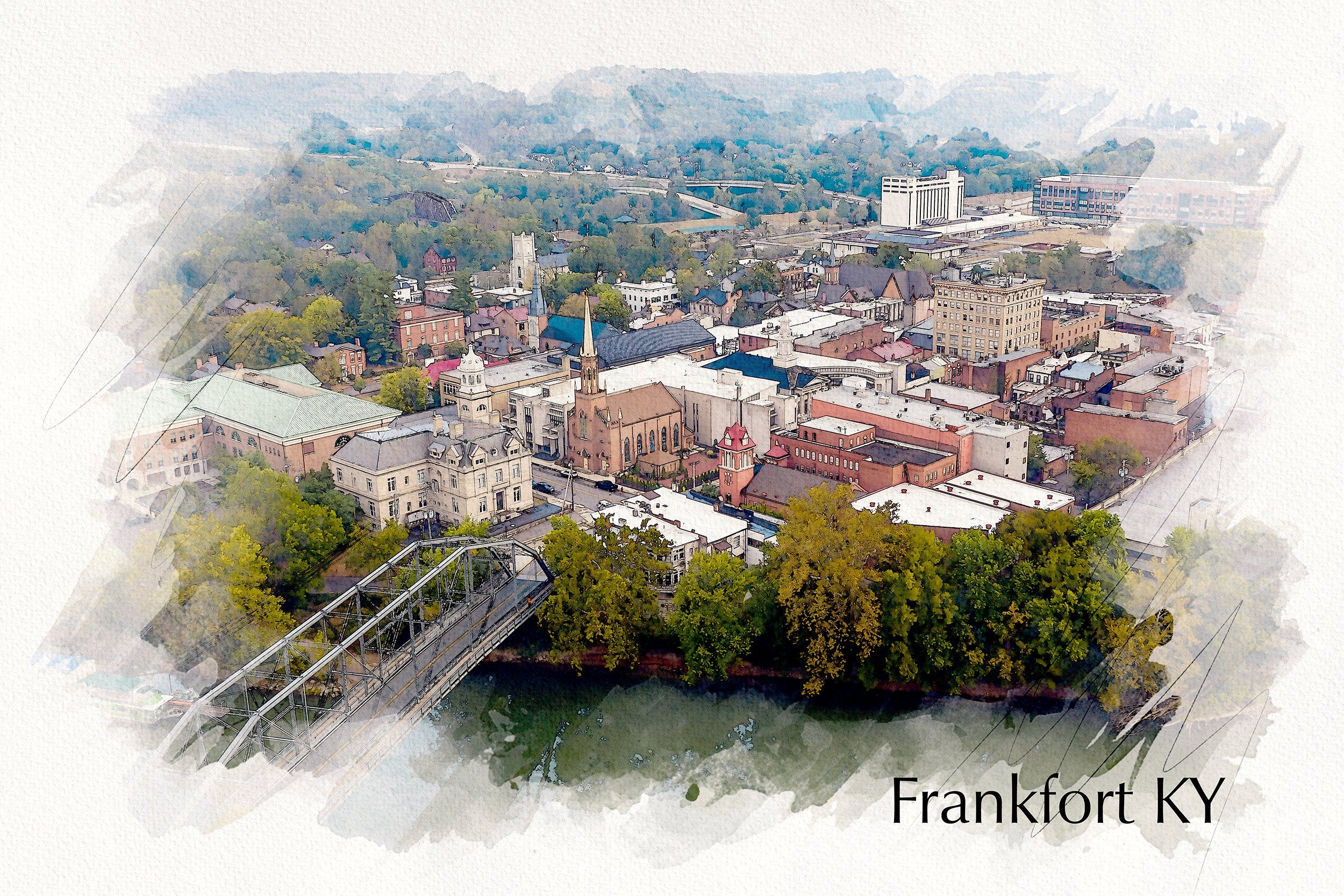 The beautiful city of Frankfort KY watercolor on canvas framed and ready to hang. Stunning colors that make for the perfect wall decor. Frankfort KY watercolor canvas