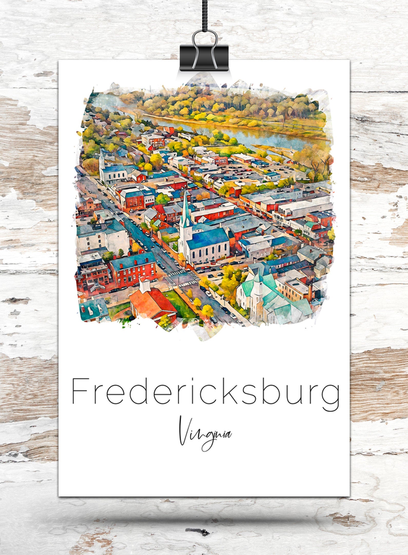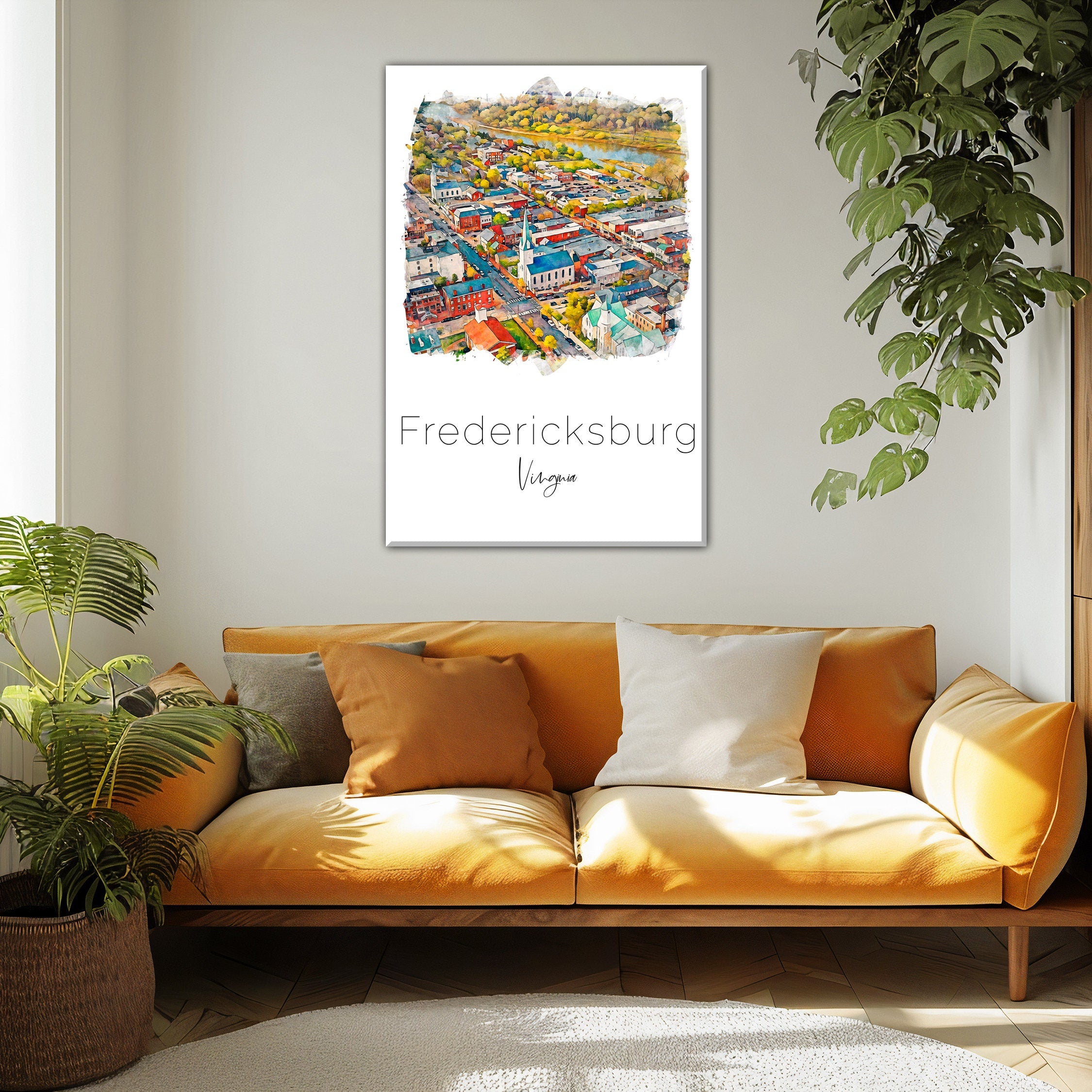 Beautiful Fredericksburg Virginia canvas watercolor print. This lovely piece of digitally created Fredericksburg VA wall art is perfect for any room in your home. Fredericksburg is one of the most beautiful small towns in the country.