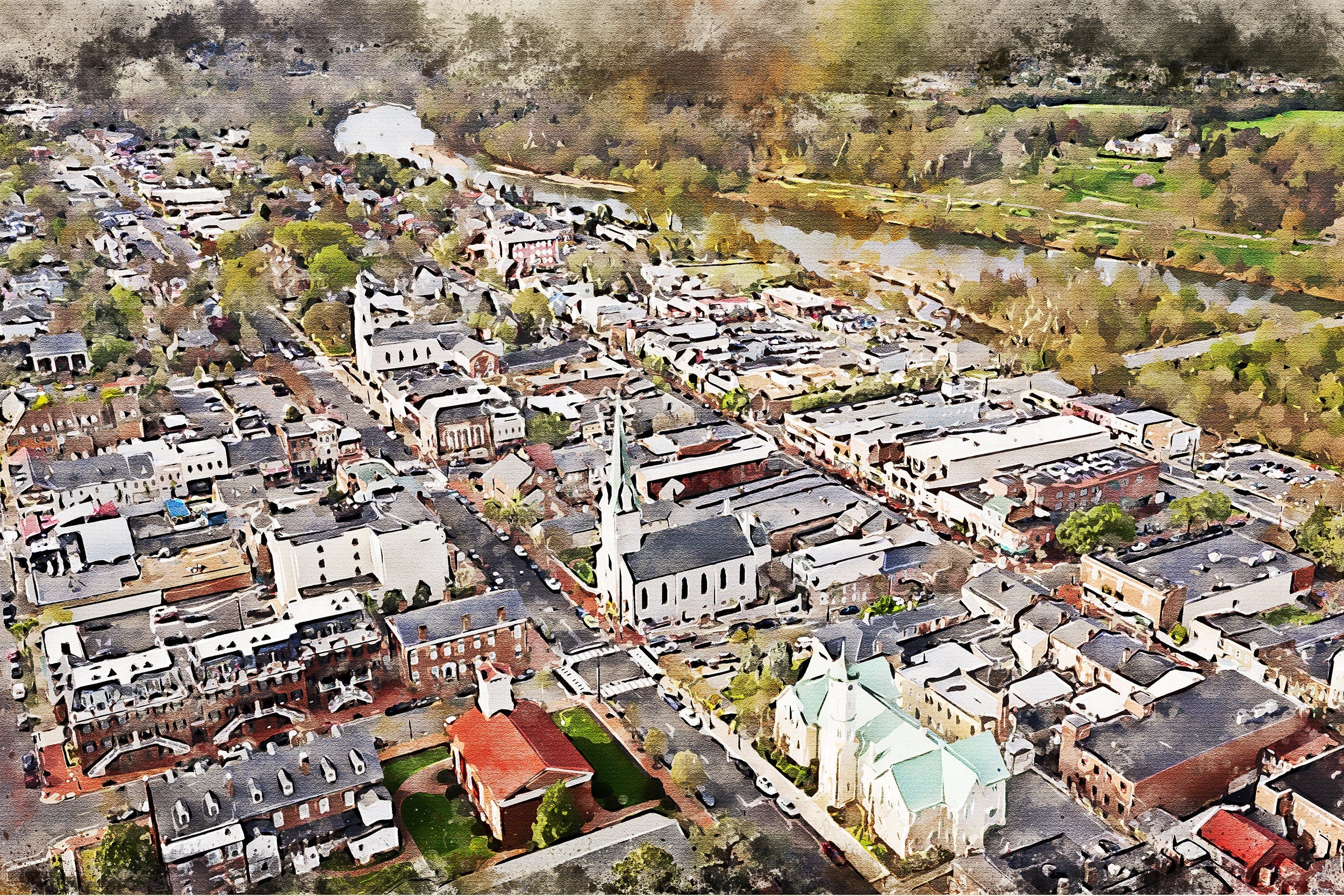 The beautiful city of Fredericksburg on canvas that make for the perfect wall decor.