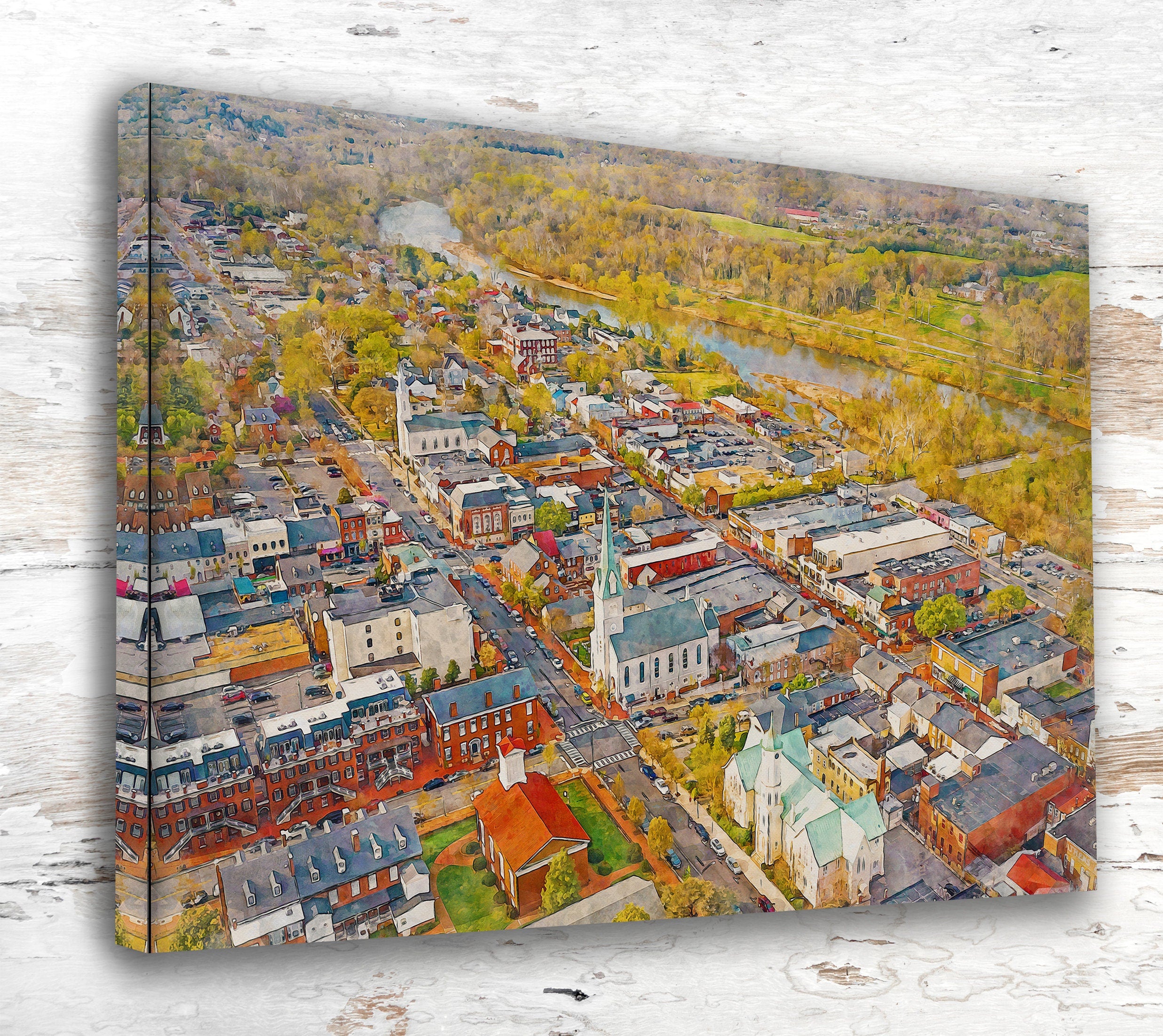 Beautiful Fredericksburg Virginia canvas watercolor print. This lovely piece of digitally created Fredericksburg VA wall art is perfect for any room in your home. Fredericksburg is one of the most beautiful small towns in the country.