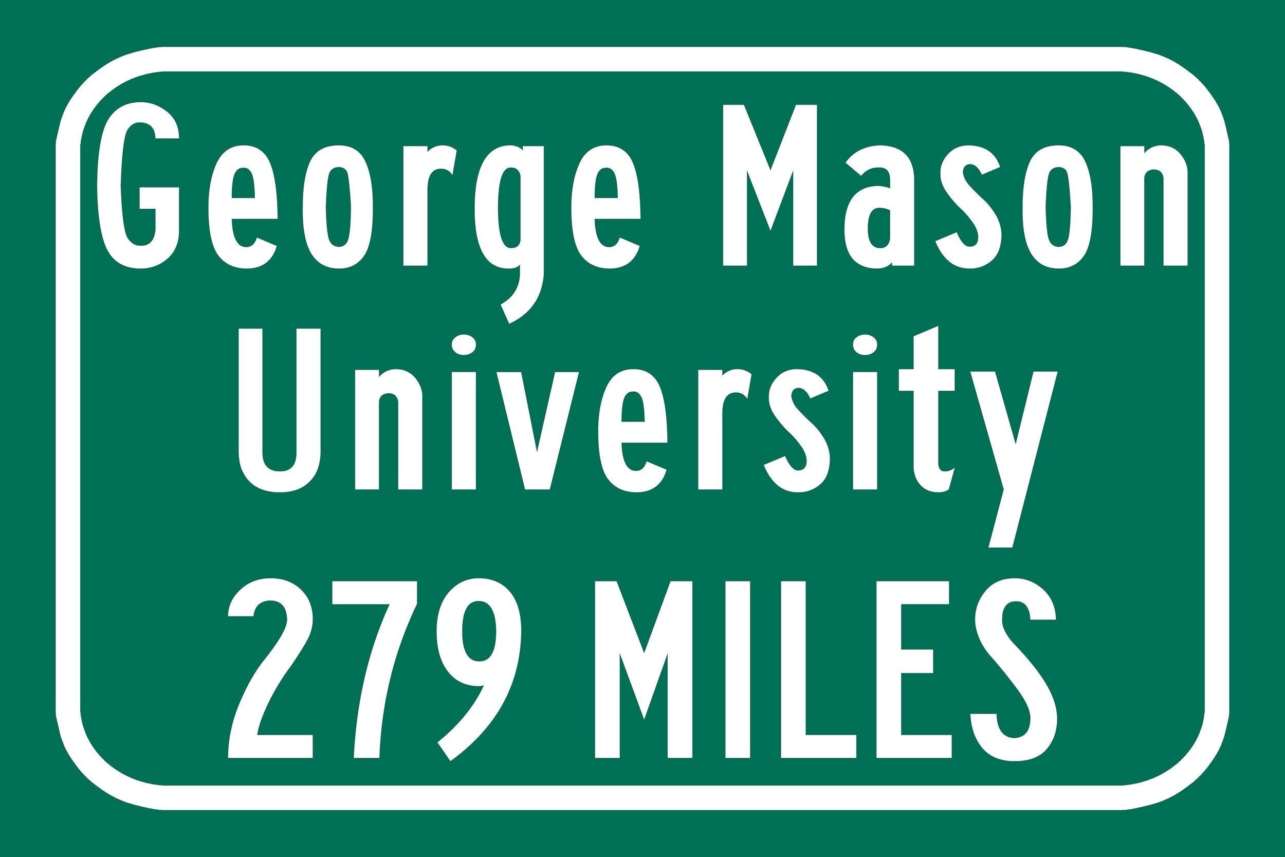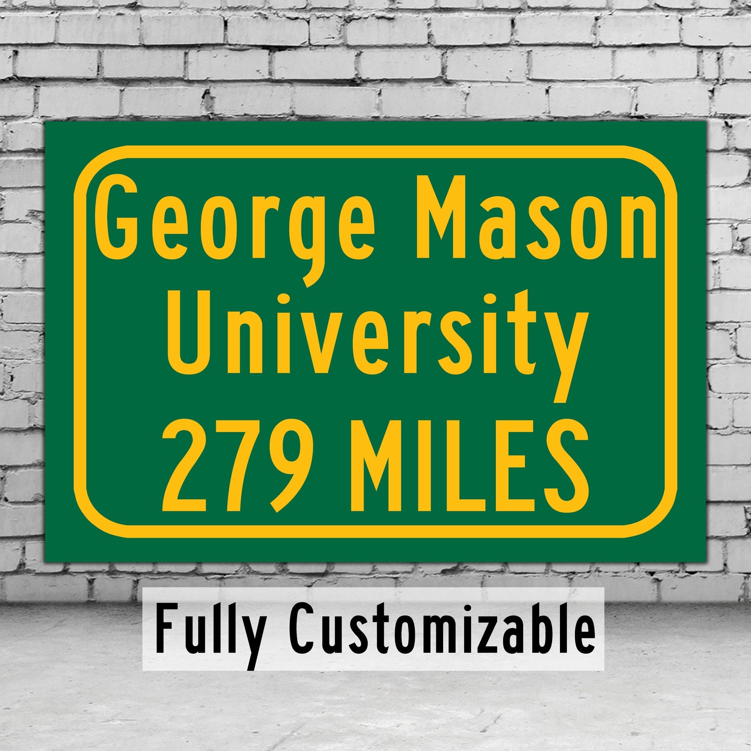 Personalized Highway Distance sign to George Mason University / George Mason University sign. George Mason University Patriots sign.