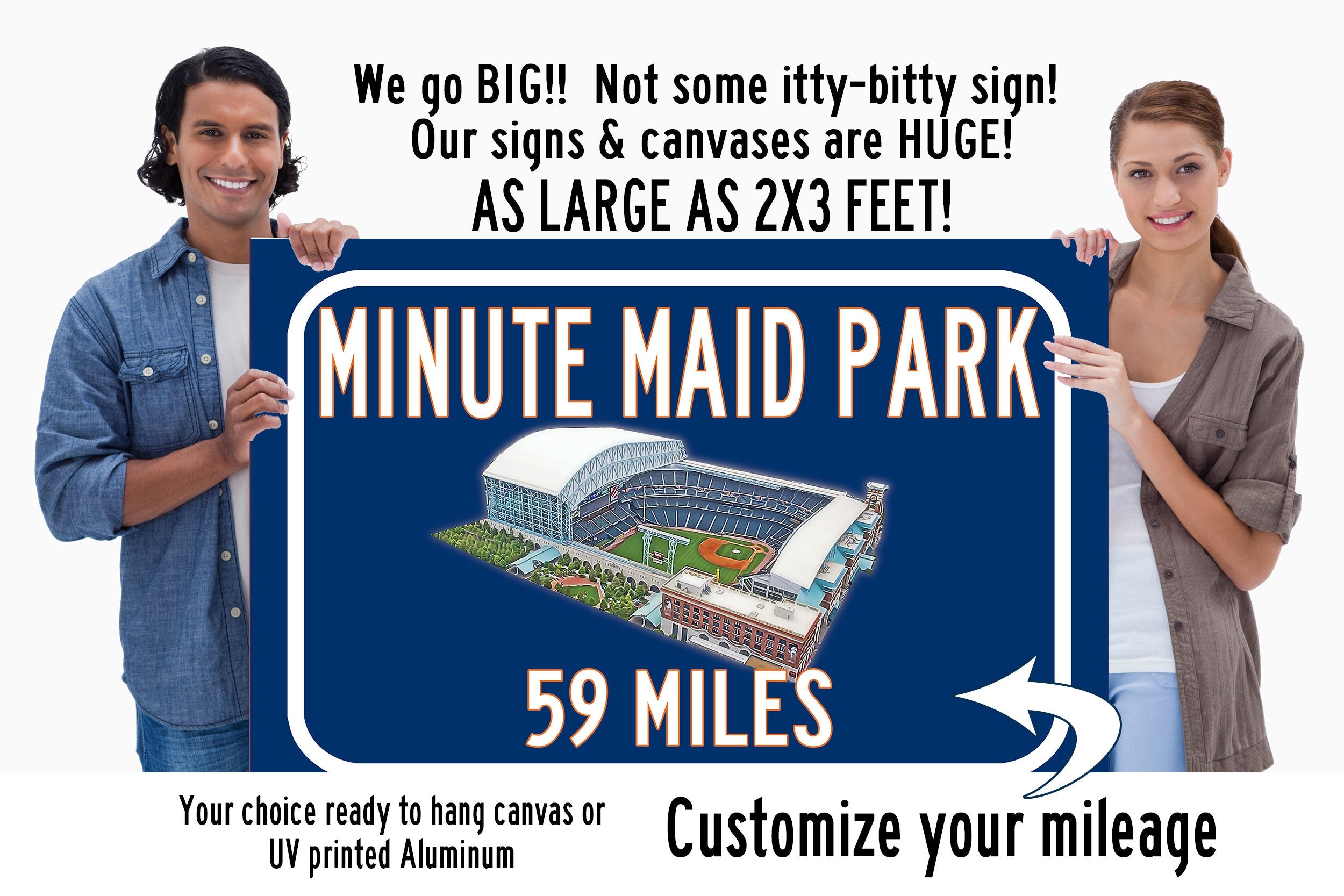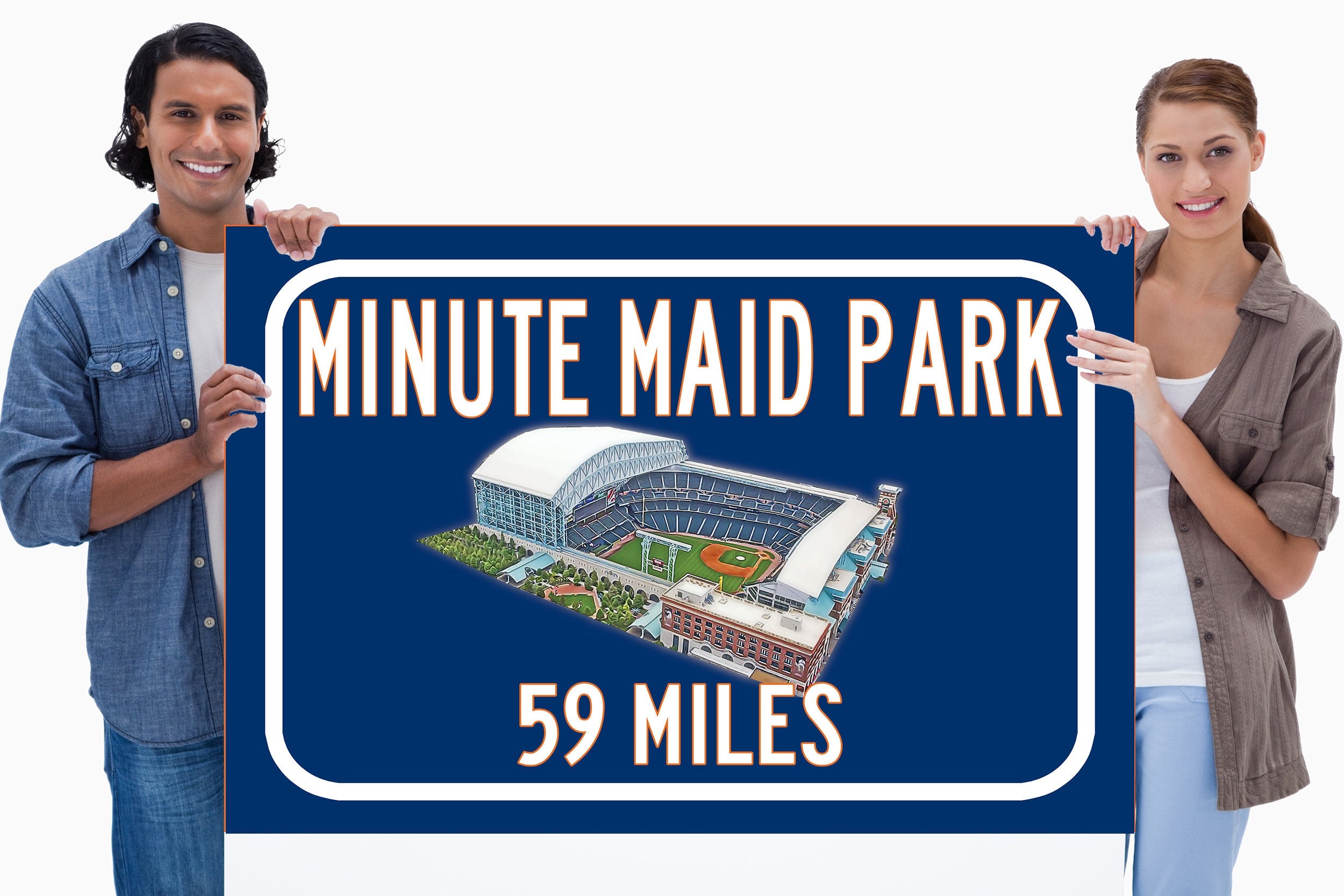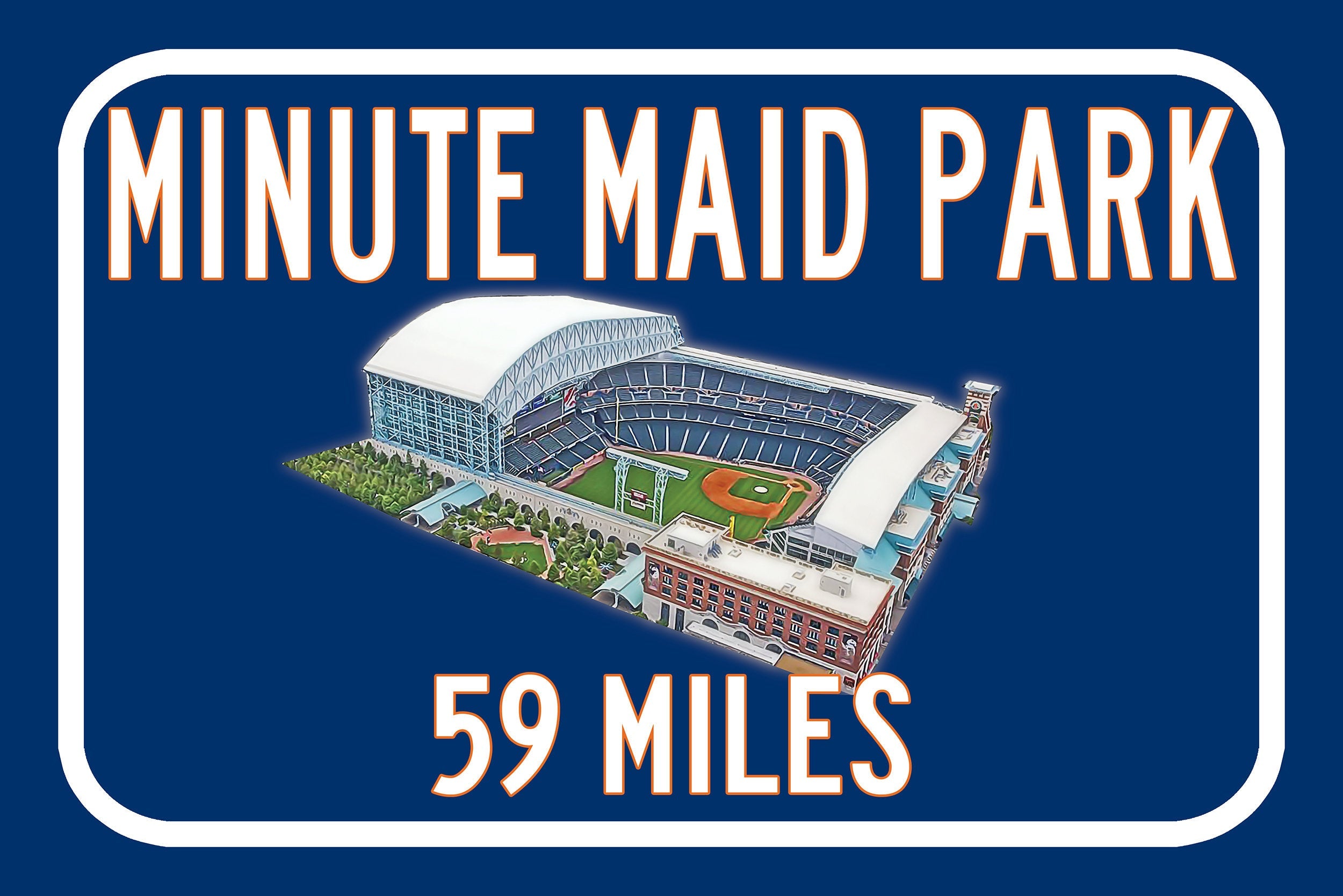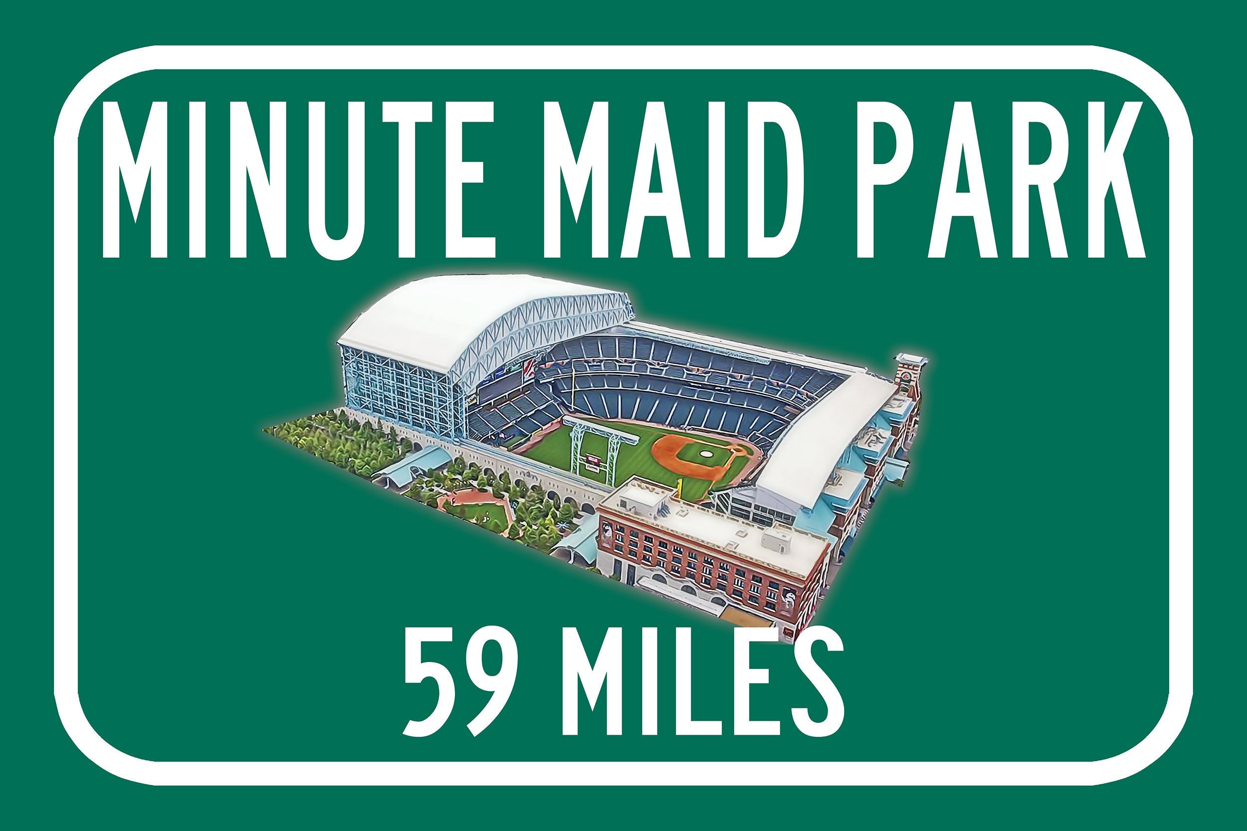 Personalized Highway Distance sign to Minute Maid Park in Houston. WE GO HUGE!! Not some itty-bitty sign, Our signs are as large as 2 x 3 FEET! Minute Maid Park highway sign. Houston Astros Sign