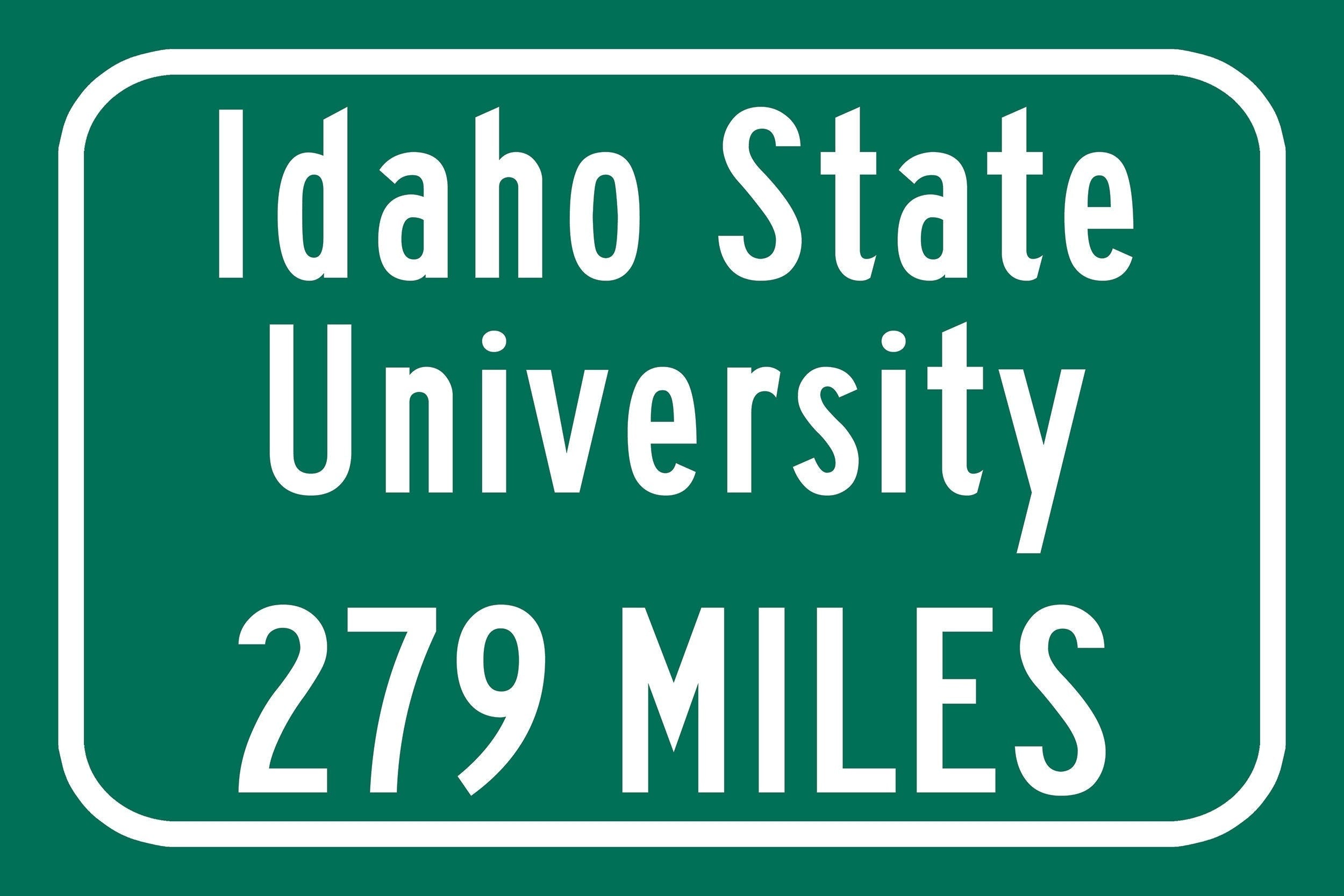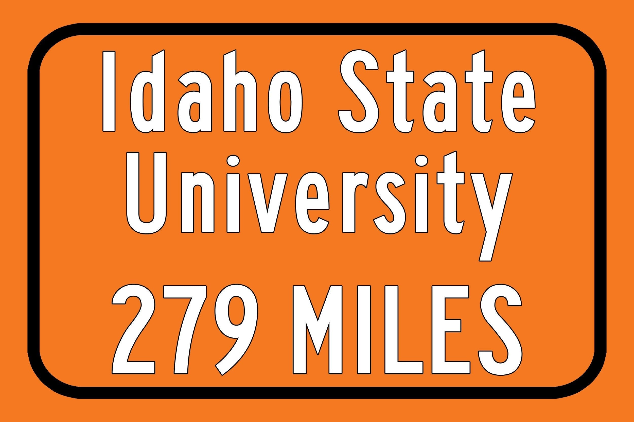 Personalized Highway Distance sign to Idaho State University / Idaho State University sign. Idaho State Bengals sign.