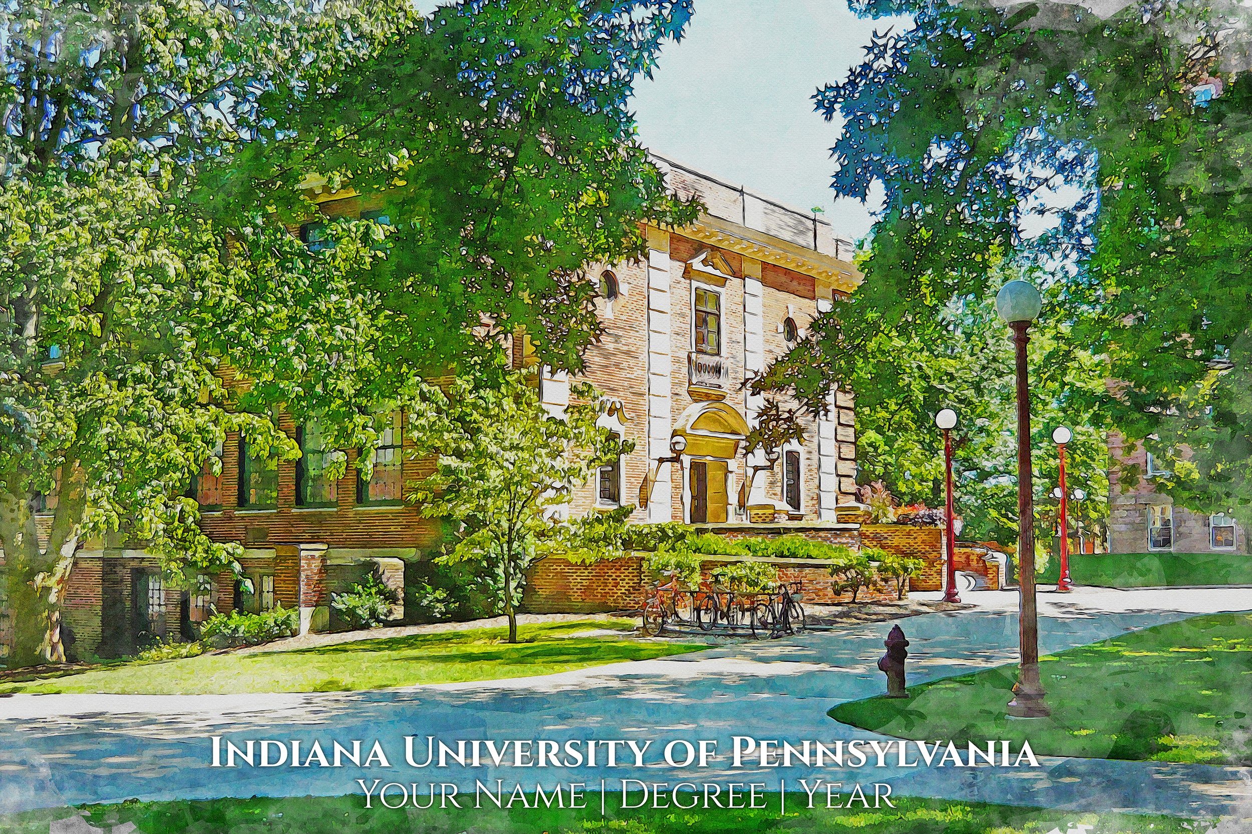 You will love these watercolor digital prints of Indiana University of Pennsylvania . Perfect for a graduation gift. These make wonderful gift for Indiana University of Pennsylvania graduates, and fans. Feel free to customize it as well when you check out. We will send a proof for you to approve before we print so please check your email about 24hrs after you order