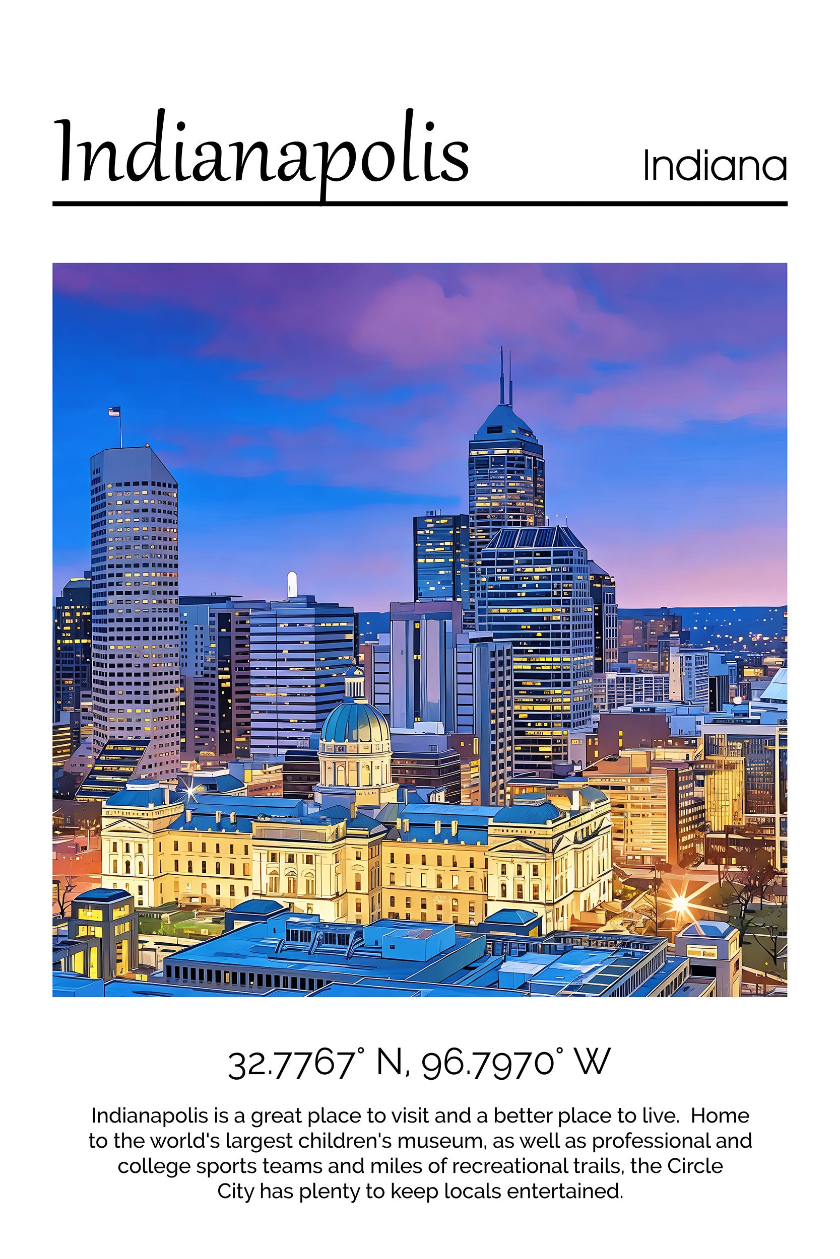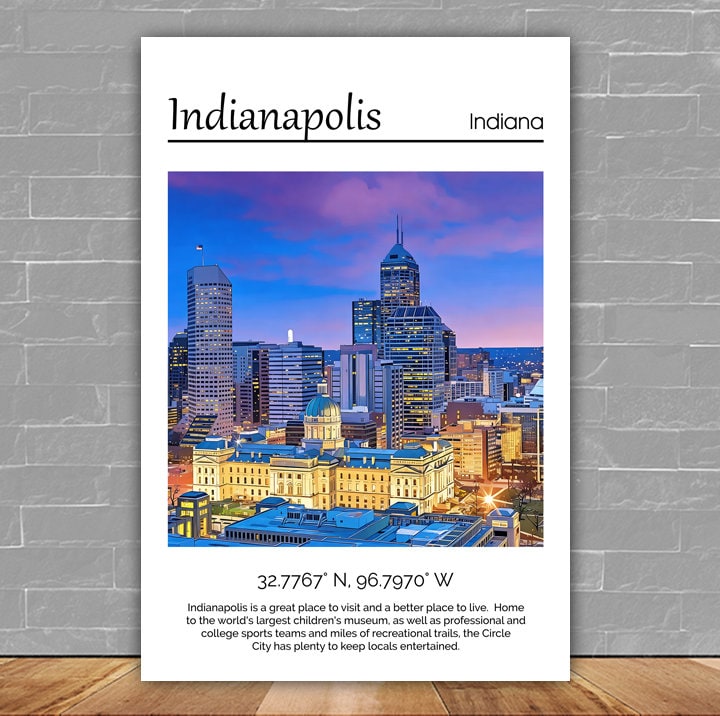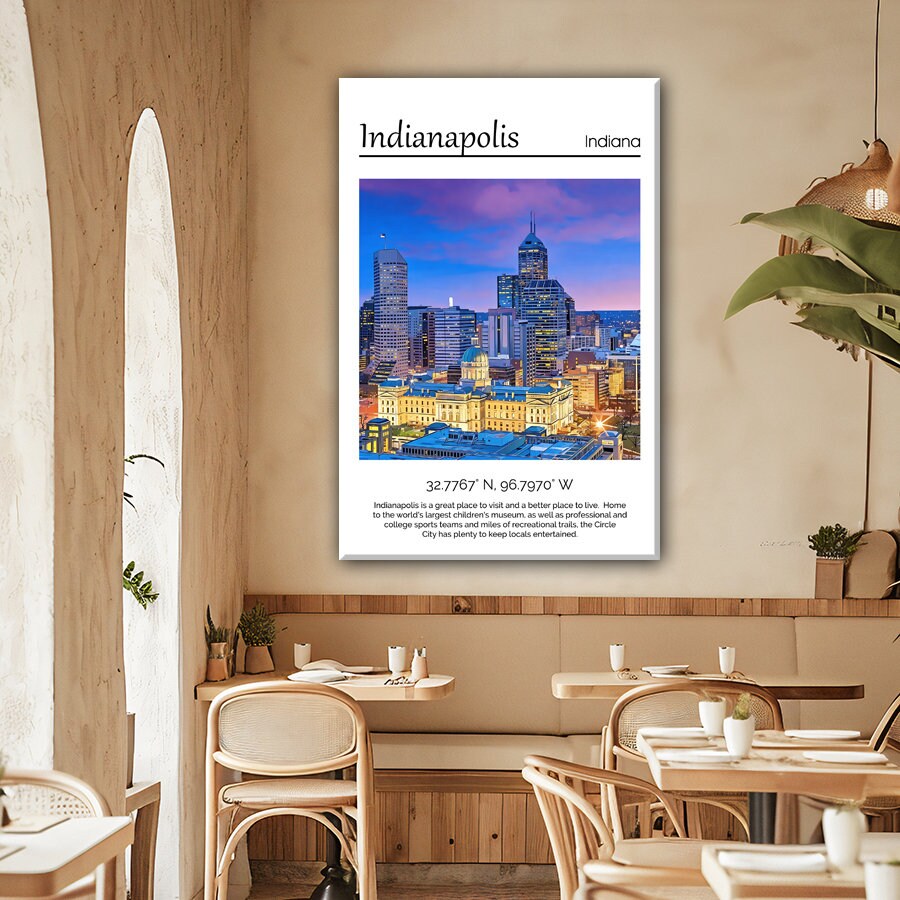 Add a touch of Indy to your space with this Indianapolis travel art canvas print. Perfect for sprucing up your walls or gifting to a fellow Indianapolis enthusiast. Order yours today and let the spirit of Indianapolis shine in your home!