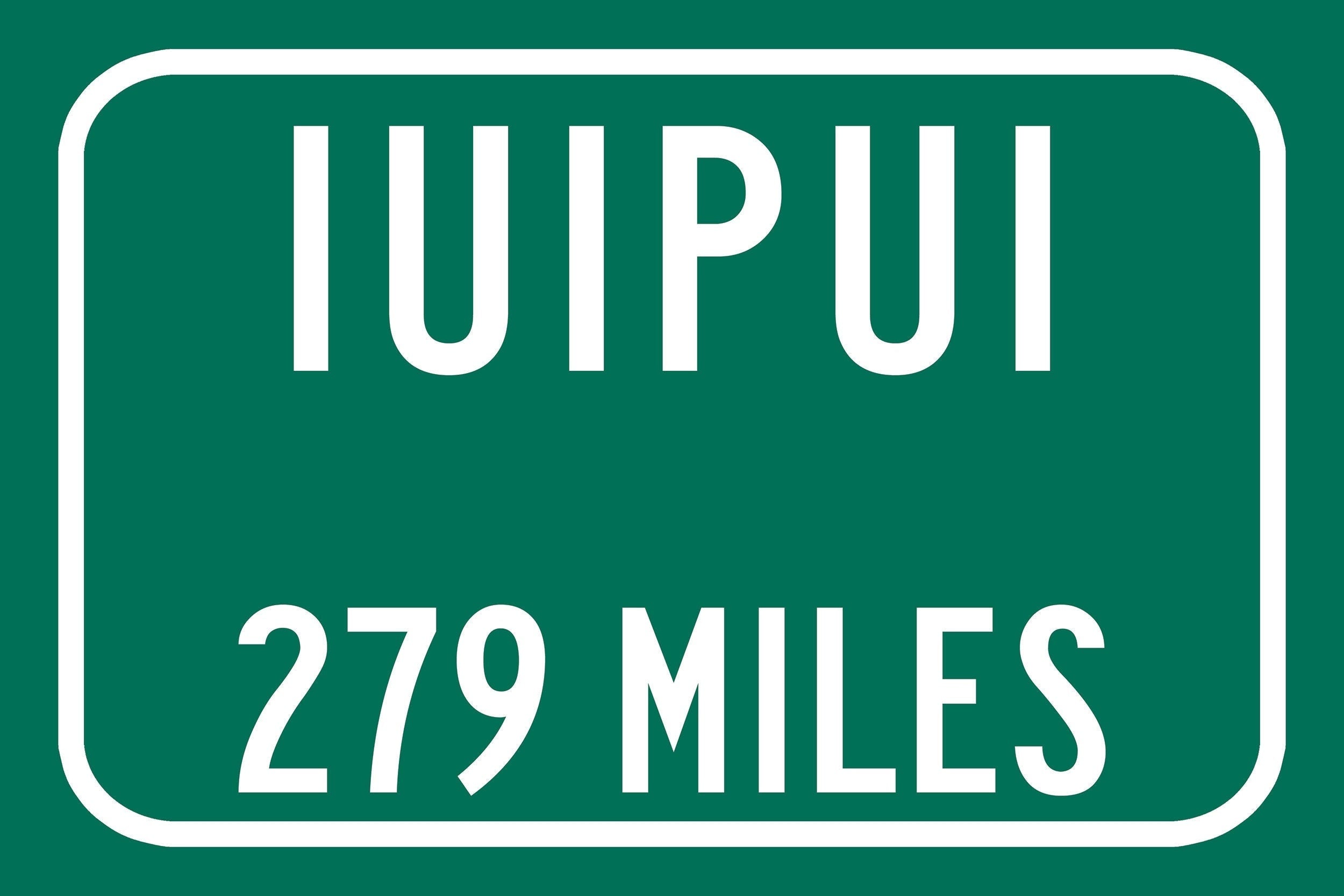 Personalized Highway Distance sign to IUPUI / Indianapolis Indiana / IUPUI Jaguars