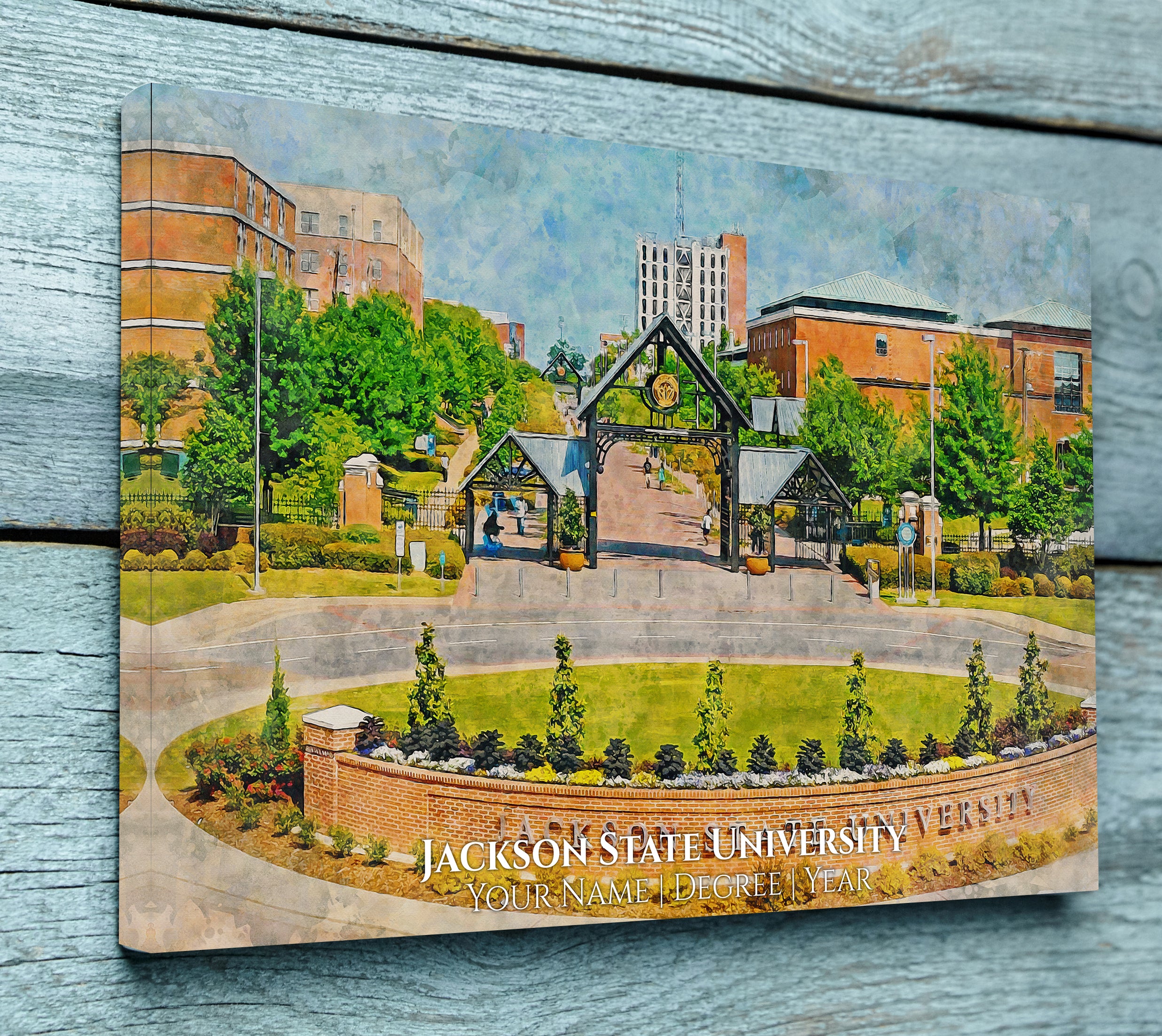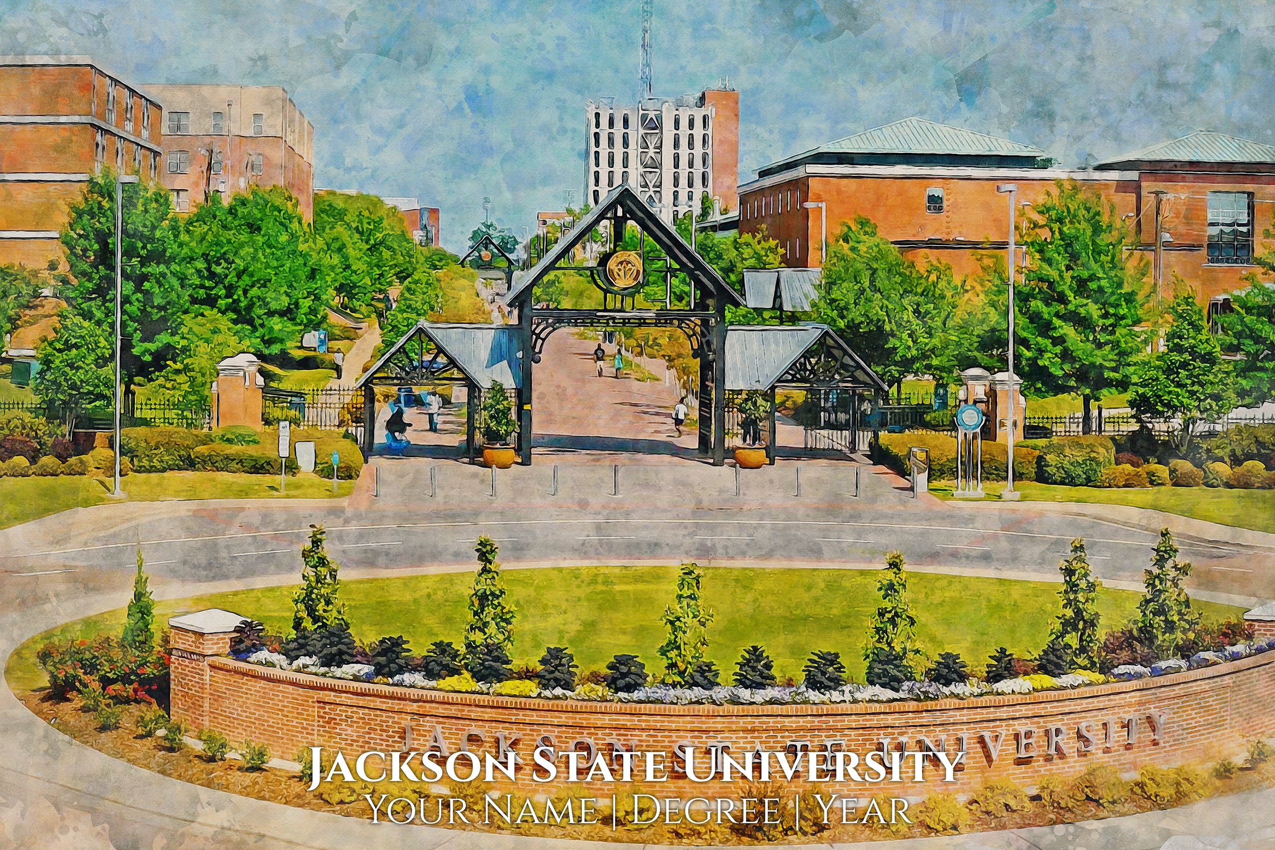 You will love these watercolor digital prints of Jackson State University. Perfect for a graduation gift. These make wonderful gift for Jackson State University Alumni and fans. Feel free to customize it as well when you check out. We will send a proof for you to approve before we print so please check your email about 24hrs after you order
