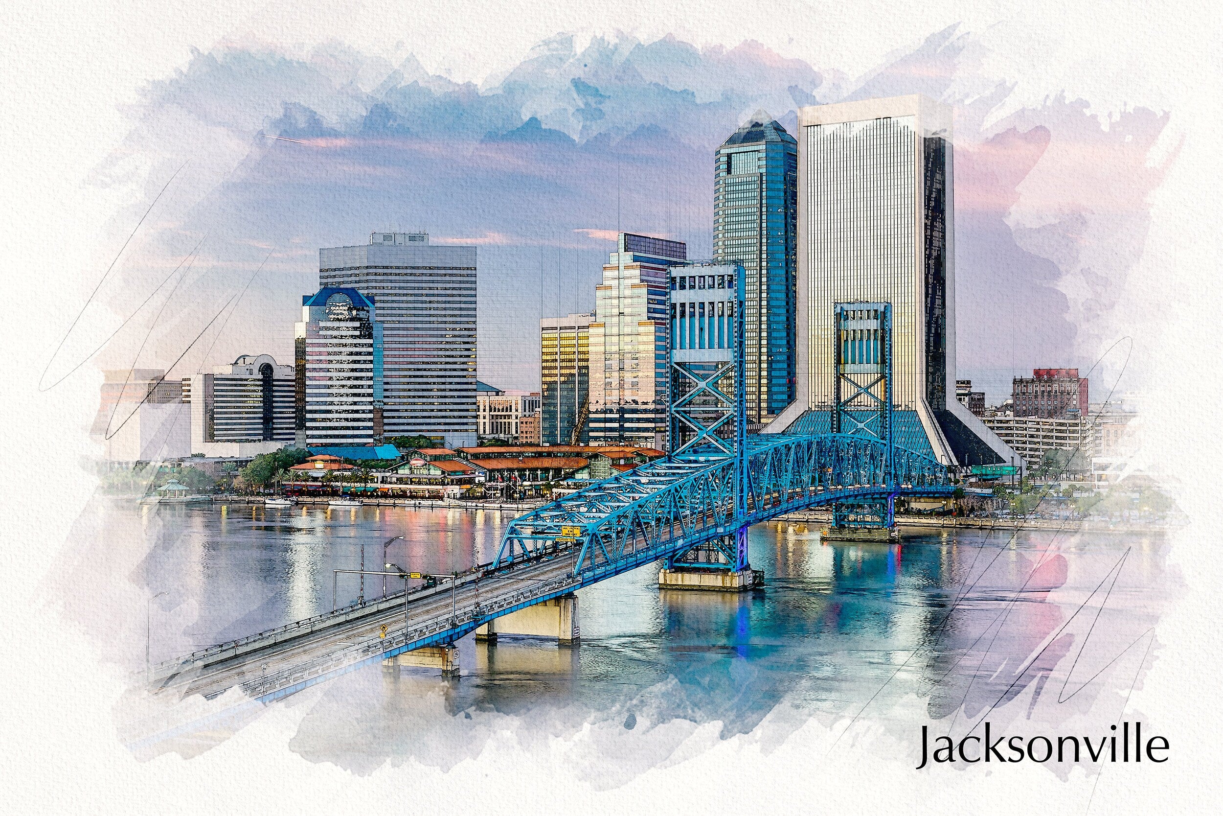 Jacksonville watercolor, Jacksonville Canvas, Jacksonville watercolor skyline, Jacksonville Wall canvas, Jacksonville wall art