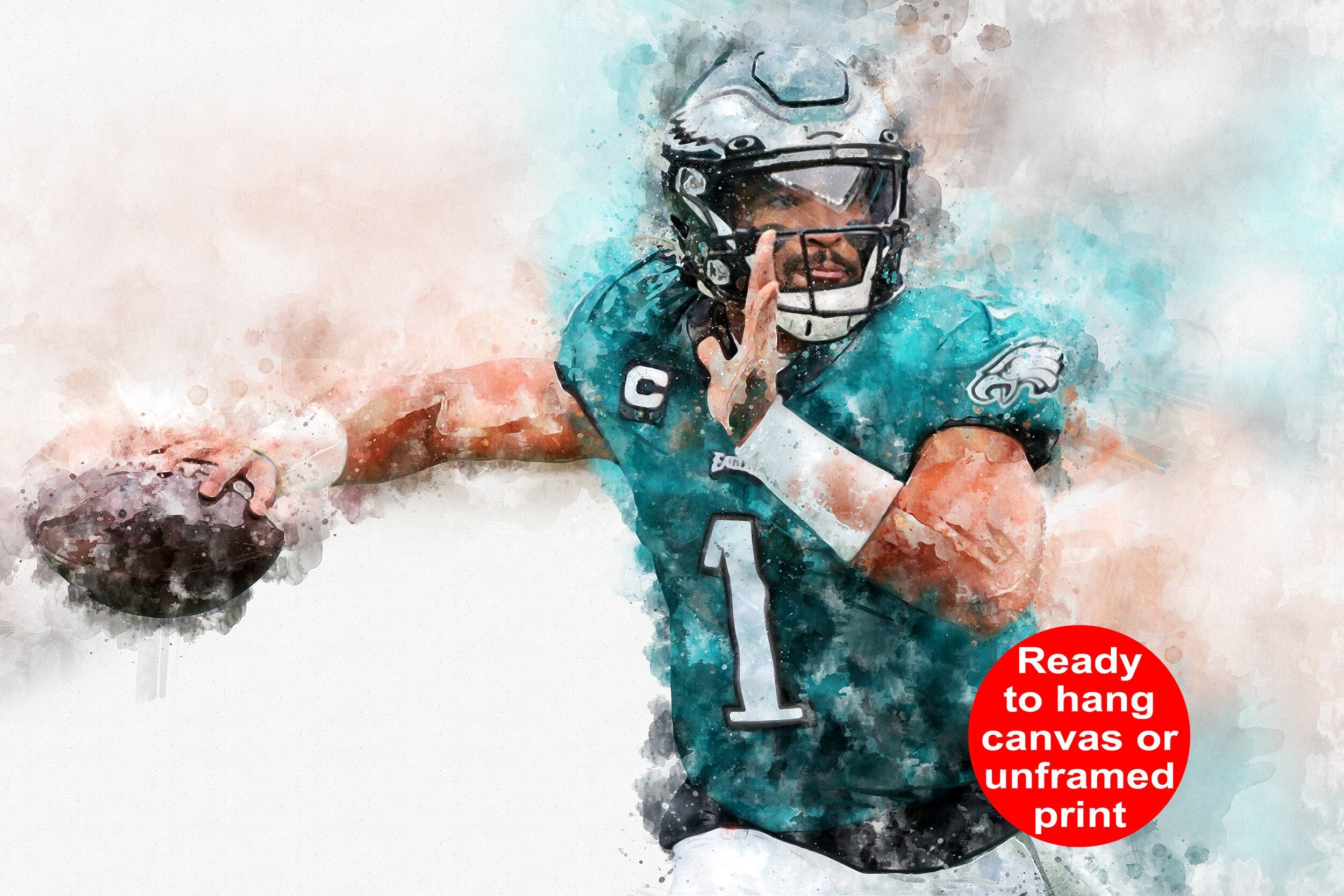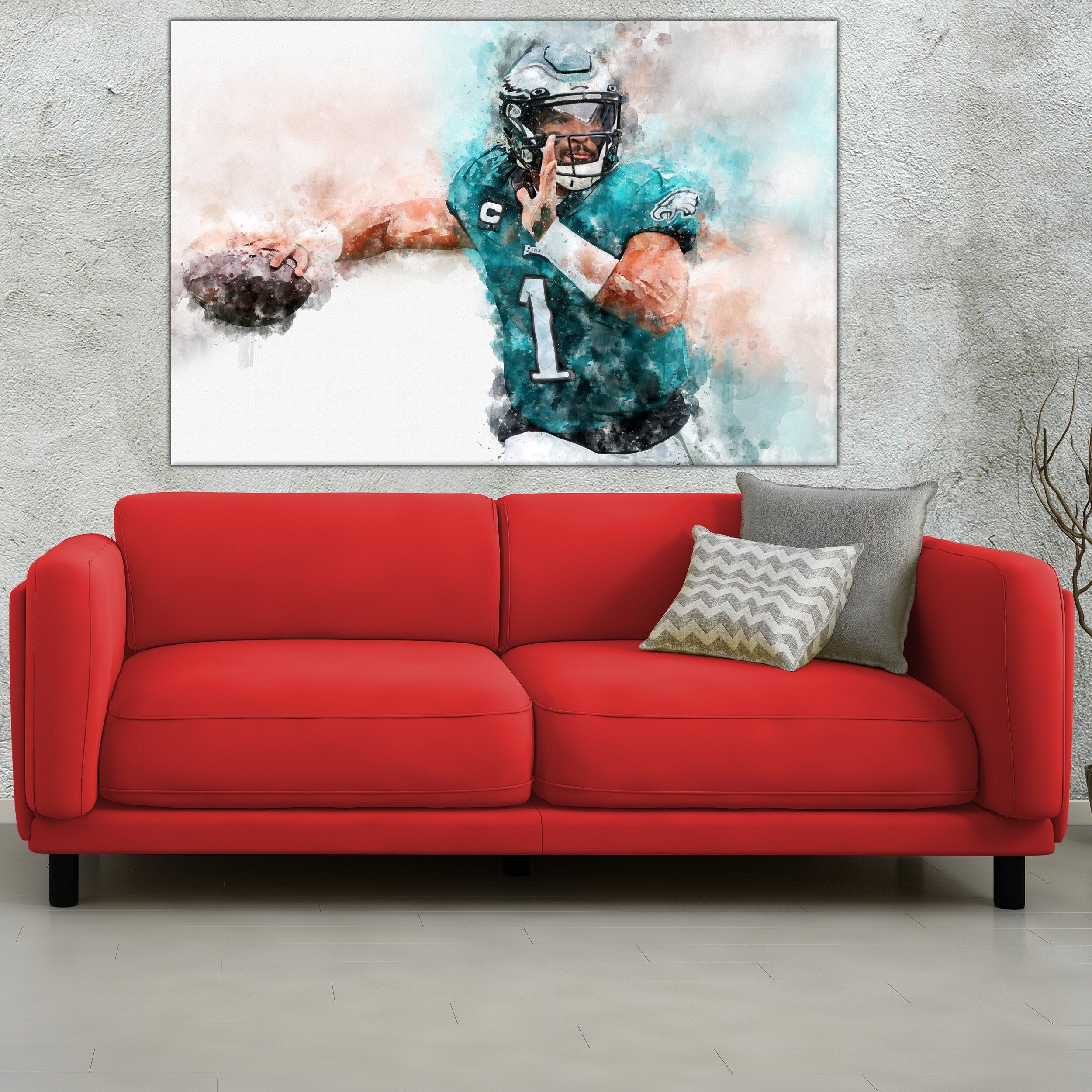 Great for a piece of Jalen Hurts wall art. Available in several sizes as an unframed print or a ready to hang mounted canvas