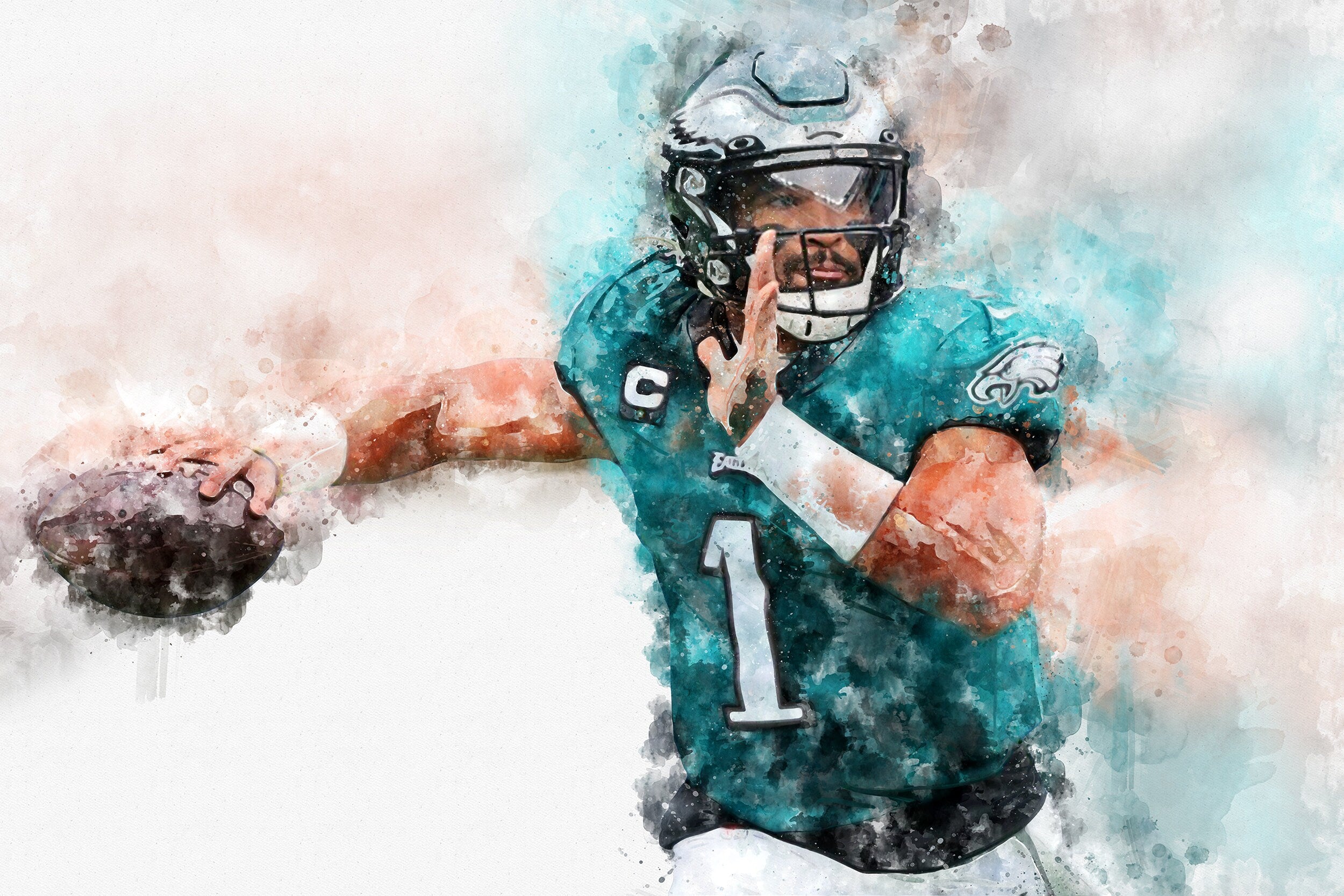 Beautiful watercolor of Jalen Hurts playing for the Philadelphia Eagles
