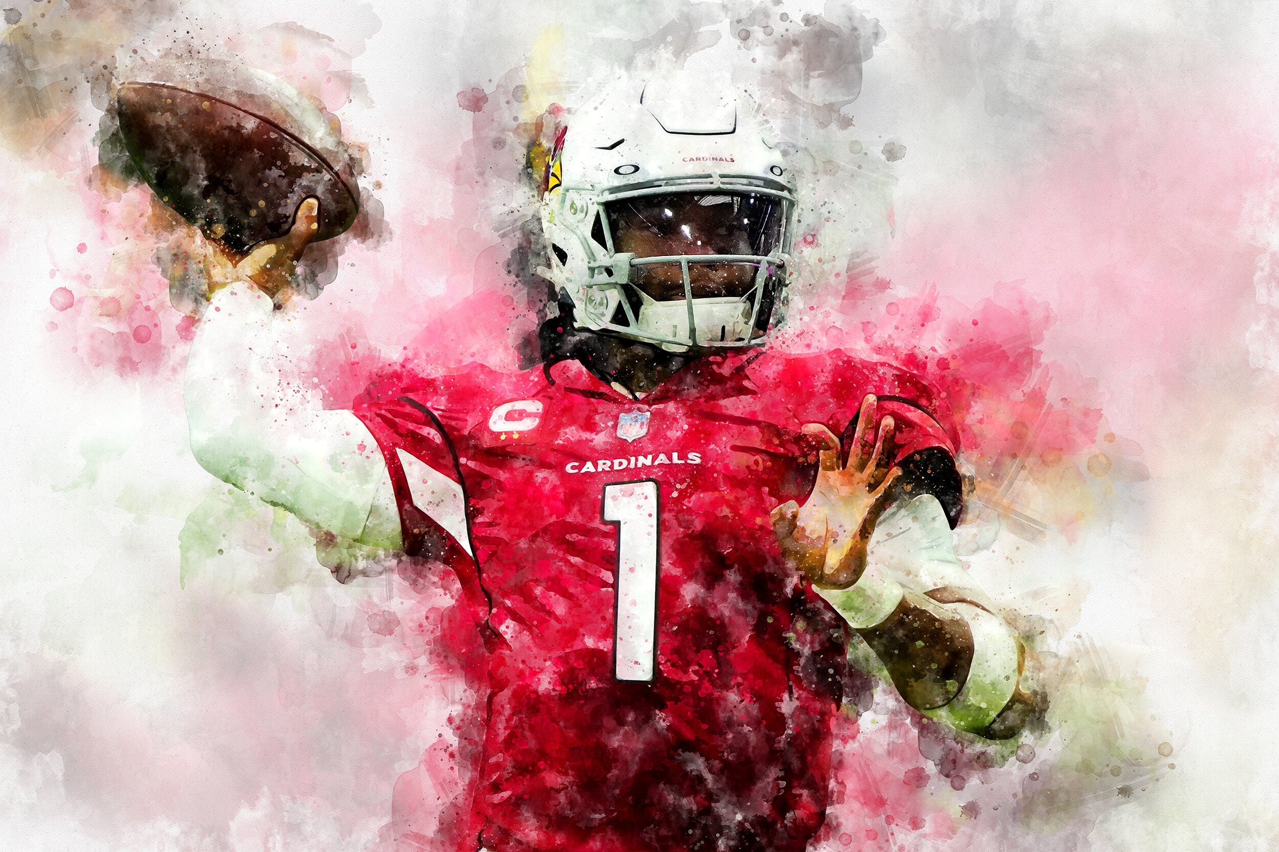 Beautiful watercolor of Kyler Murray playing for the Arizona Cardinals
