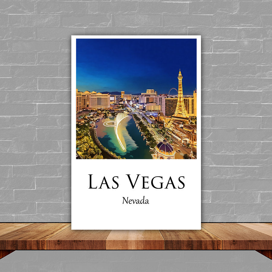 Step into the glittering lights of Las Vegas with our stunning canvas print travel art. This Las Vegas travel art print captures the vibrant energy and excitement of the iconic city, making it the perfect addition to your home decor. Elevate your space with this luxurious Las Vegas canvas print, sure to impress any guest who enters your home.