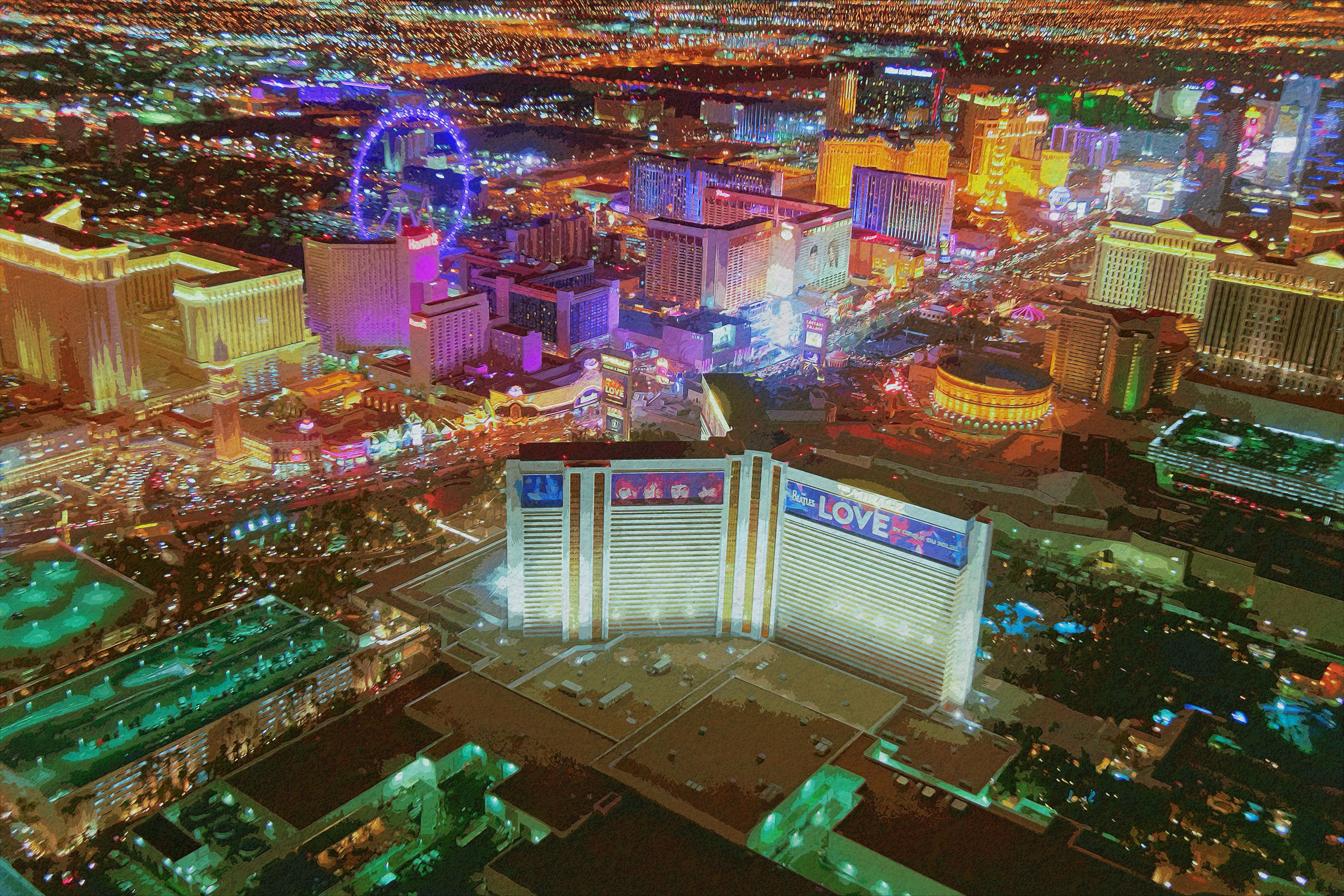 WOW what a great photo of Las Vegas. Would look great in your game room or basement, Great for a piece of wall art. Available as a single canvas at 16″ x 24″ , 24″ x 36″ , or 32″ x 48″ or we can make you a special 3 panel work of art as large as 4 x 8 foot wide. Las Vegas watercolor