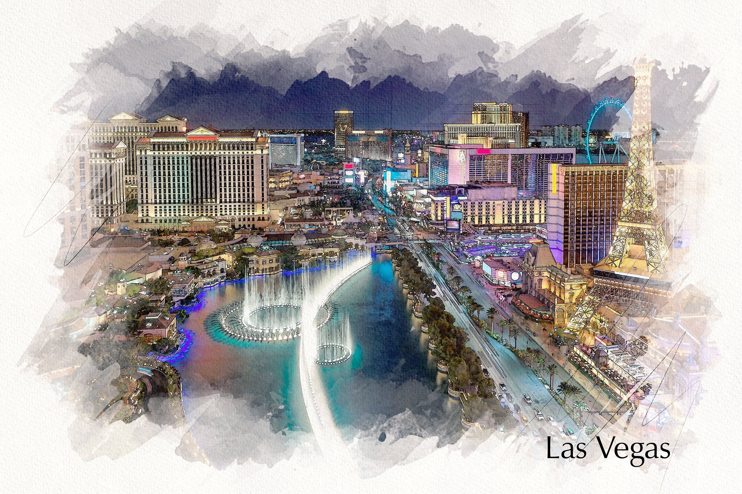 Be the first to review “Las Vegas watercolor skyline, Las Vegas skyline print, Wall canvas, Sketch Watercolor print Las Vegas at night photo, Las Vegas art print”