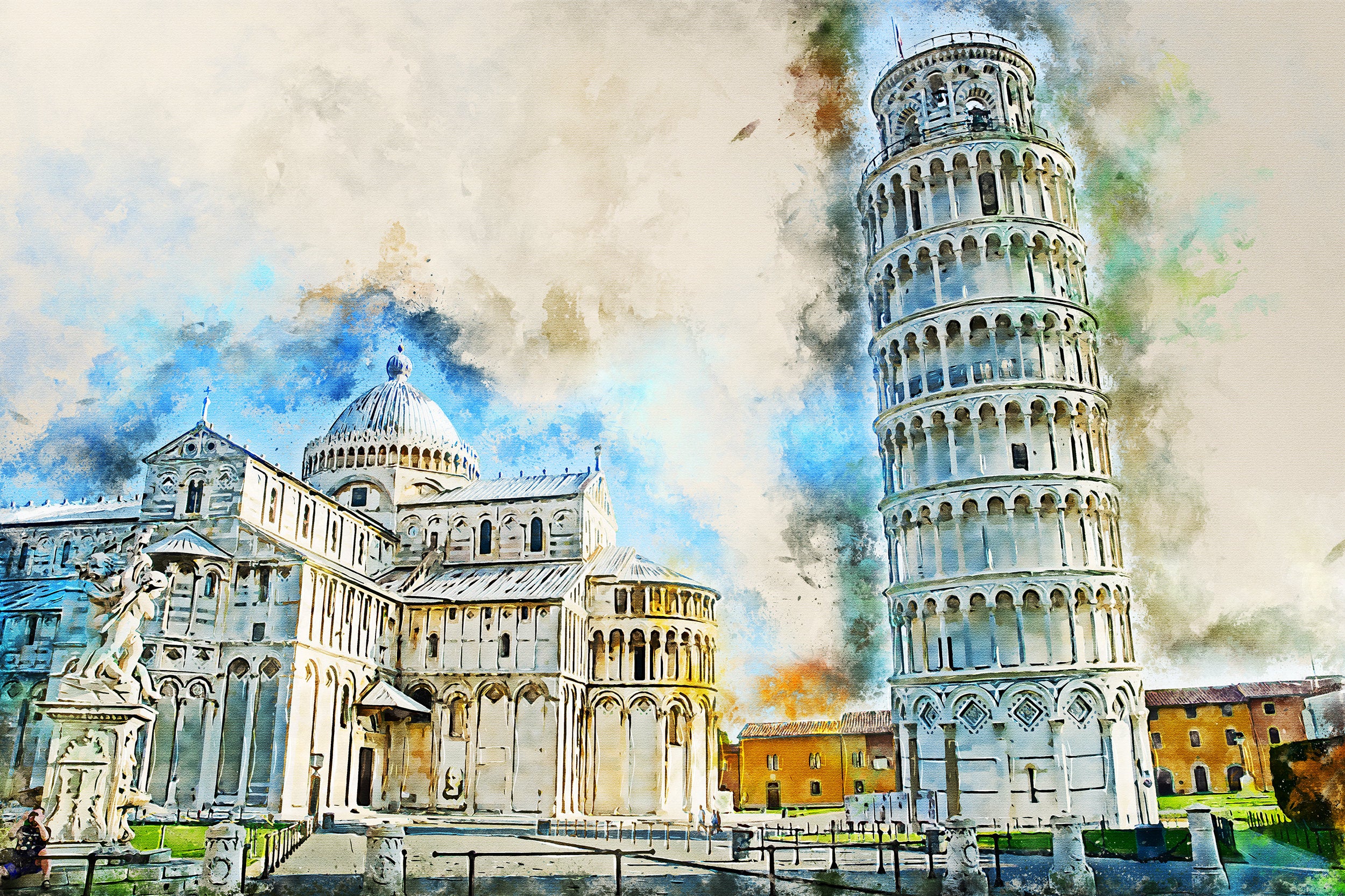 Stunning Photo of Leaning Tower of Pisa in Italy Great for a piece of wall art. Great for a piece of wall art. Available as a single canvas at 16″ x 24″ , 24″ x 36″ , or 32″ x 48″ Leaning Tower of Pisa watercolor canvas