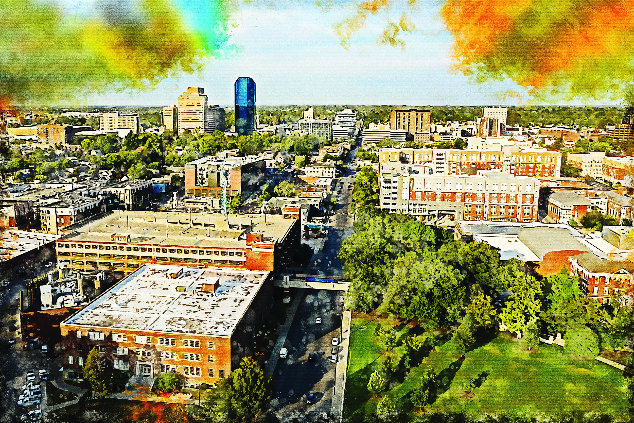 The beautiful watercolor of Lexington KY on canvas framed and ready to hang. Stunning colors that make for the perfect wall decor. Lexington KY watercolor
