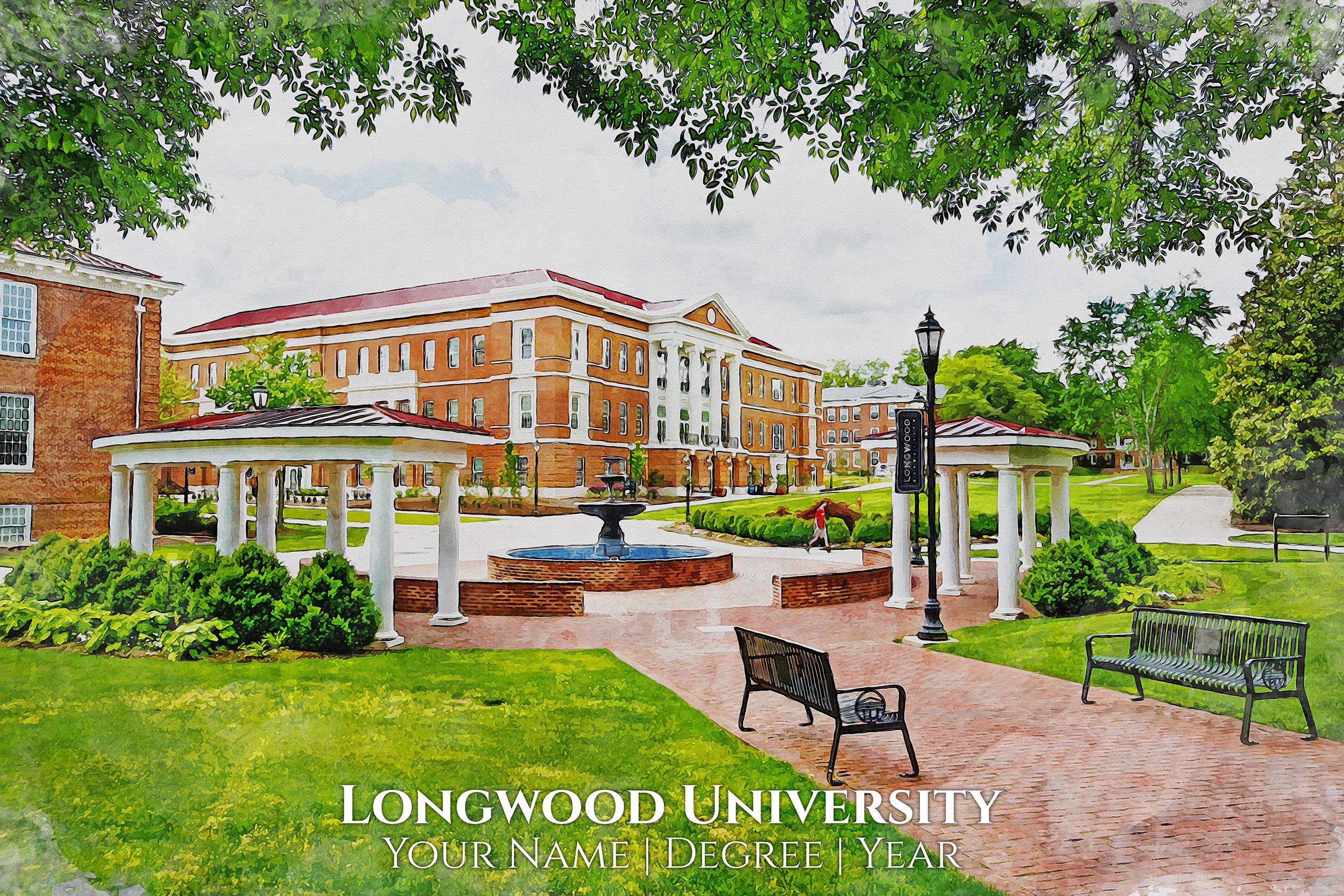 Longwood University watercolor. Graduation gift, Longwood University Print, College wall art, College WC