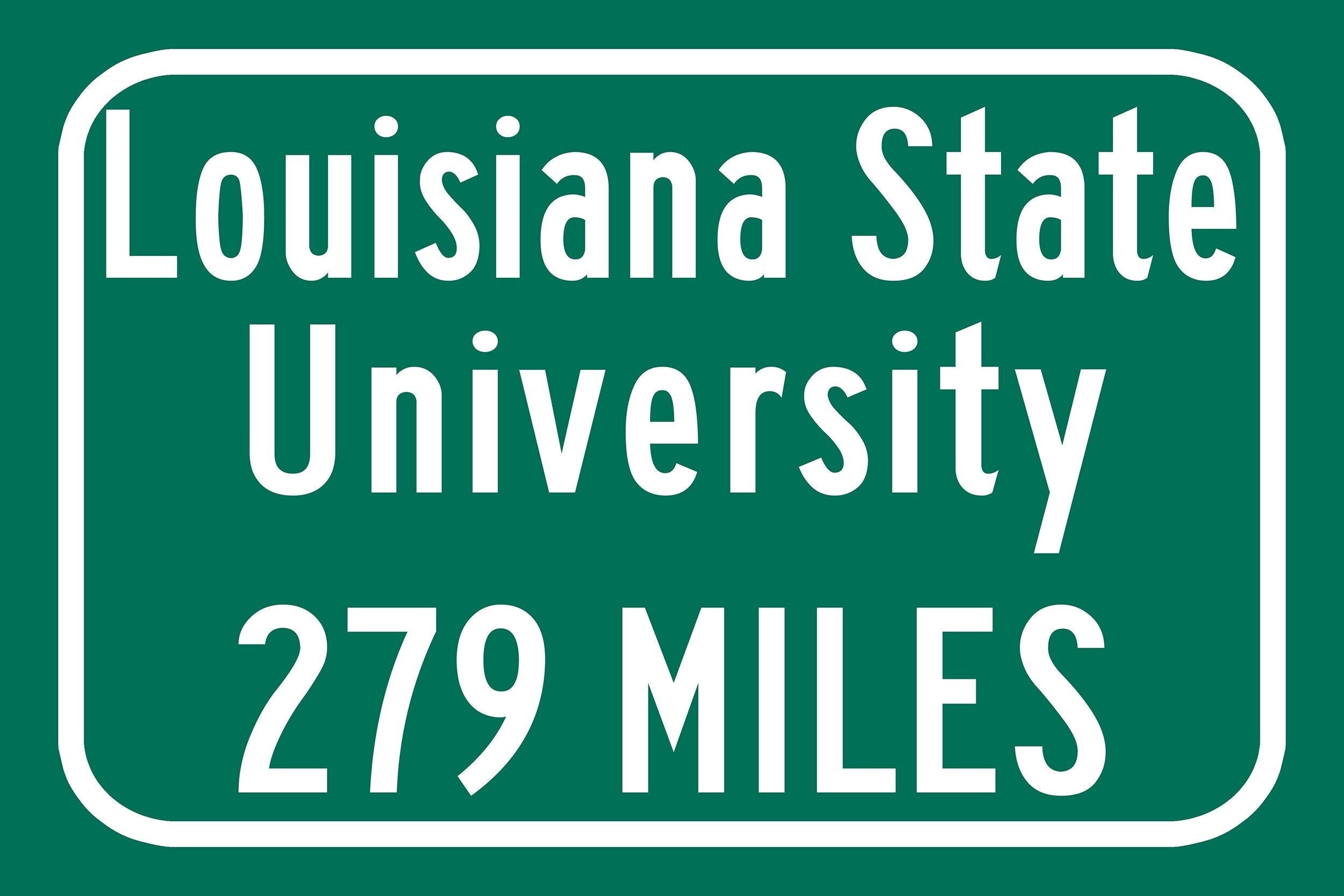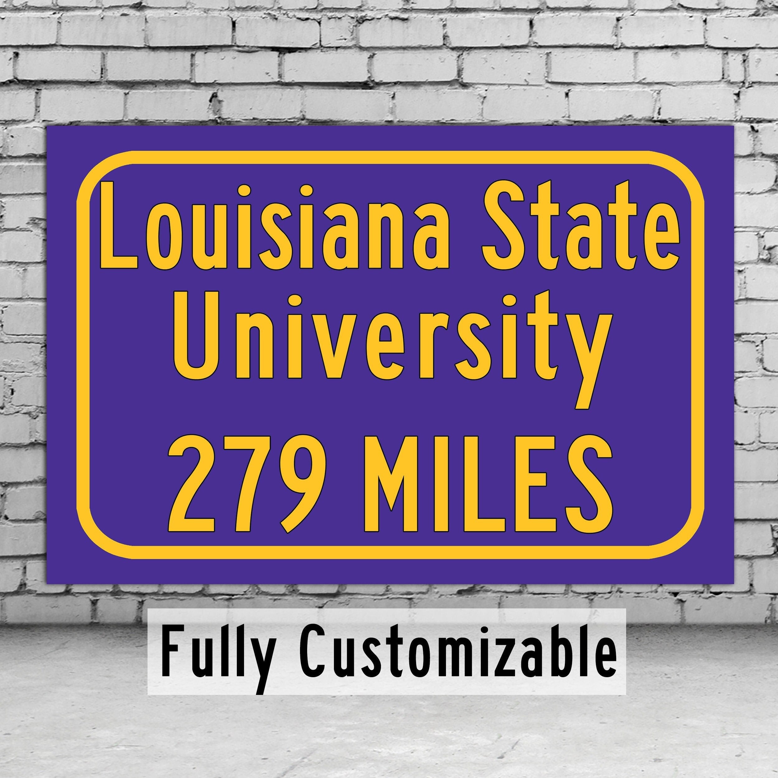 Personalized Highway Distance sign to Louisiana State University . Louisiana State University sign. LSU Tigers sign.
