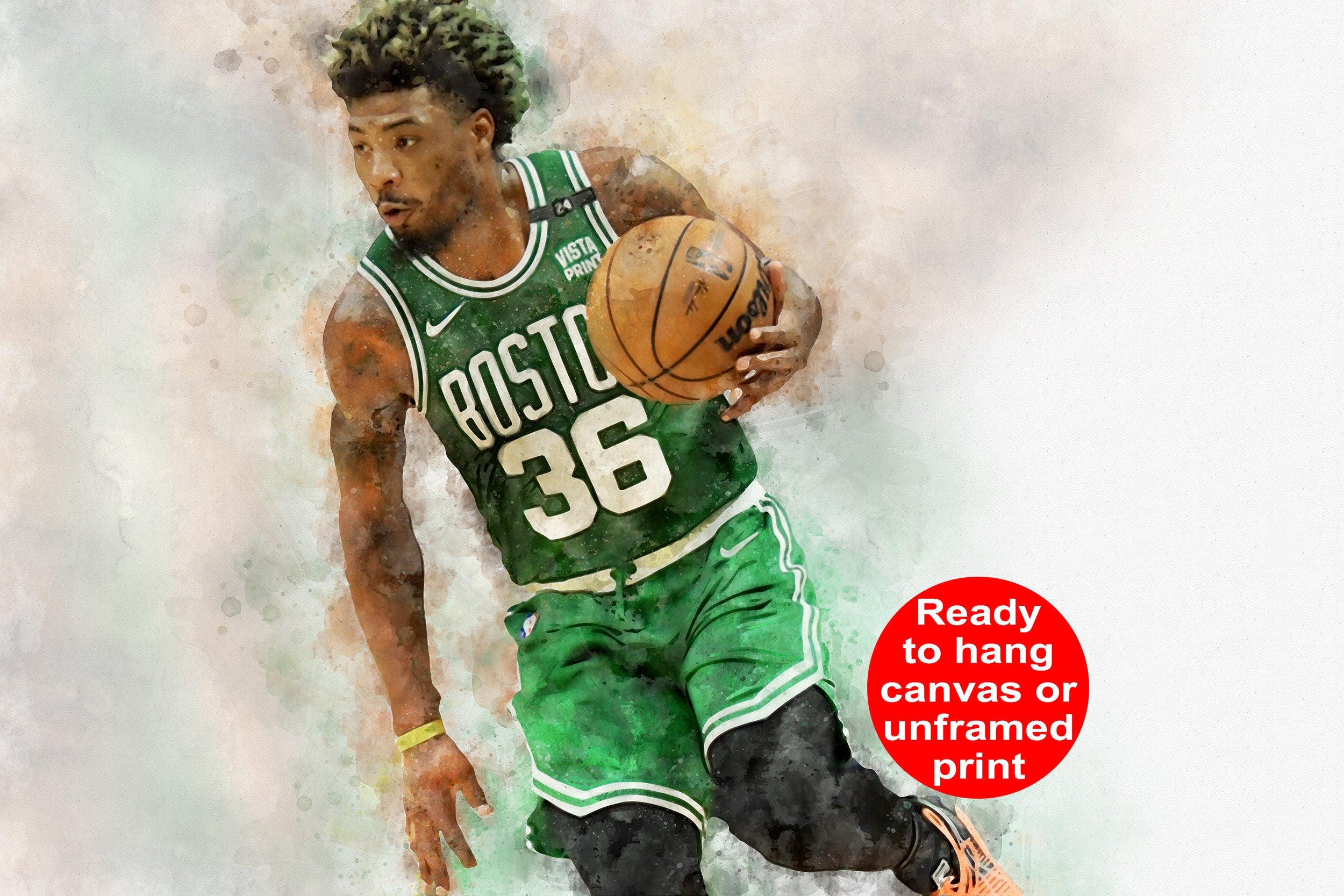 Great for a piece of Marcus Smart wall art. Available in several sizes as an unframed print or a ready to hang mounted canvas