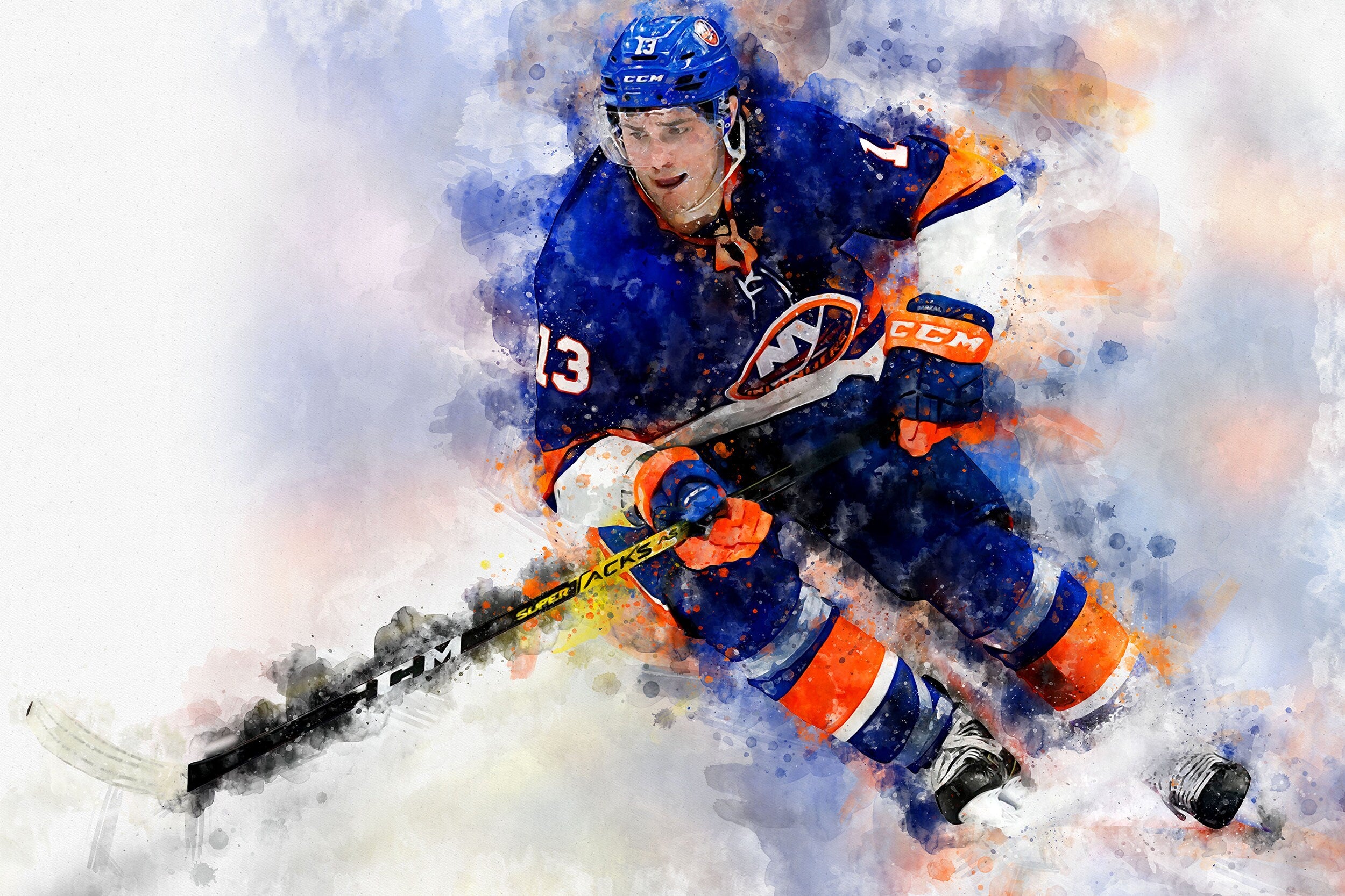 This Mathew Barzal watercolor print is the perfect decor for any home. This print of my digitally custom created wall art will last a lifetime. Mathew Barzal poster.