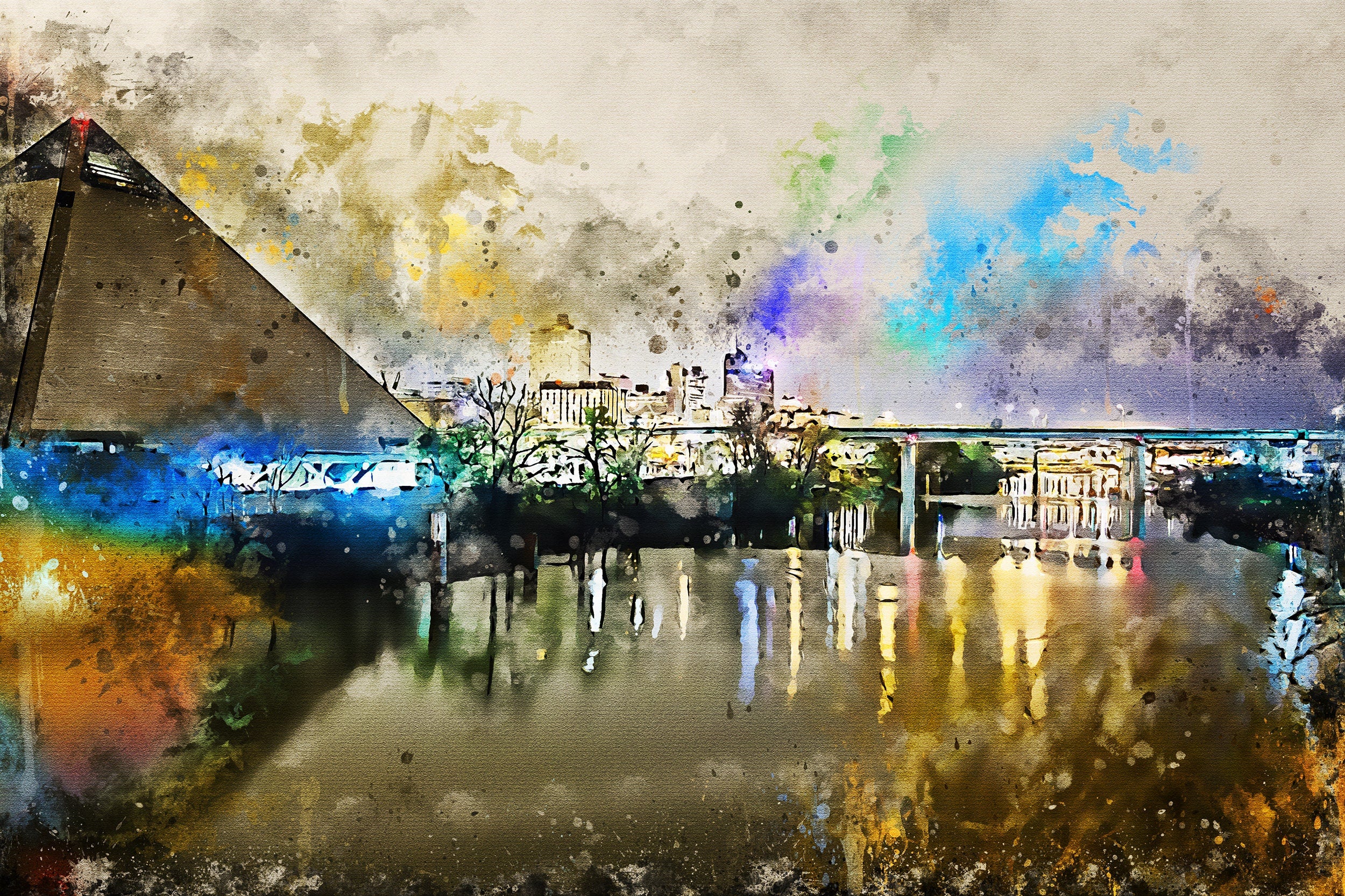 Stunning Watercolor of the Memphis TN skyline. Memphis watercolor canvas. Great for a piece of wall art. Great for a piece of wall art. Available as a single canvas at 16″ x 24″ , 24″ x 36″ , or 32″ x 48″ or we can make you a special 3 panel work of art or if you prefer, a digital download and you can print it your self. (no physical product sent)