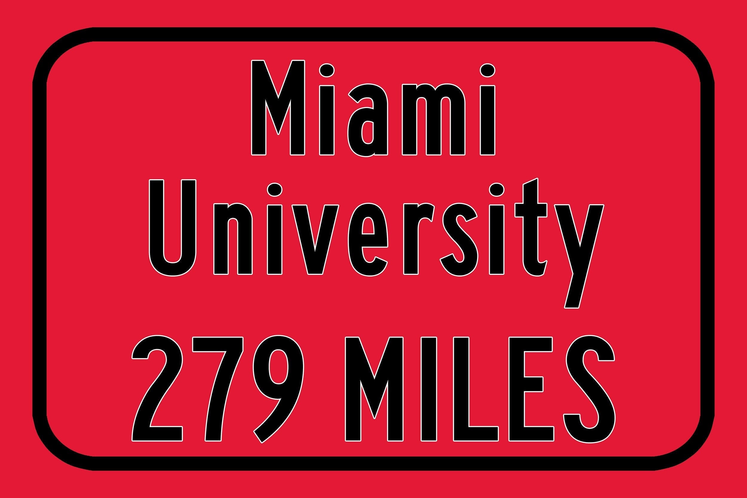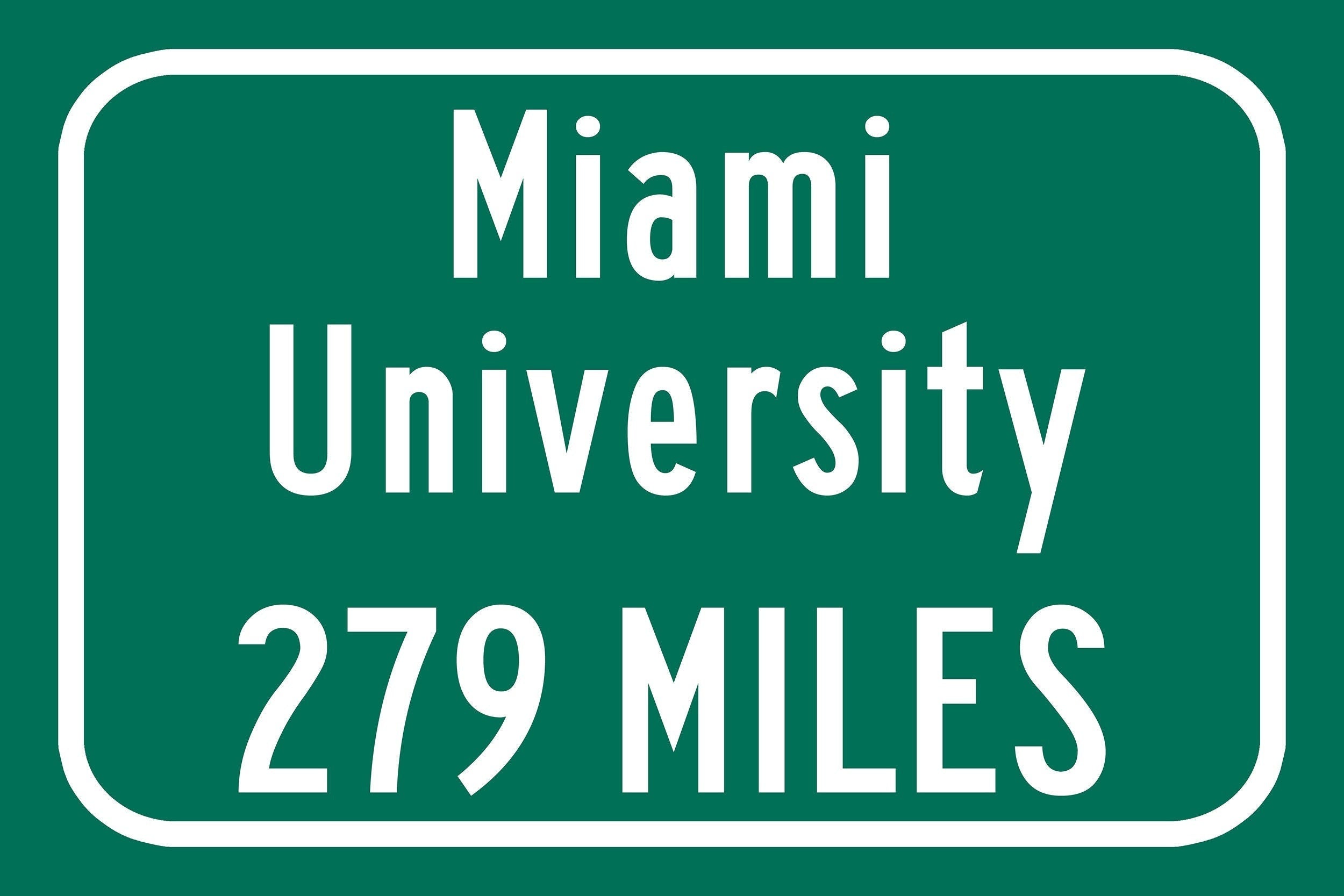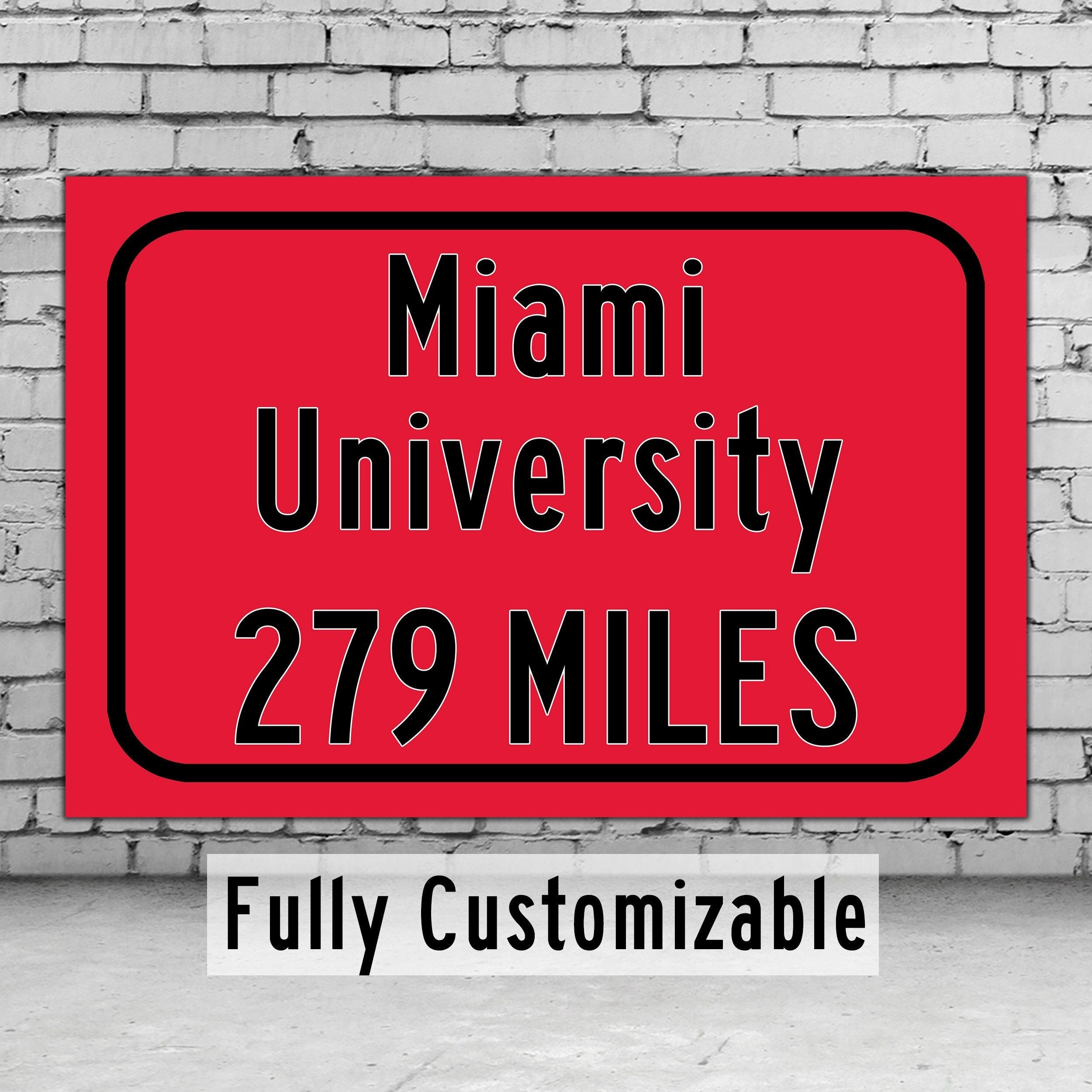 Personalized Highway Distance sign to Miami University / Oxford Ohio / Miami Redhawks /