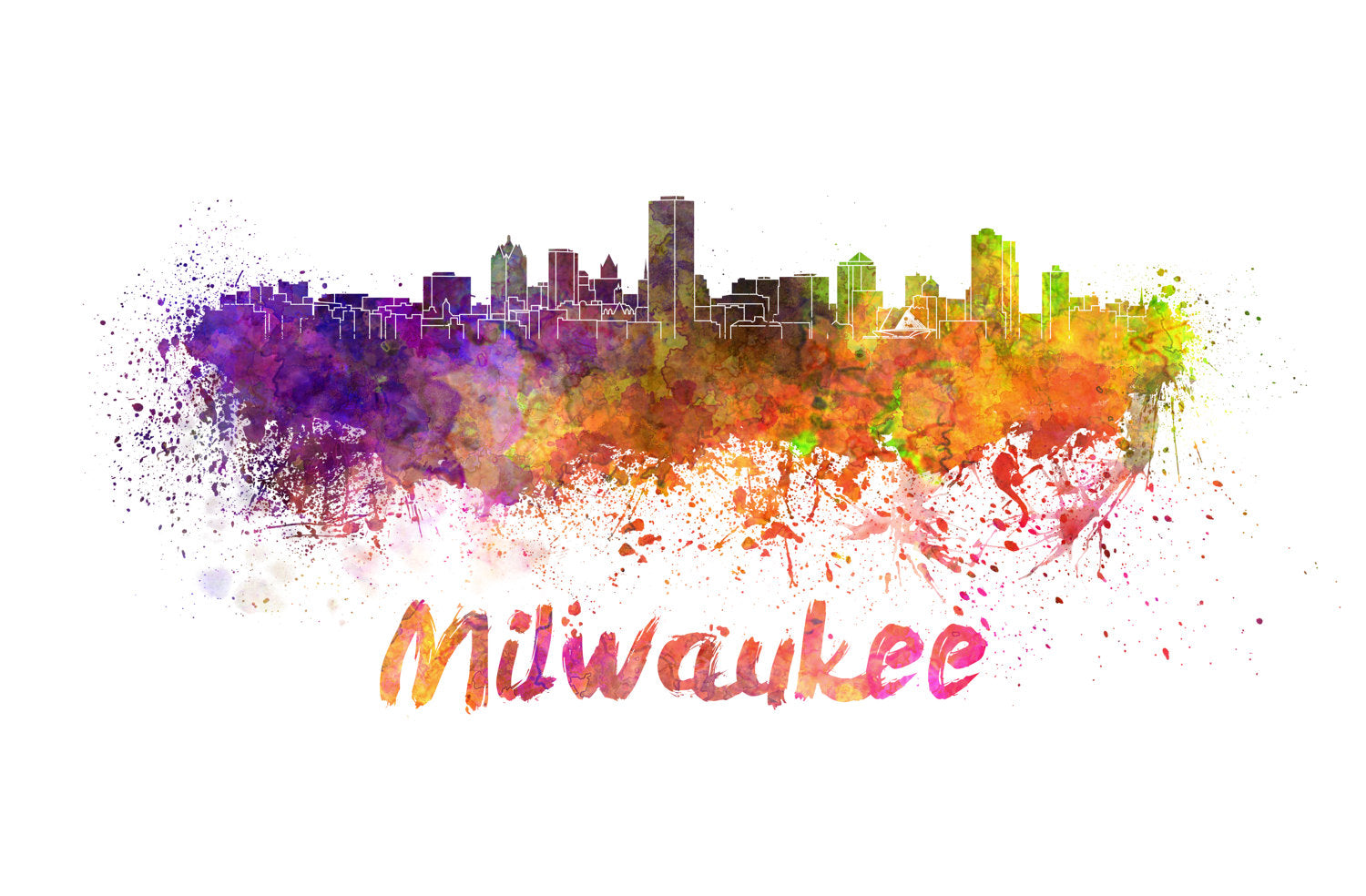 The beautiful skyline of Milwaukee Wisconsin on canvas framed and ready to hang. Stunning watercolors that make for the perfect wall decor. The default print comes with the city name. Send us a message if you prefer that the name not be listed on the print
