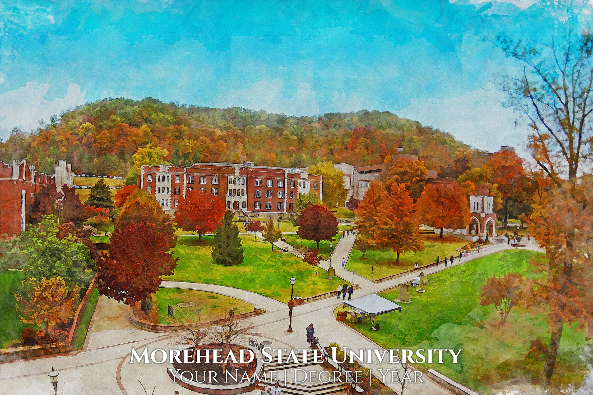 You will love these watercolor digital prints of Morehead State University. Perfect for a graduation gift. These make wonderful gift for Morehead State University Alumni and fans. Feel free to customize it as well when you check out. We will send a proof for you to approve before we print so please check your email about 24hrs after you order