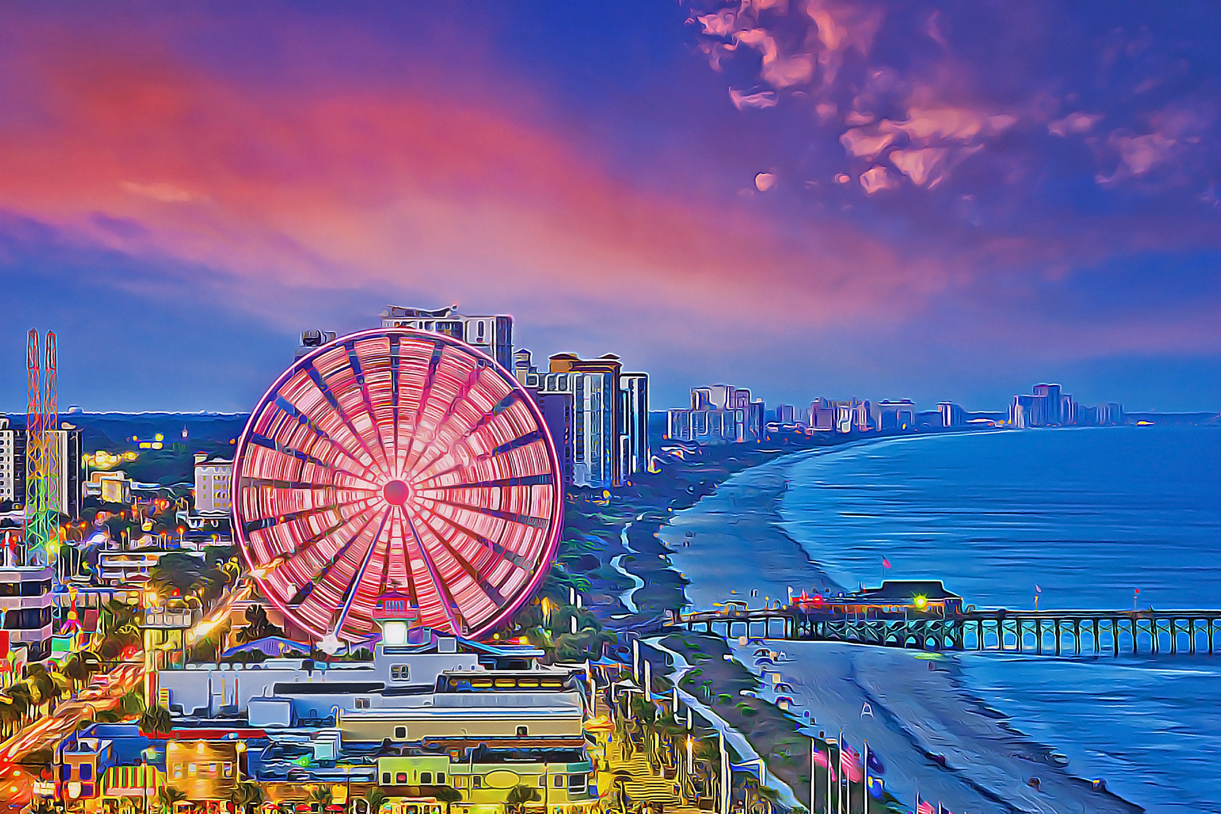 Great watercolor of Myrtle Beach on Canvas. Myrtle Beach watercolor Great for a piece of wall art. Available as a single canvas at 16″ x 24″ , 24″ x 36″ , or 32″ x 48″ or we can make you a special 3 panel work of art as large as 4 x 8 foot wide or purchase our digital download to print yourself (no product will be sent) South Carolina art
