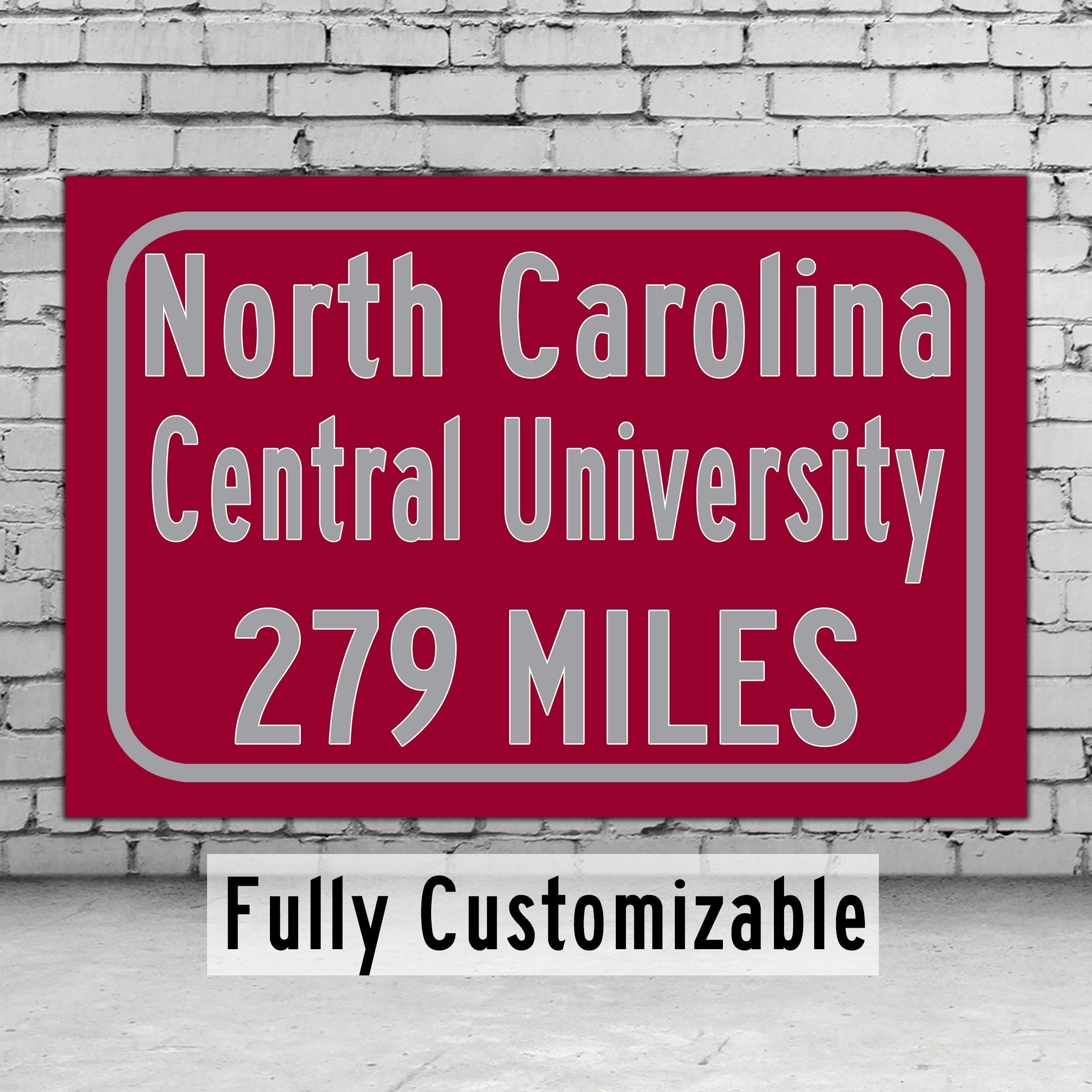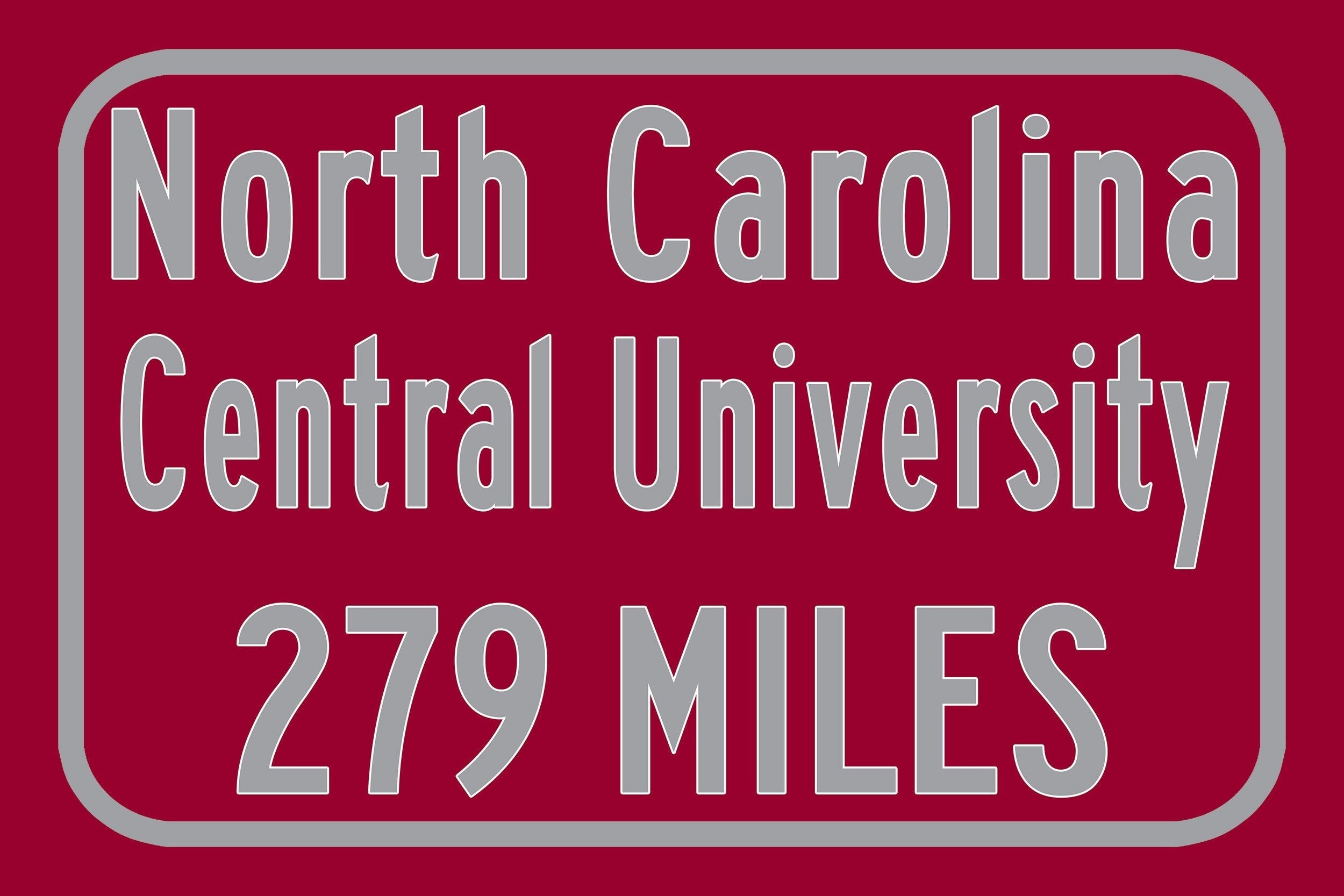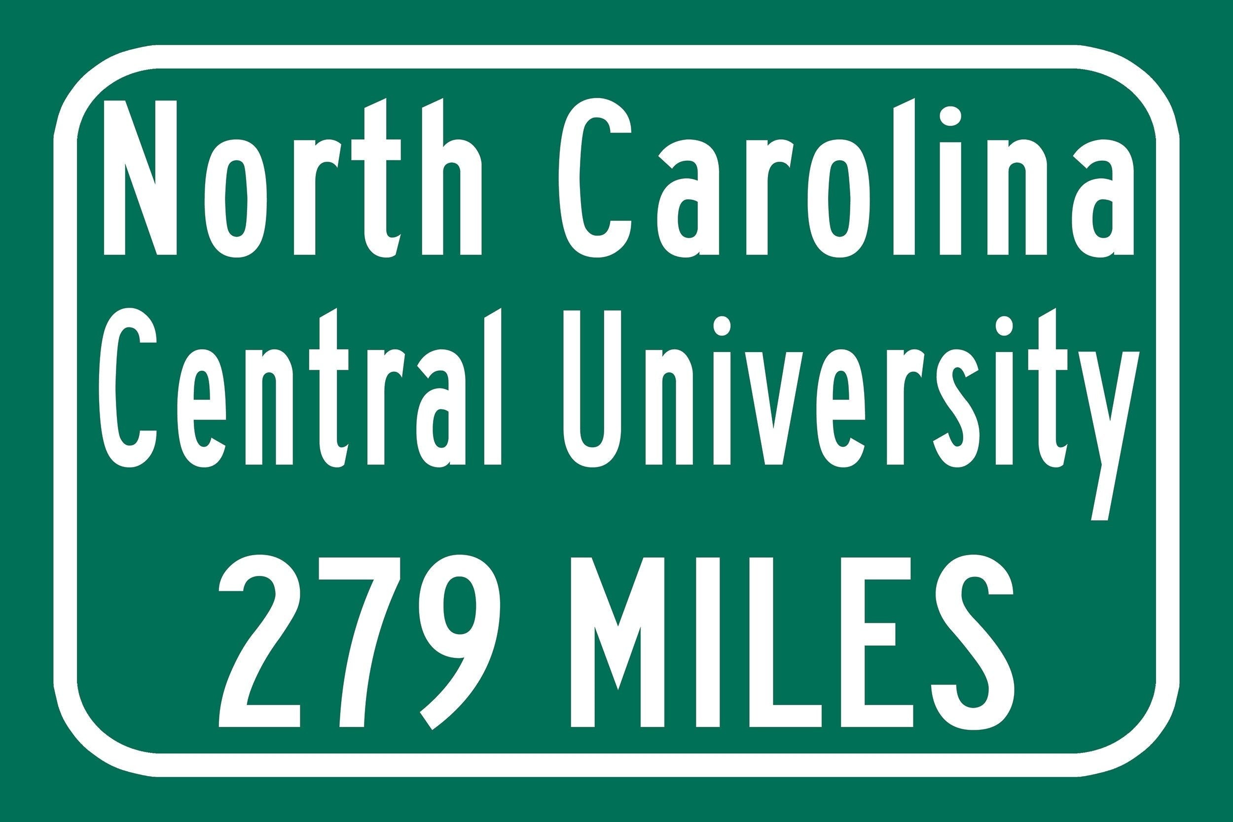 Personalized Highway Distance sign to North Carolina Central University / North Carolina Central Eagles / Durham North Carolina