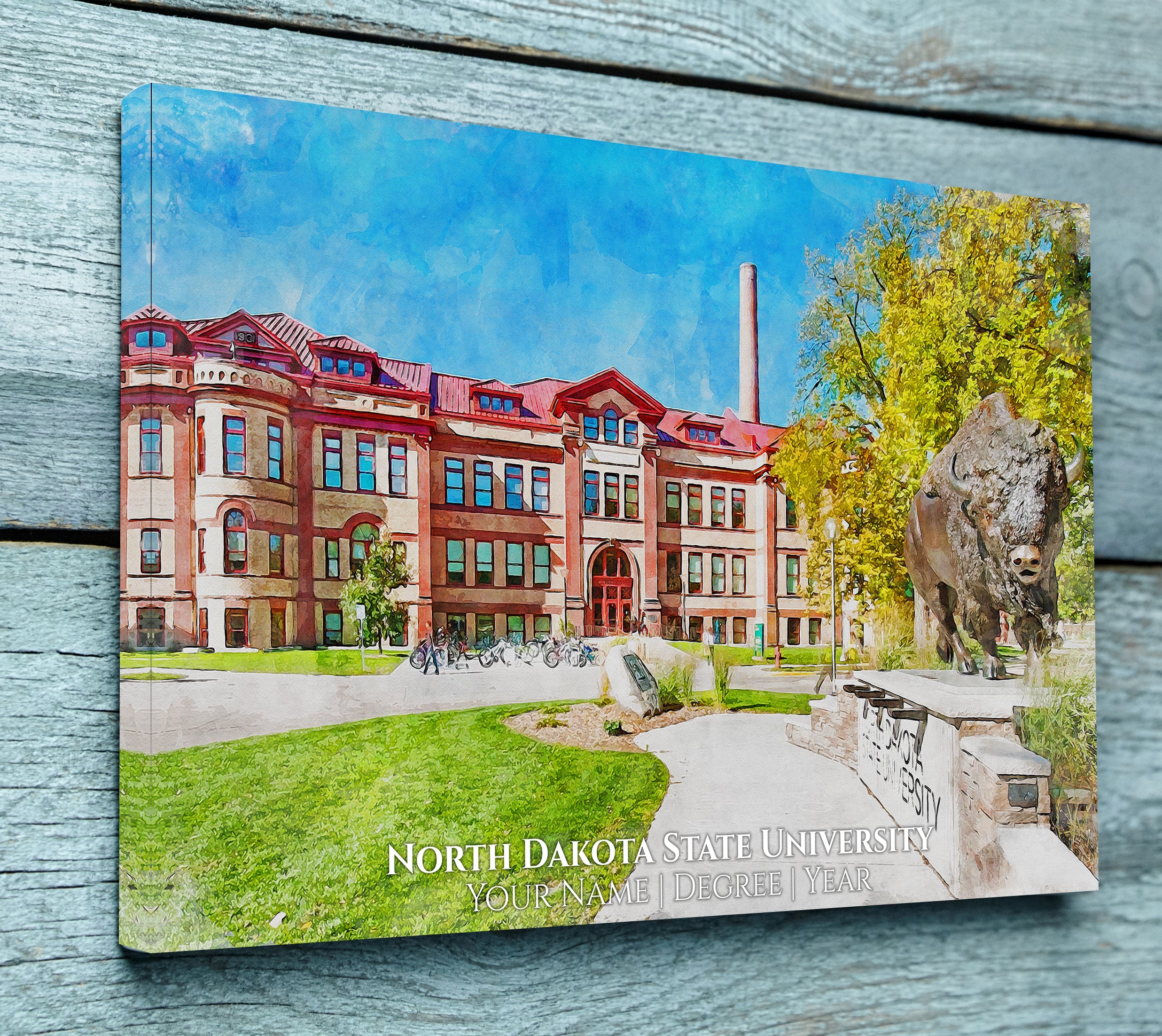 You will love these watercolor digital prints of North Dakota State University. Perfect for a graduation gift. These make wonderful gift for North Dakota State University graduates, and fans. Feel free to customize it as well when you check out. We will send a proof for you to approve before we print so please check your email about 24hrs after you order