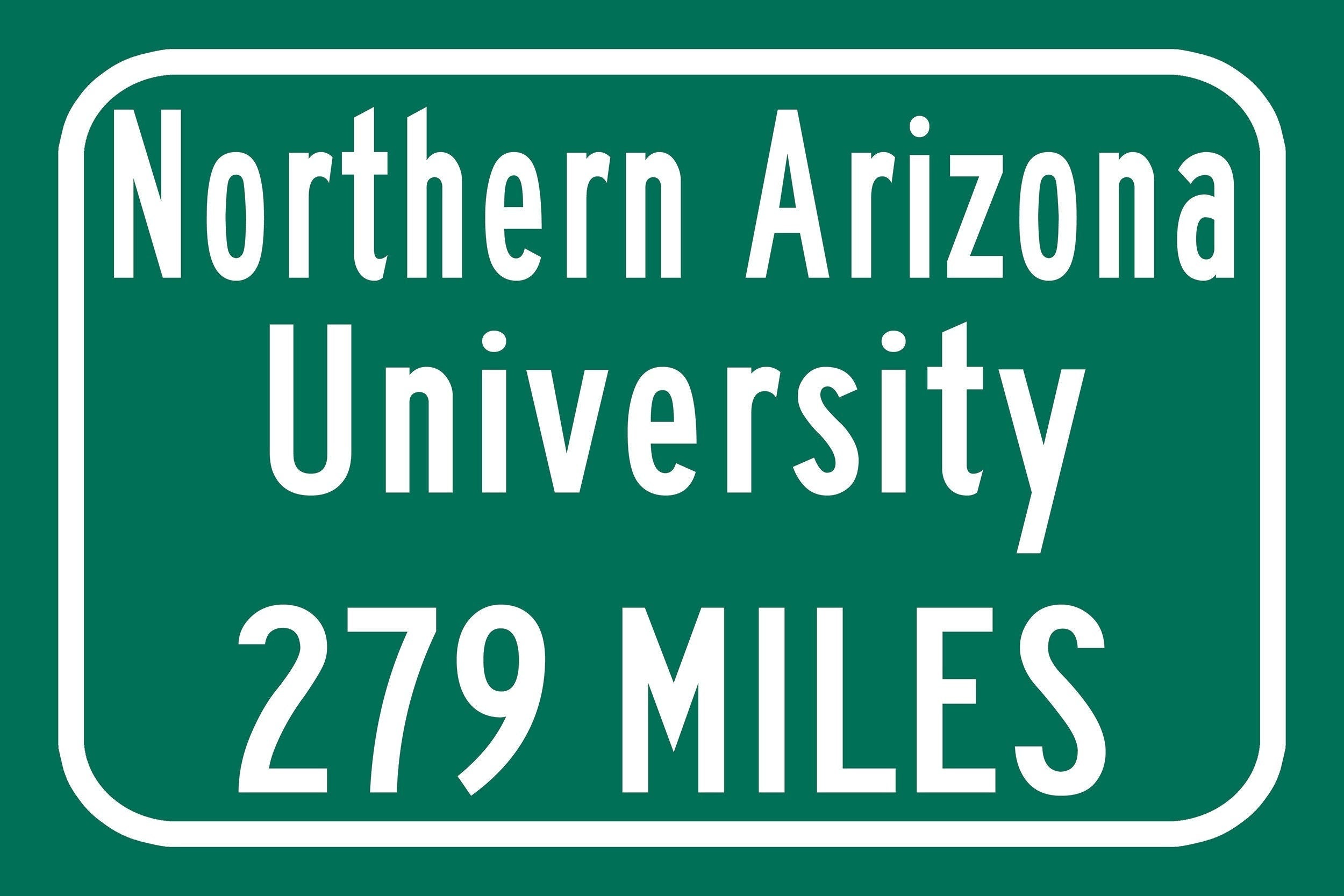 Personalized Highway Distance sign to Northern Arizona University / Northern Arizona University sign. Northern Arizona Lumberjacks signs