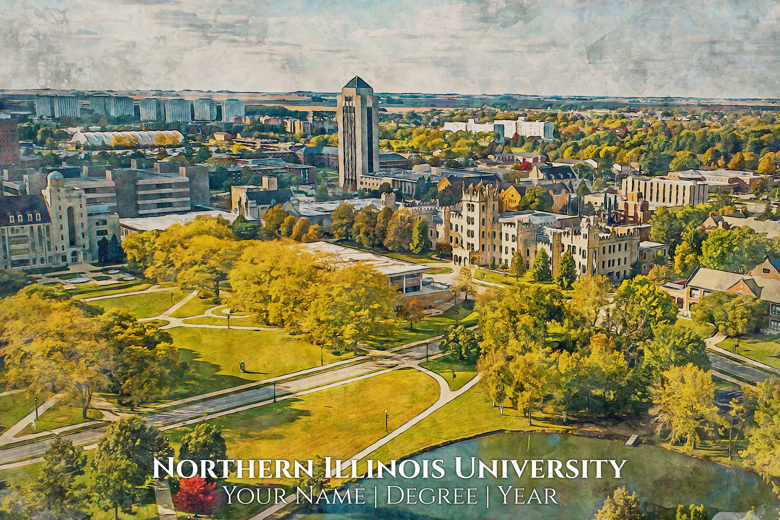 You will love these watercolor digital prints of Northern Illinois University. Perfect for a graduation gift. These make wonderful gift for Northern Illinois University Alumni and fans. Feel free to customize it as well when you check out. We will send a proof for you to approve before we print so please check your email about 24hrs after you order