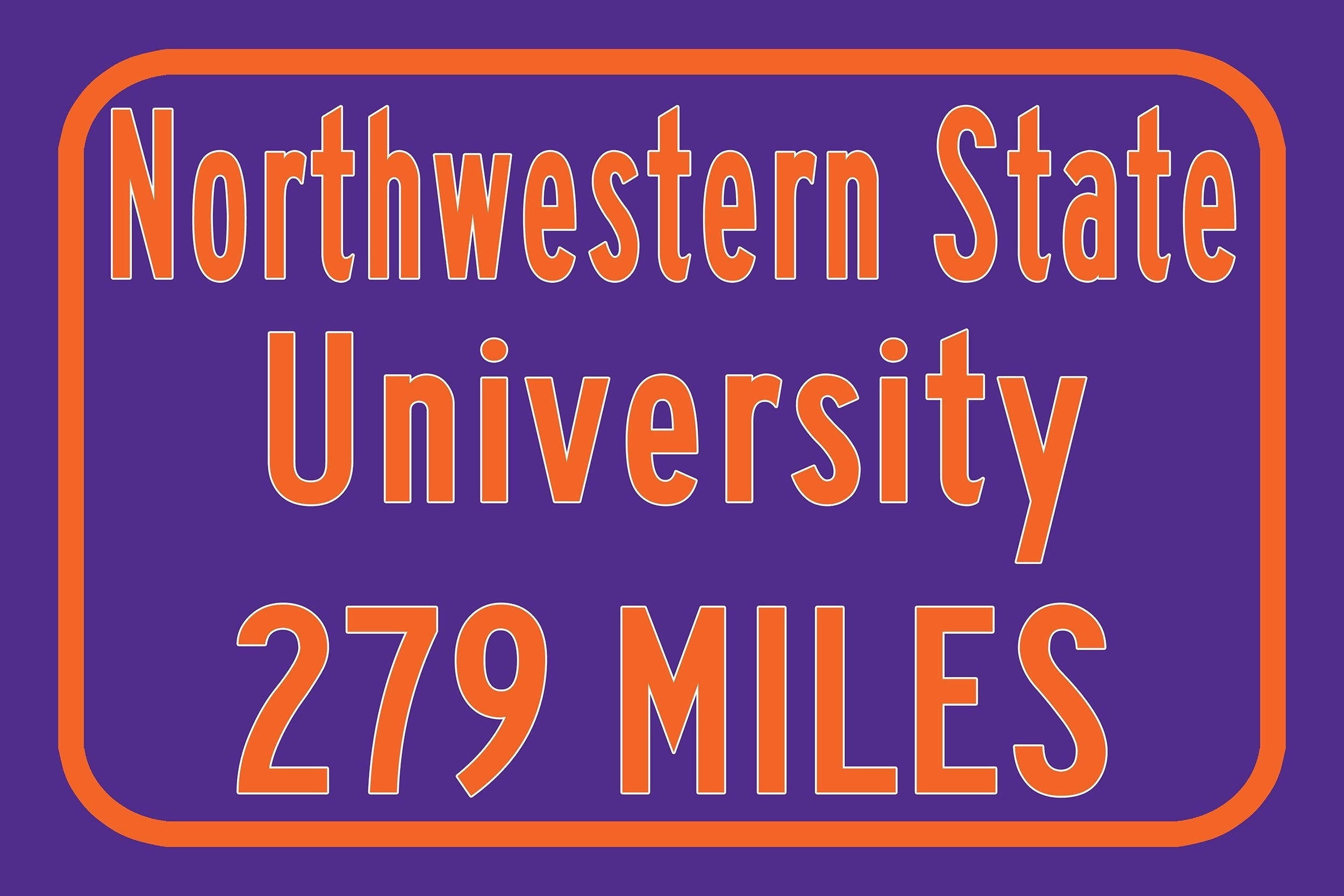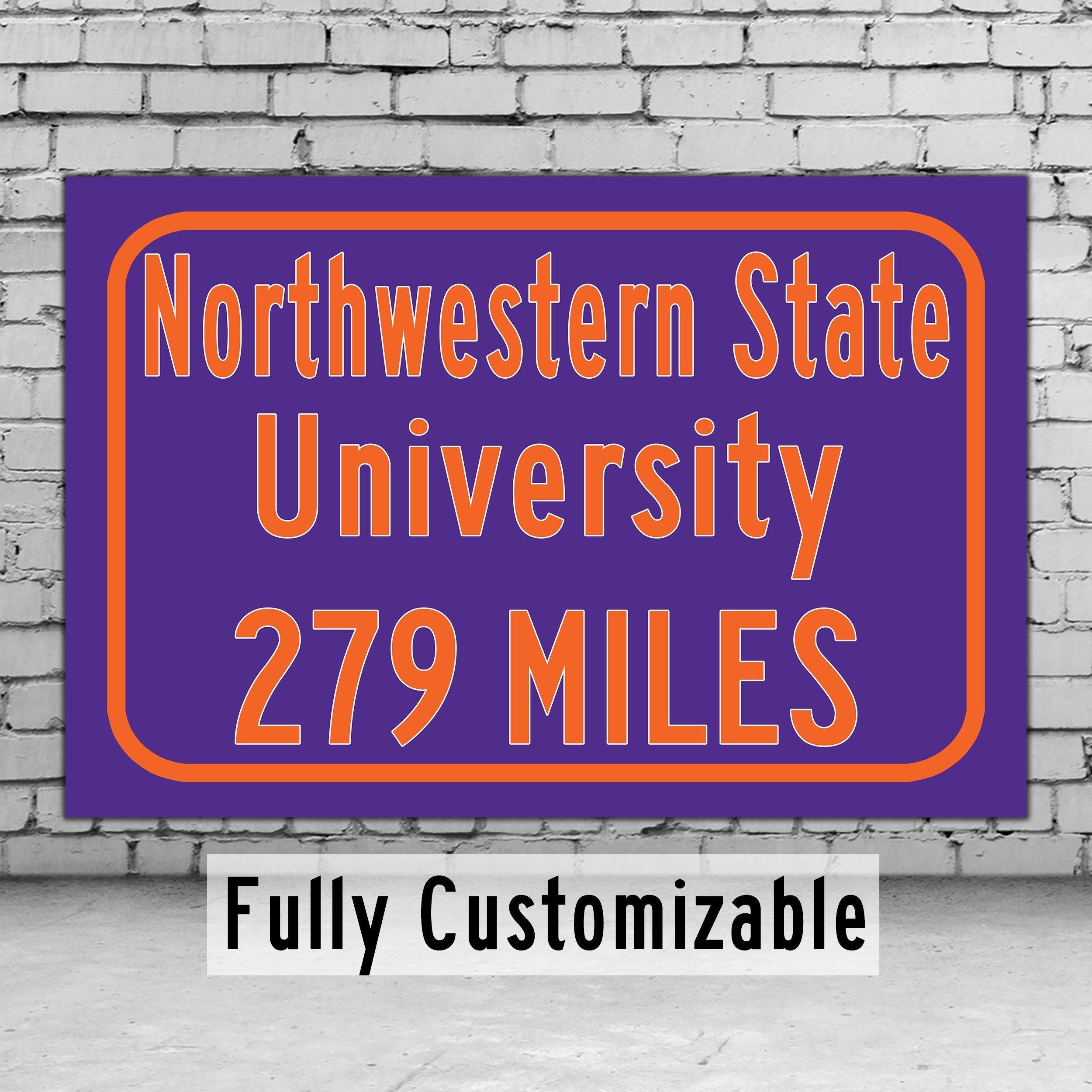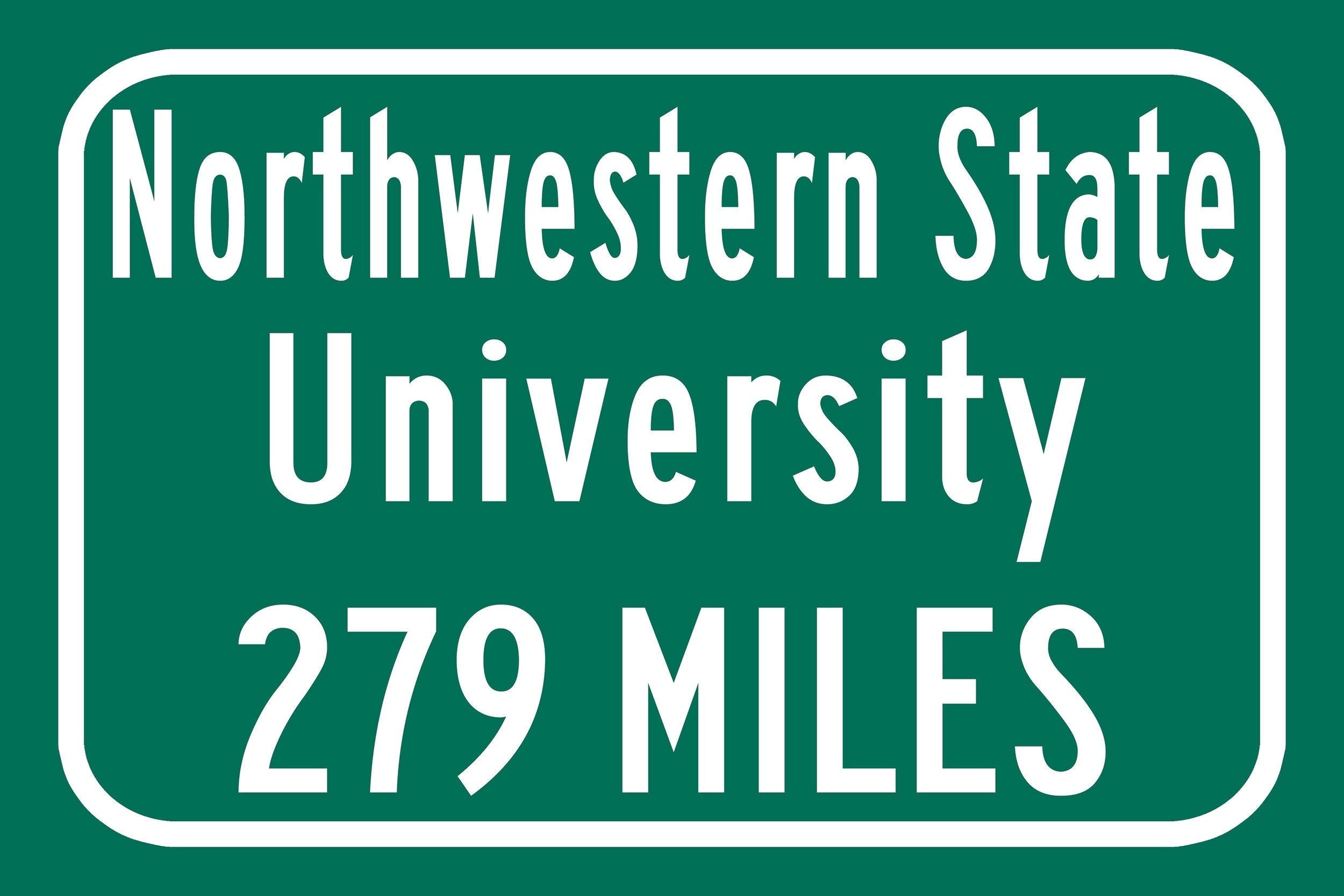 Personalized Highway Distance sign to Northwestern State University / Natchitoches Louisiana / Northwestern State Demons