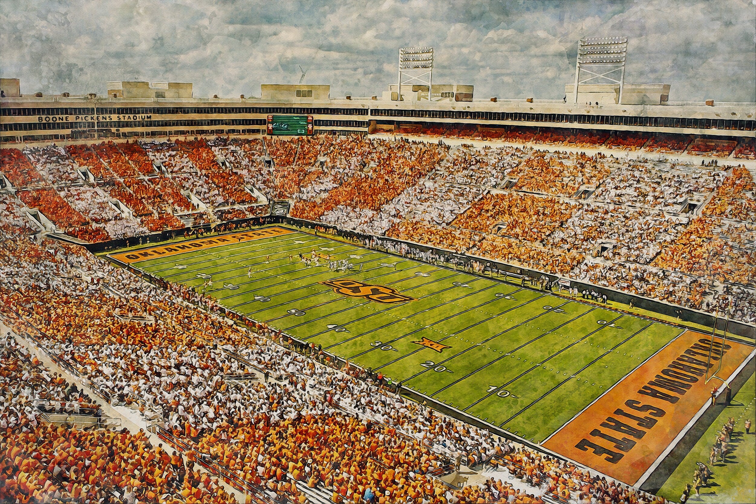 Oklahoma State Cowboys , Boone Pickens Stadium, Watercolor Digital Sketch Print Canvas Print, Oklahoma State University, Stillwater Oklahoma