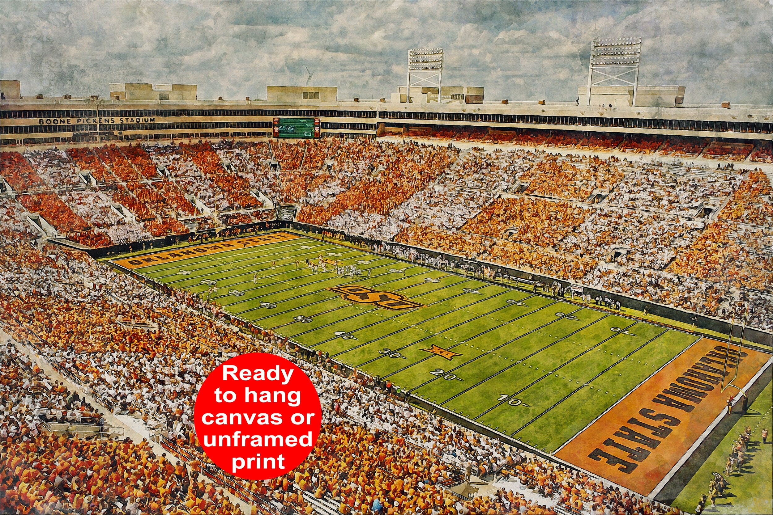 Be the first to review “Oklahoma State Cowboys , Boone Pickens Stadium, Watercolor Digital Sketch Print Canvas Print, Oklahoma State University, Stillwater Oklahoma”