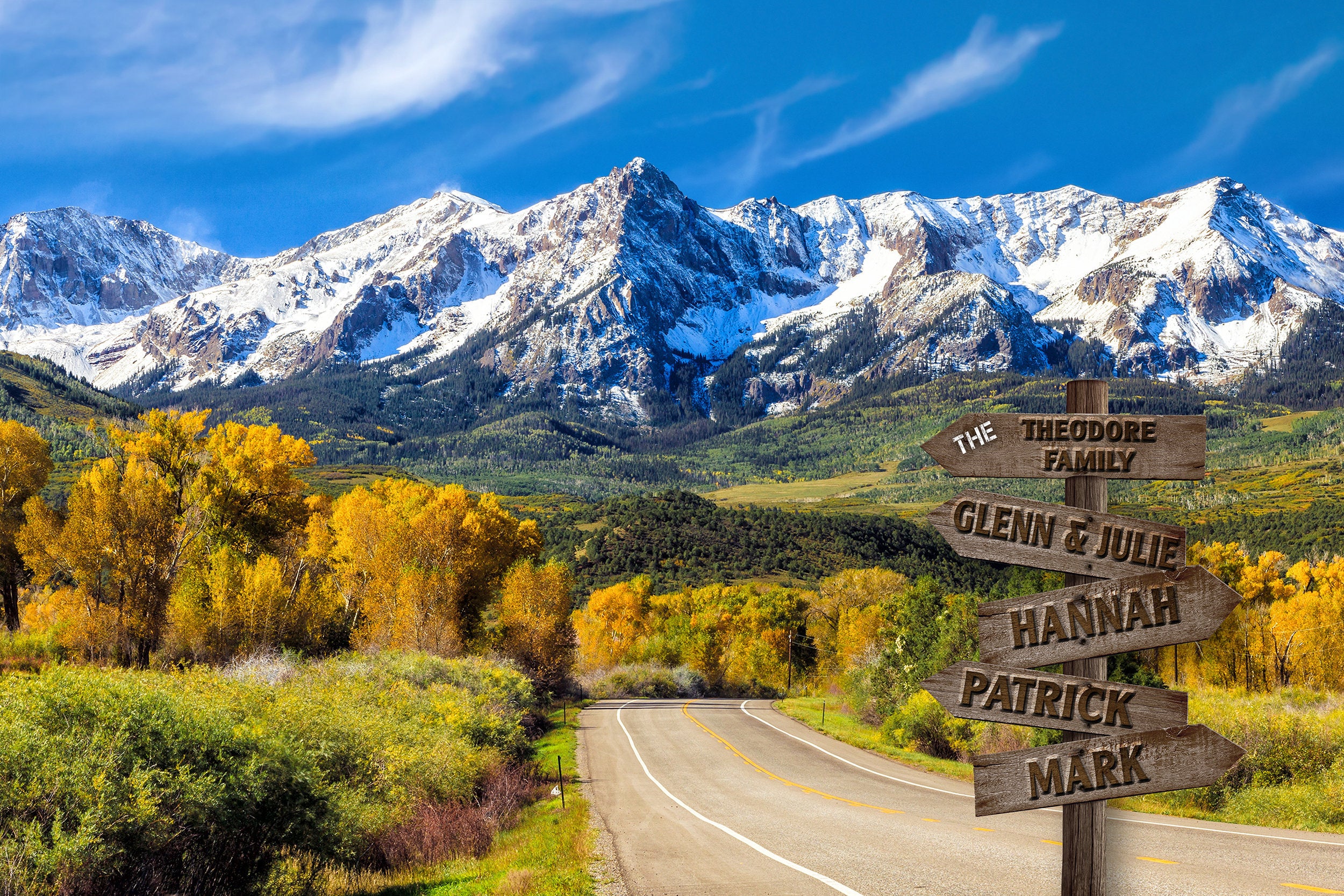 Personalized multi names printed on canvas and mounted. Rocky mountains in the background This is a perfect family gift for those closest to you. Our fabulous print is customized with your family names, After ordering, leave personalization and check your email within 24 hours for a proof. We will not print until you approve the proof. Yosemite park