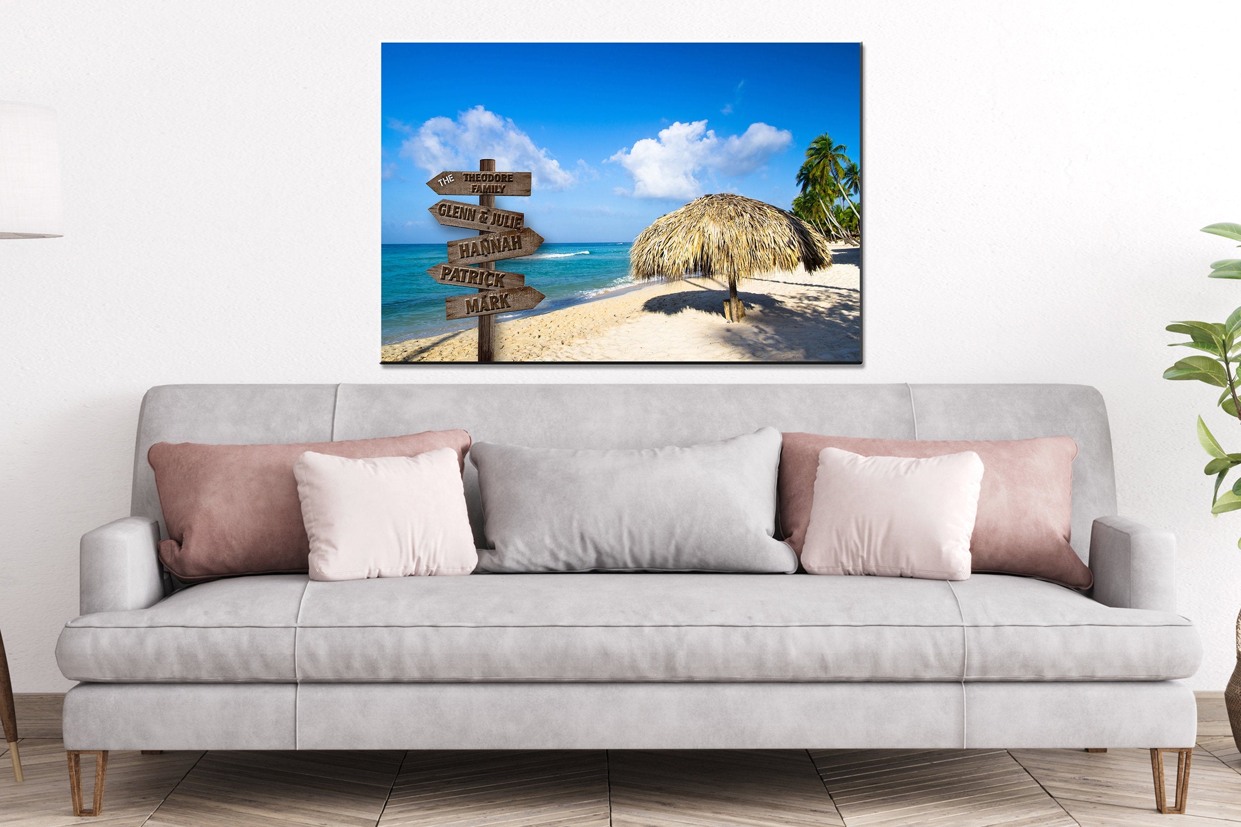 Personalized names canvas, sunny beach custom canvas, Family multi names gift Personalized multi names canvas Family custom gift canvas,