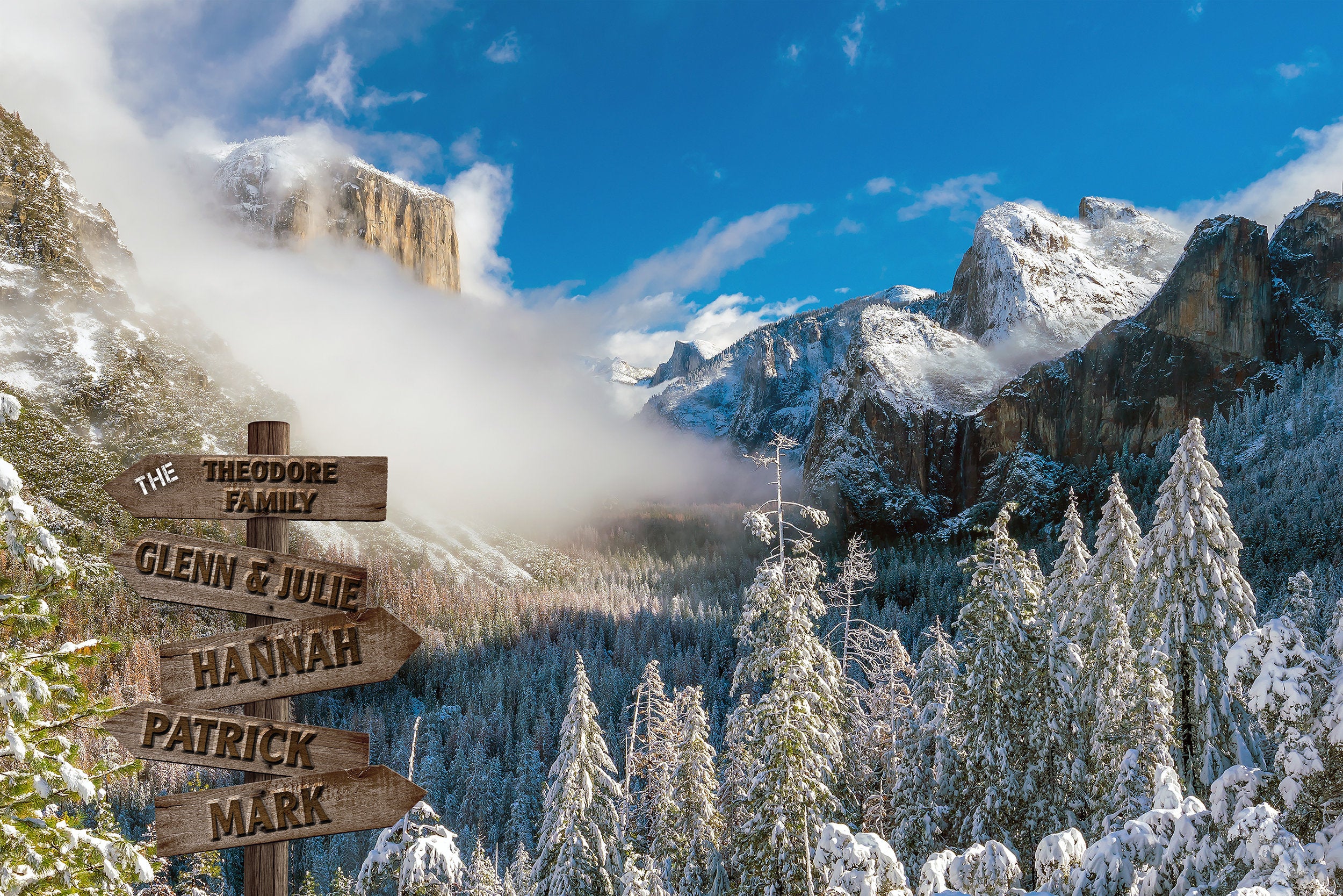 Personalized names canvas, Yosemite Park custom canvas, Color or Black and white, Sign post names Personalized multi names canvas, mountain
