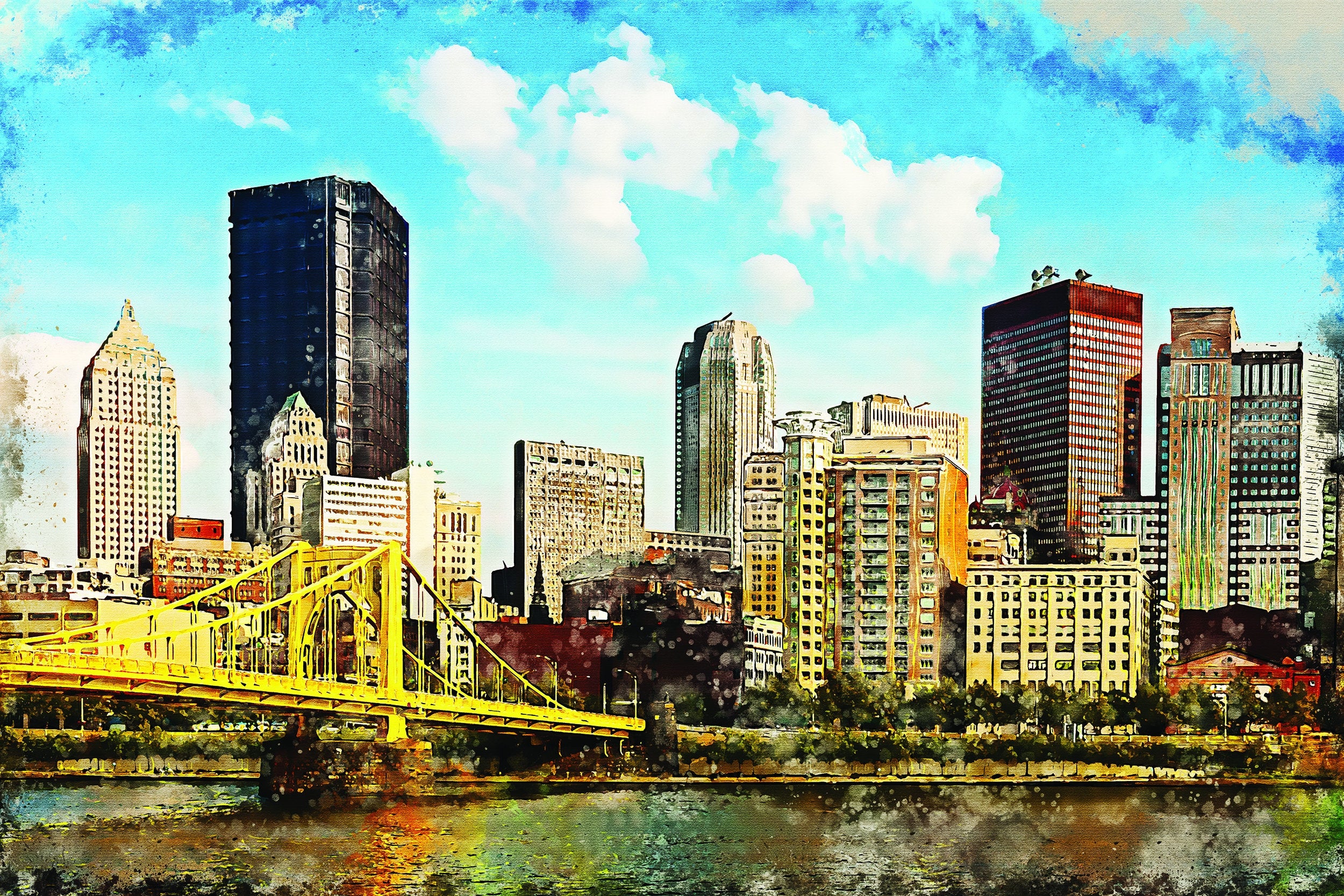 Pittsburgh skyline watercolor canvas, Pittsburgh Canvas, Pittsburgh Canvas Wall Art, Pittsburgh watercolorwall art canvas, Pennsylvania,