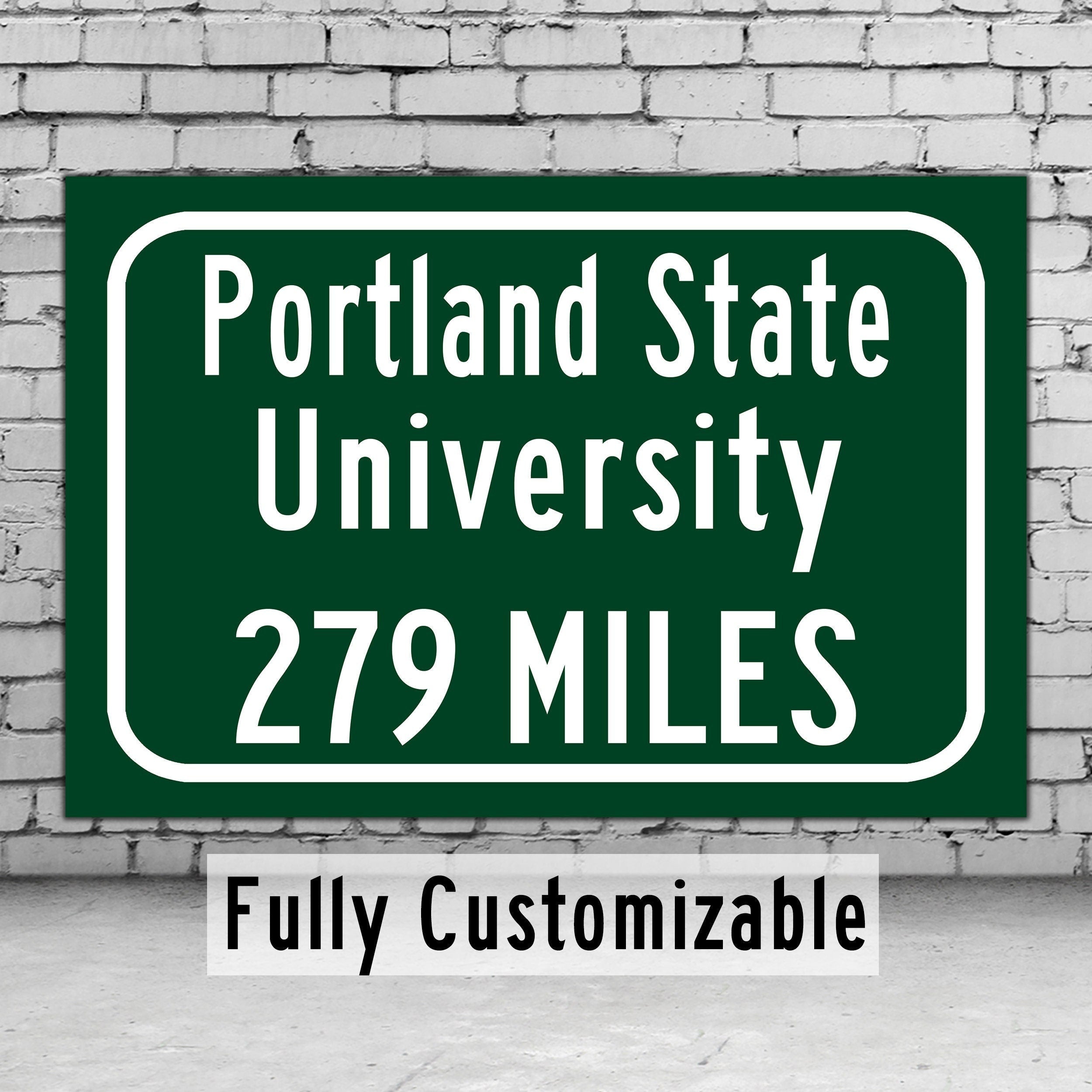 Personalized Highway Distance sign to Portland State University / Portland State University sign. Portland State University sign.